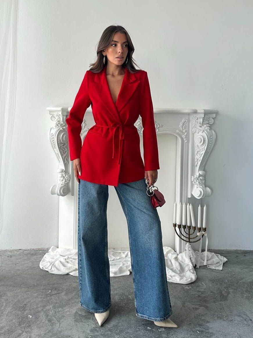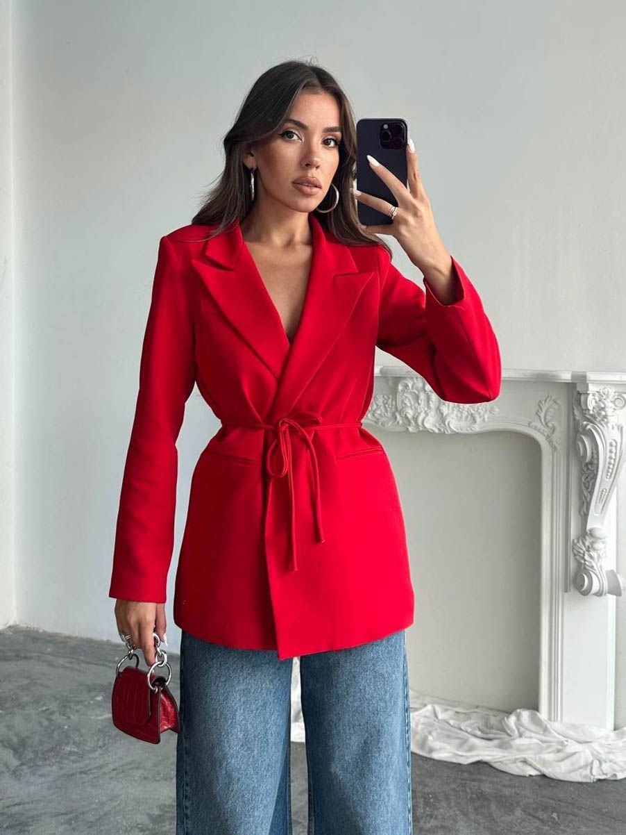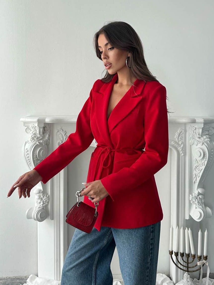 Жакет выполнен из качественного материала, который не только выглядит привлекательно, но и долговечен. Он прекрасно сочетается с различными цветами одежды и создает элегантный образ в любое время года. Комбинировать пиджак можно с юбкой, брюками, джинсами.