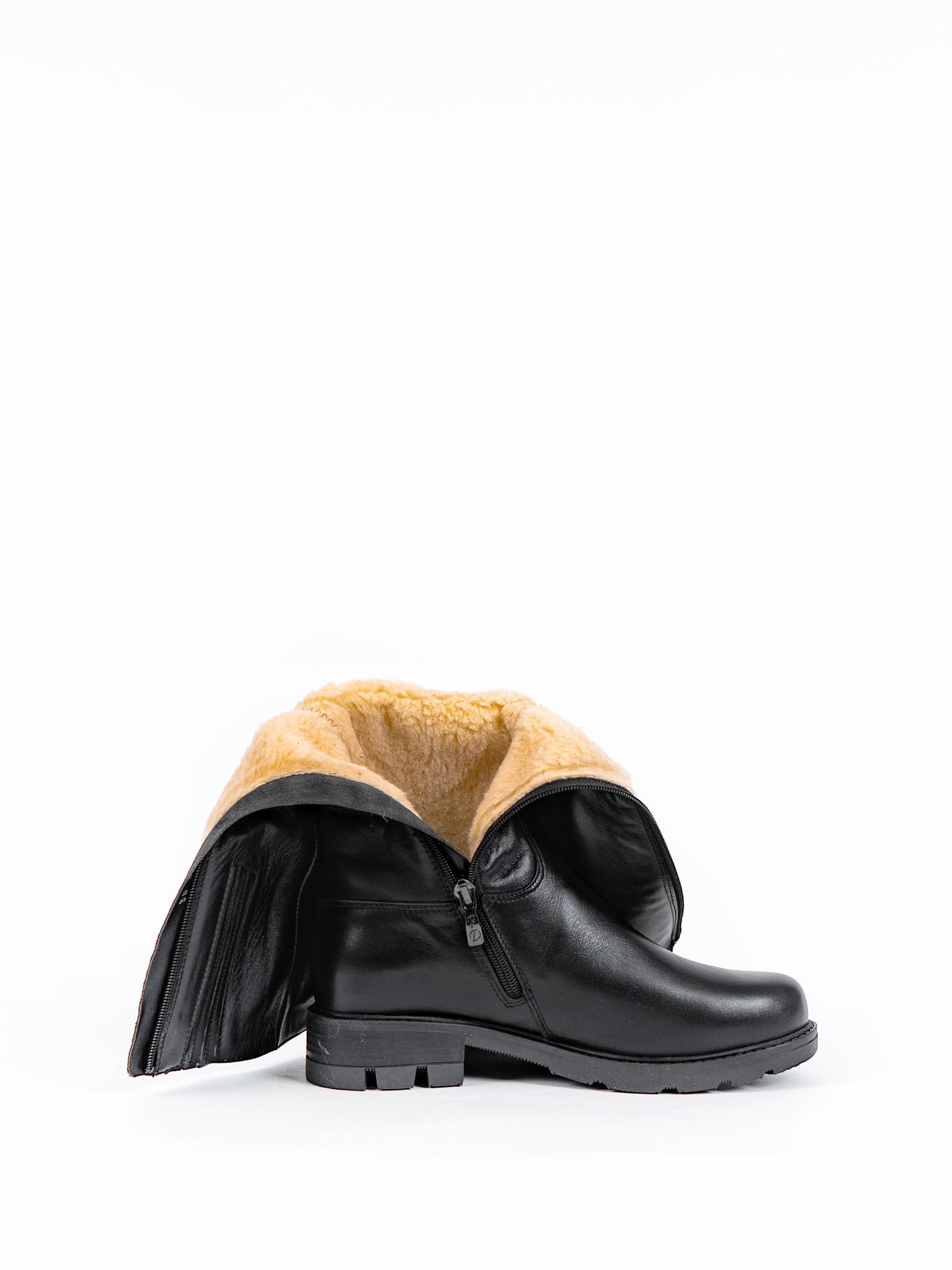 Подошва выполнена из технологичных полимерных материалов, что позволяет хорошо сохранять тепло. Сапоги на низком каблуке высотой 3,5 см не позволят стопе уставать в течении всего дня.
