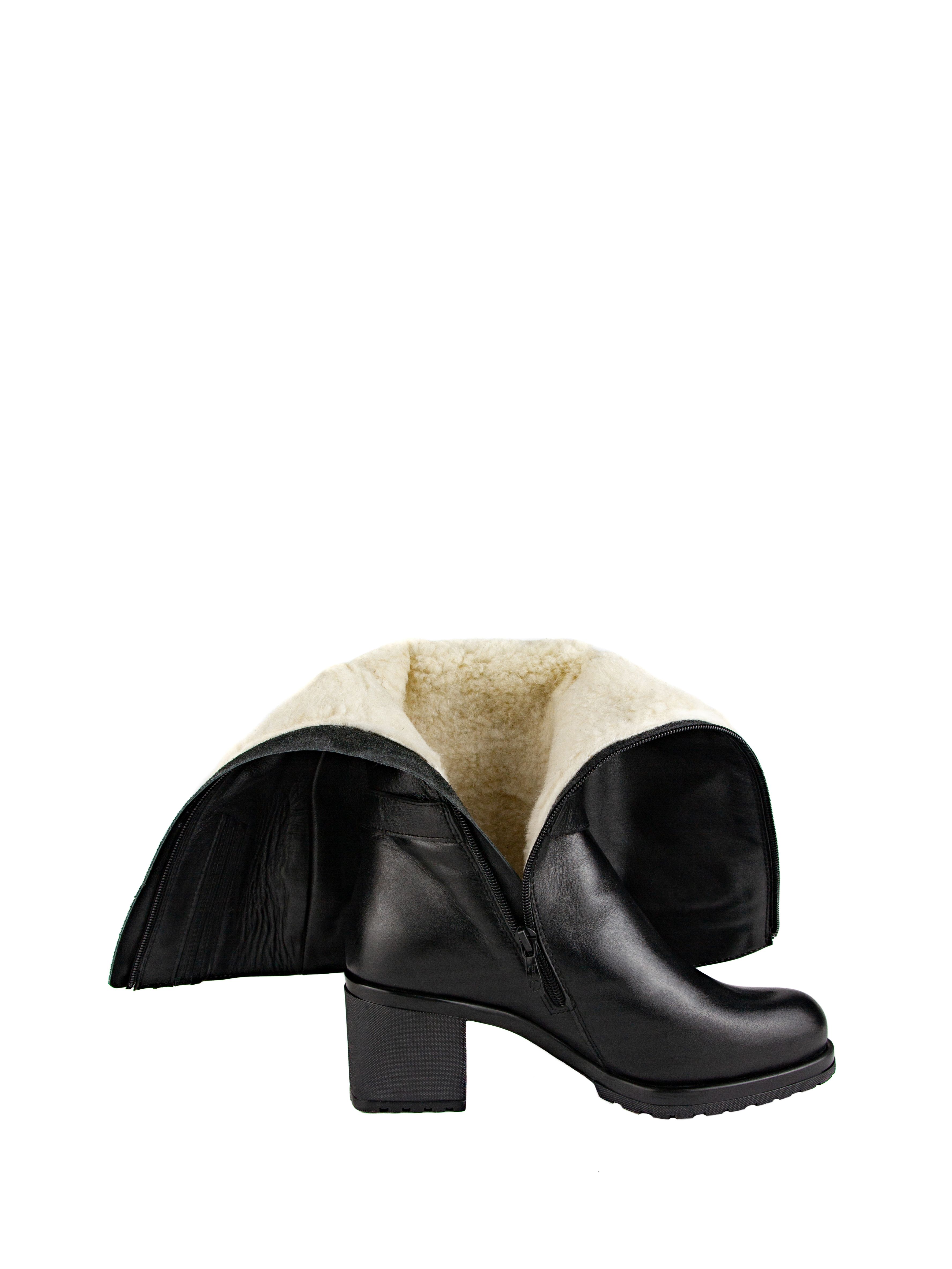 Подошва выполнена из технологичных полимерных материалов, что позволяет хорошо сохранять тепло. Сапоги на каблуке высотой 6,5 см не позволят стопе уставать в течении всего дня.