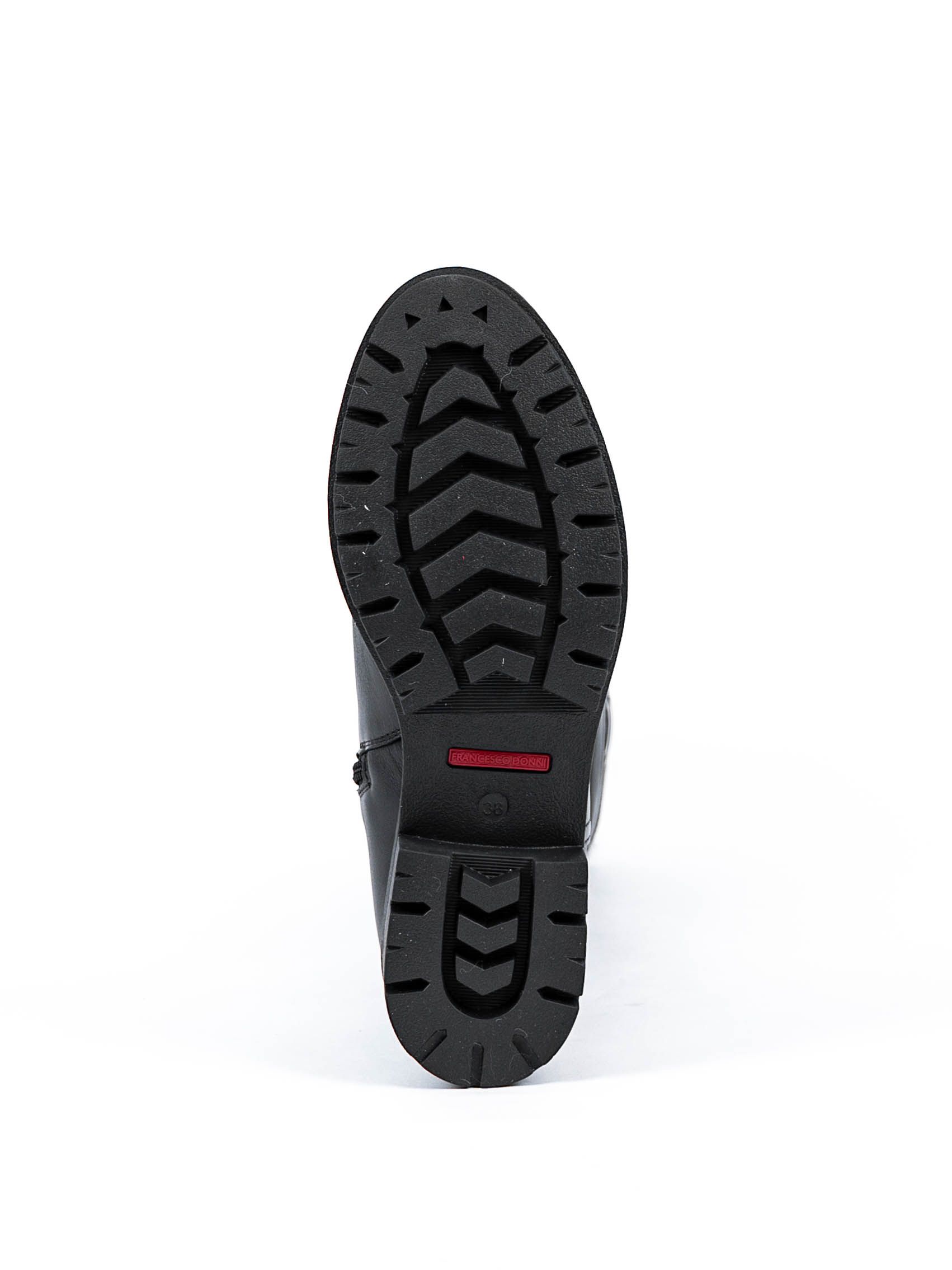 Подошва выполнена из технологичных полимерных материалов, что позволяет хорошо сохранять тепло. Сапоги на каблуке 4 см не позволят стопе уставать в течении всего дня.