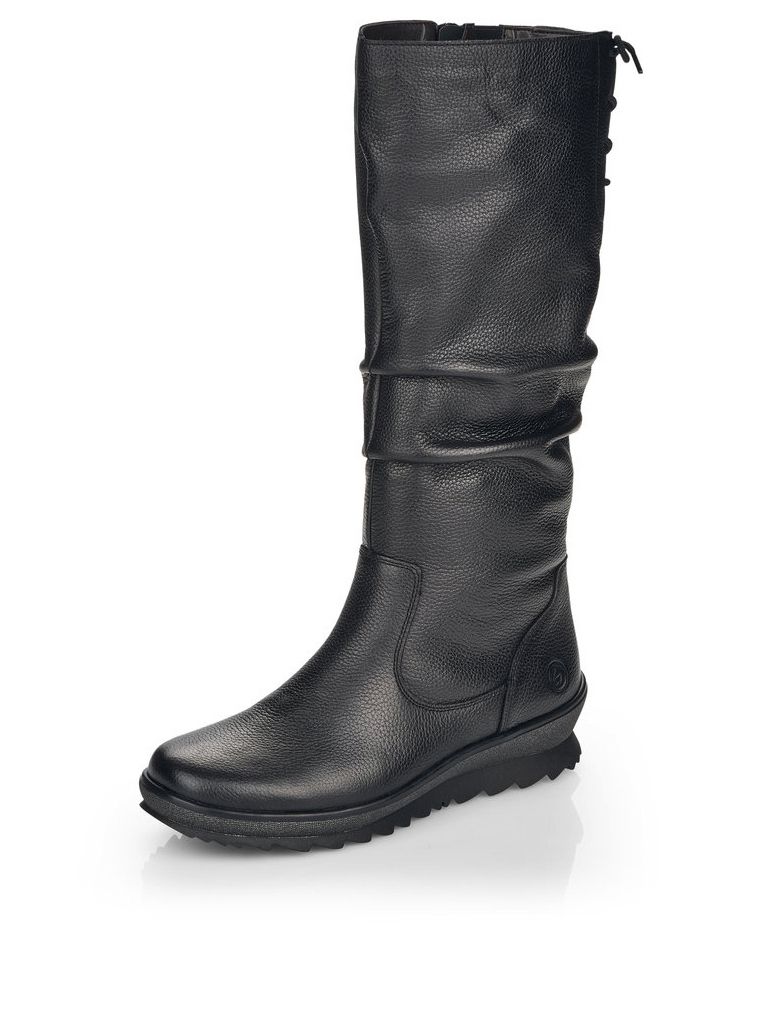 Рекомендуем рассмотреть черные женские сапоги от немецкого бренда Remonte, сочетающие в себе качество, комфорт, простой и современный дизайн.
