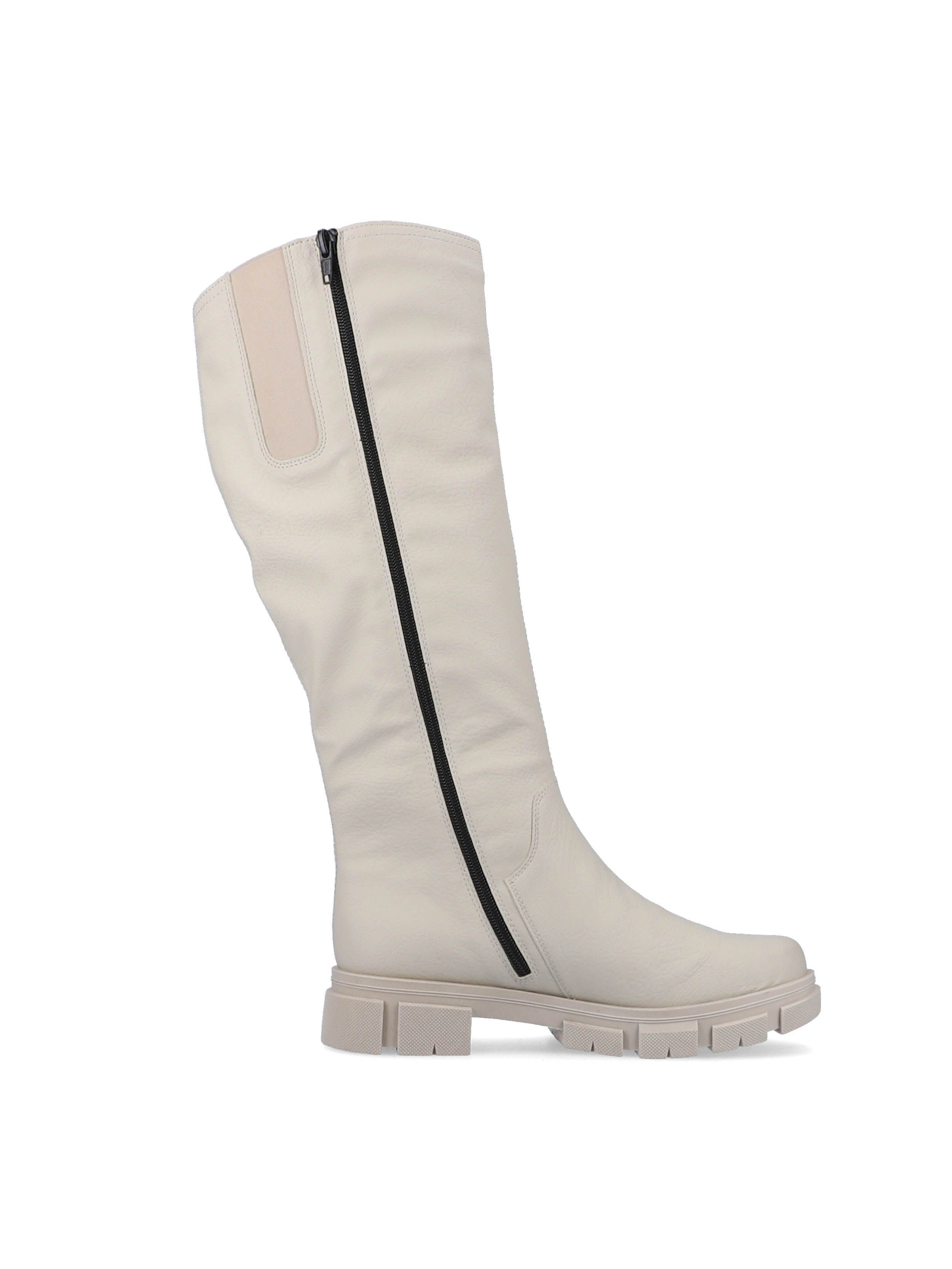 Рекомендуем рассмотреть светло-бежевые женские сапоги на молнии от немецкого бренда Rieker, сочетающие в себе качество, комфорт, простой и современный дизайн.