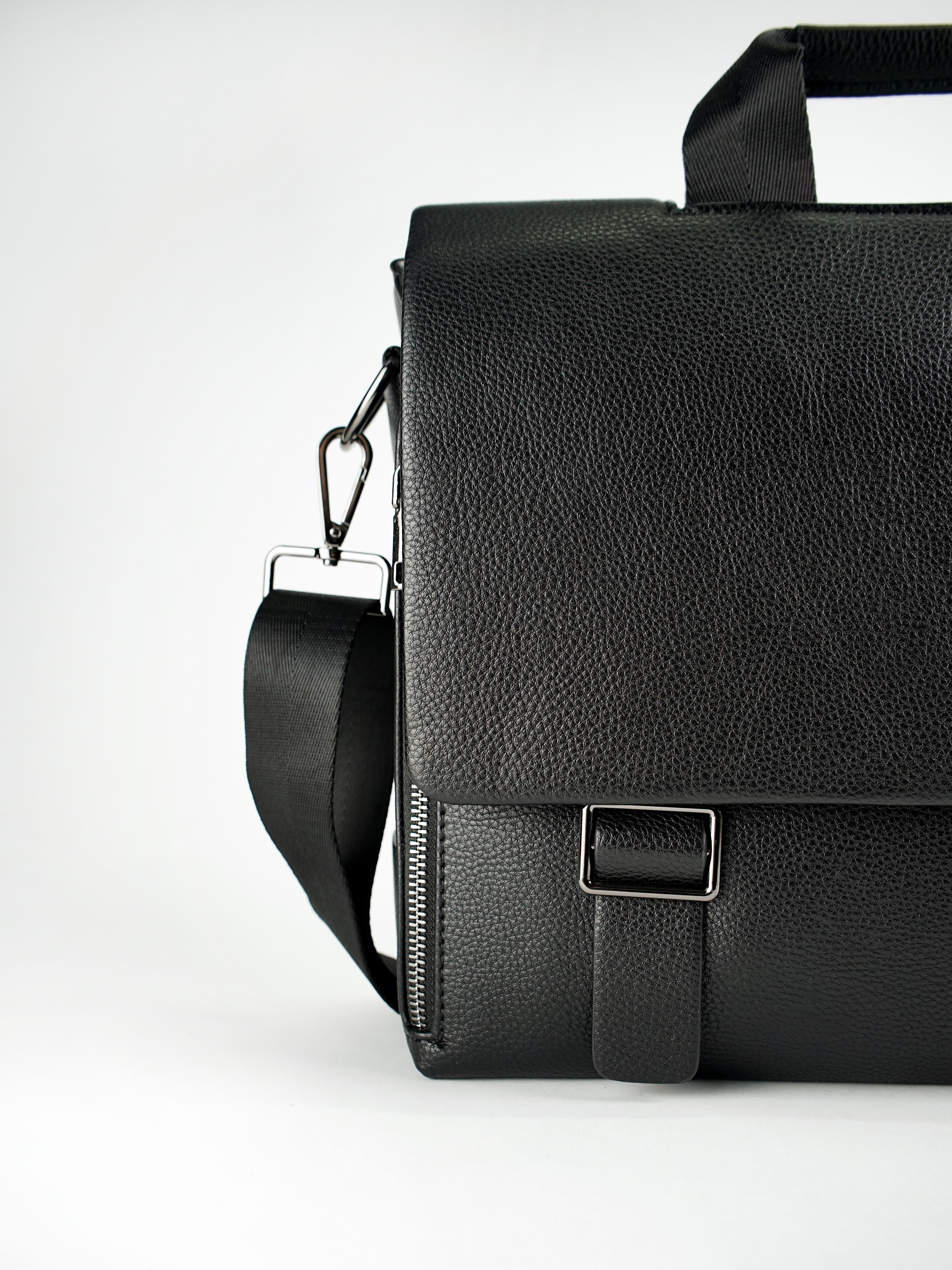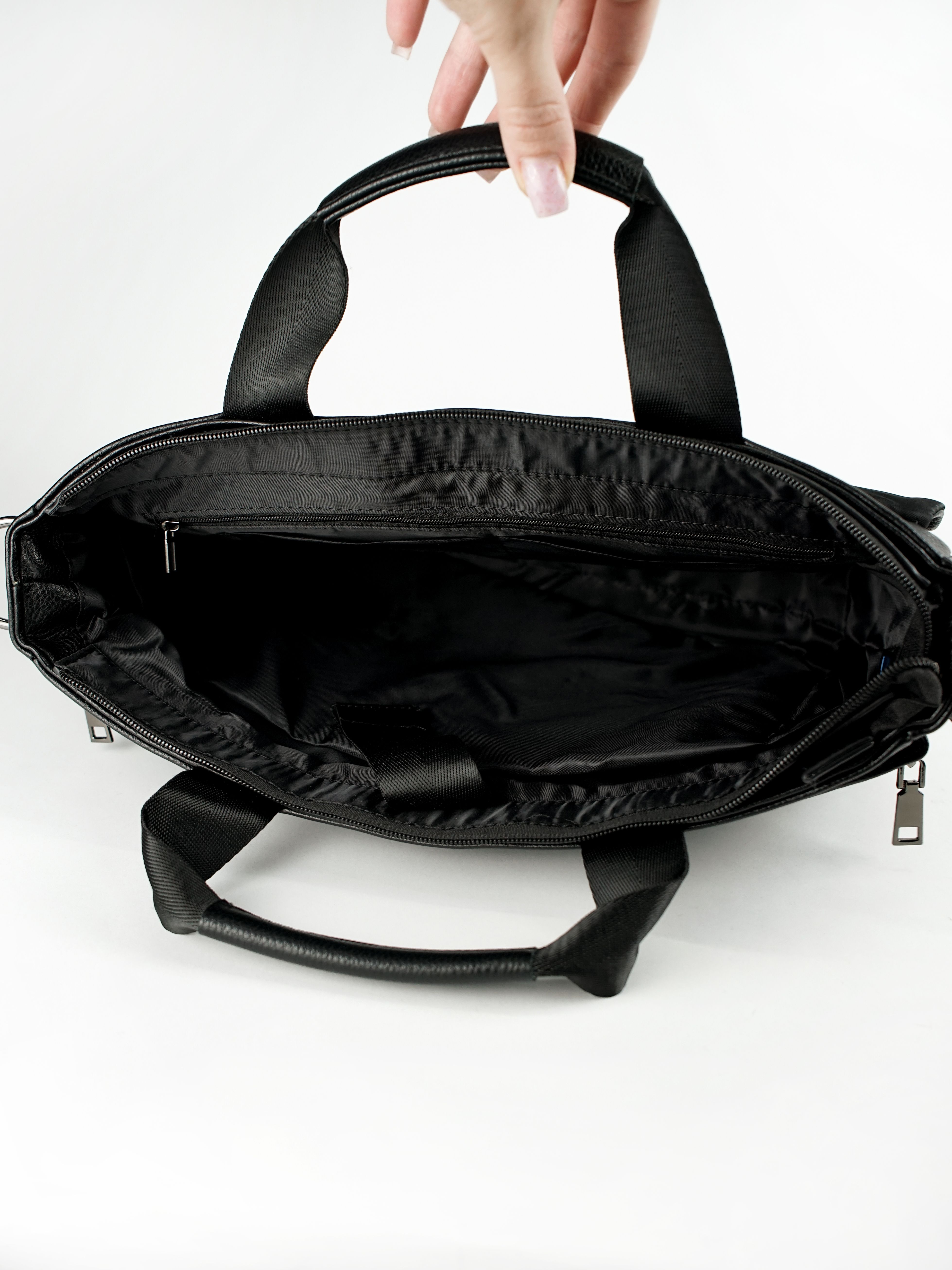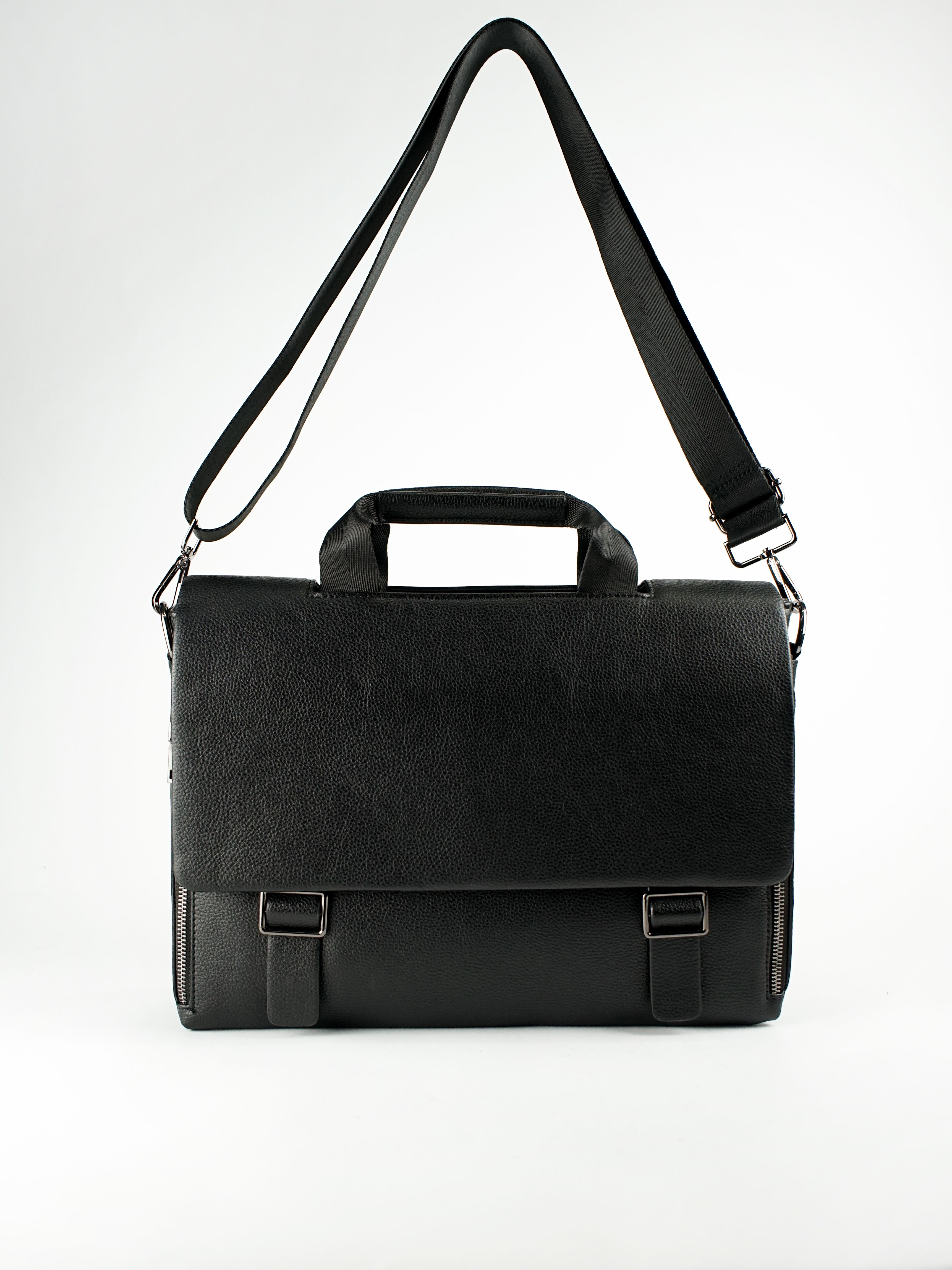 Сумка мужская бренда Portofiano. Верх изготовлен из 100% экокожи черного цвета. Материал подкладки текстиль (полиэстер 100%). Станет отличным завершением Вашего гардероба.