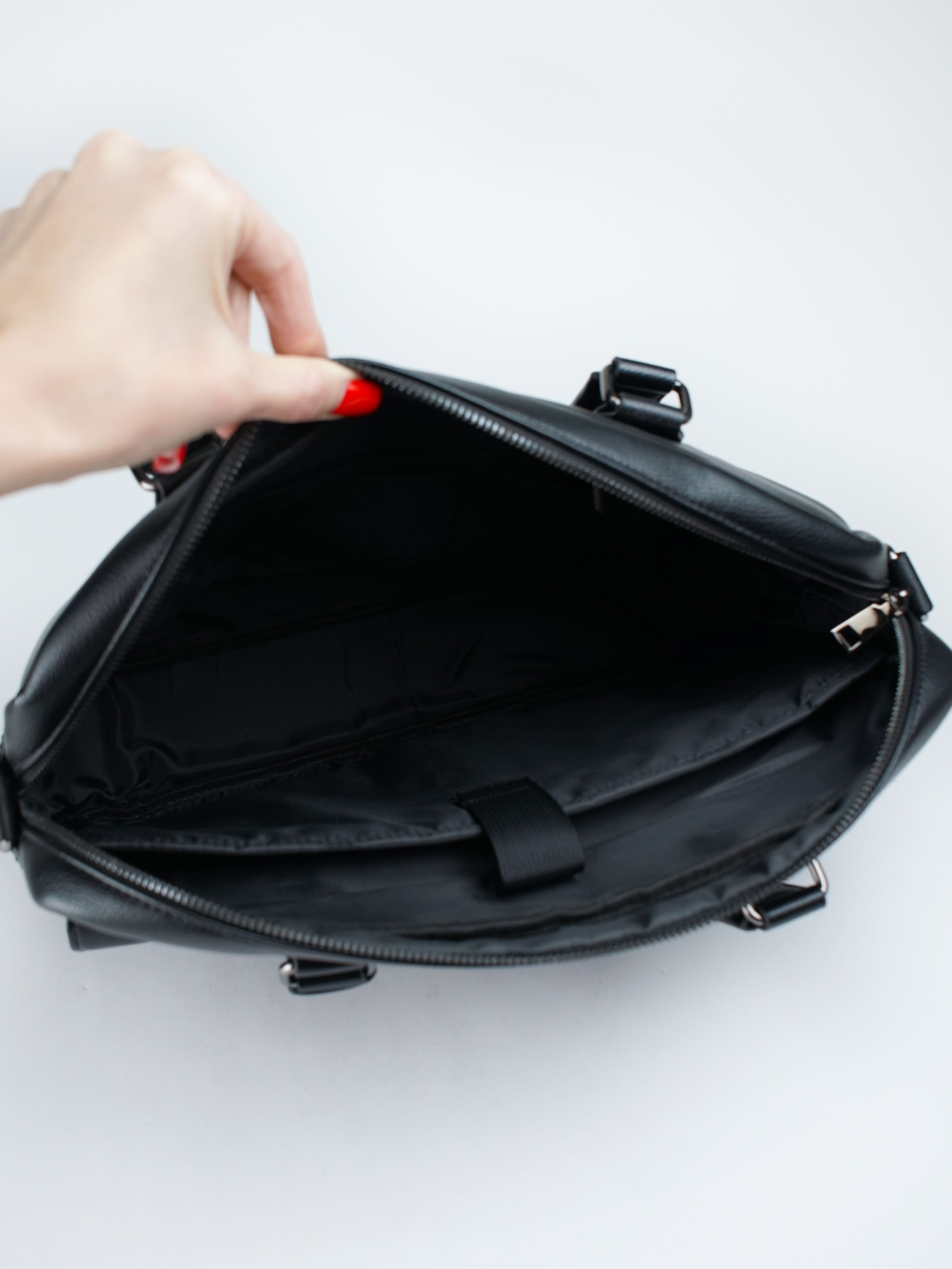 Сумка мужская бренда Portofiano. Верх изготовлен из экокожи черного цвета. Материал подкладки текстиль. Станет отличным завершением Вашего гардероба.