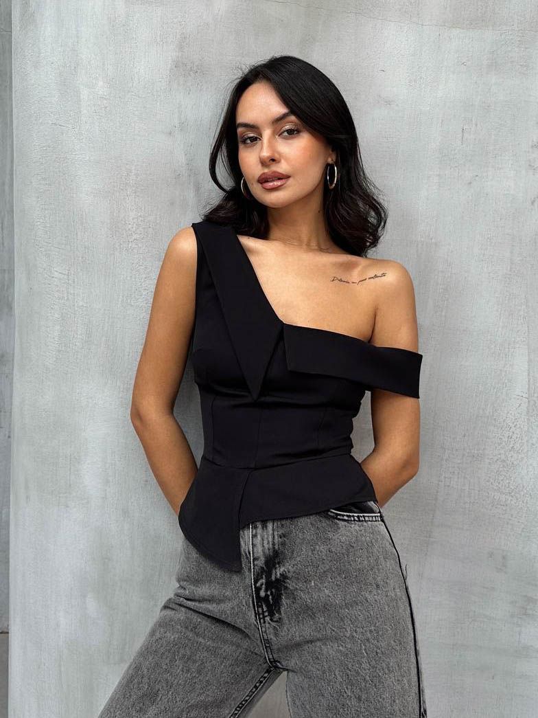 Летняя кофта-корсет без рукавов на одно плечо черного цвета, для стильных дам, представляет собой утягивающее изделее на молнии сзади. Топ женский отлично подойдет для походав ресторан или для повседневного лука. Универсальный элемент гардероба подойдет для вечеринок и других мероприятий в стиле Party style. В нем Вы точно не останетесь незамеченной! Невероятно стильный корсет с декольте, с имитацией спущенного плеча, с застежкой молния по спинке. Легко сочетать с другими предметами гардероба, юбкой, брюками, джинсами.