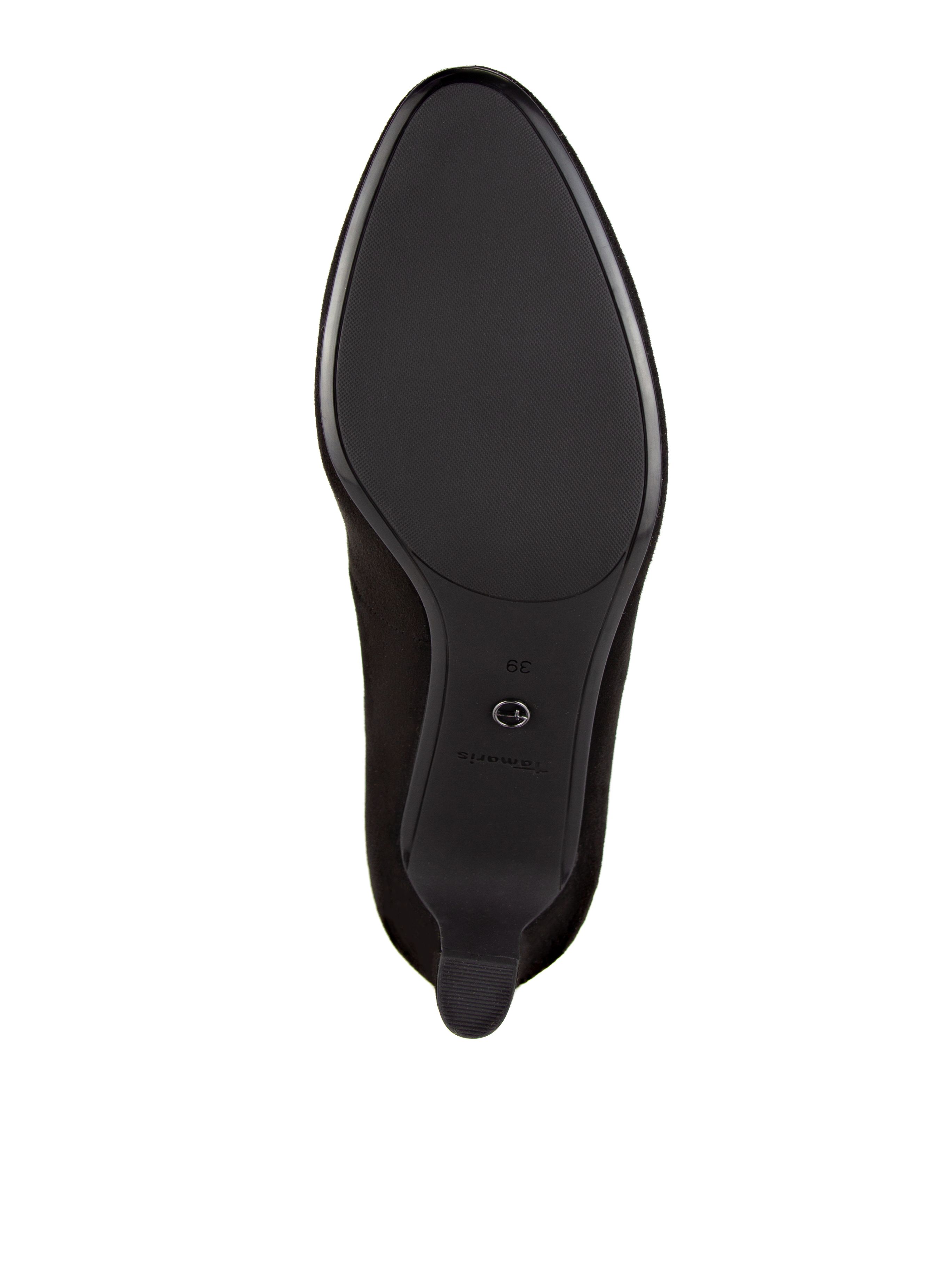 Туфли модели лодочки женские немецкого бренда Tamaris. Верх изготовлен из искусственной замши черного цвета. Материал подкладки текстиль. Идеально подойдут на осень-весну и станут отличным завершением к Вашему гардеробу.