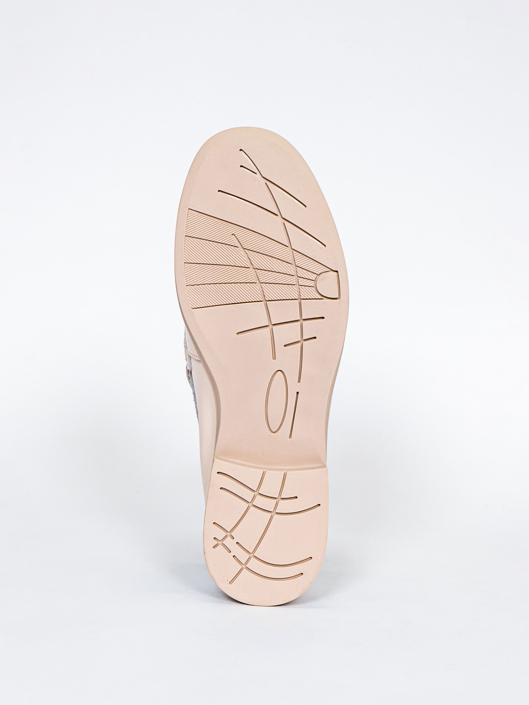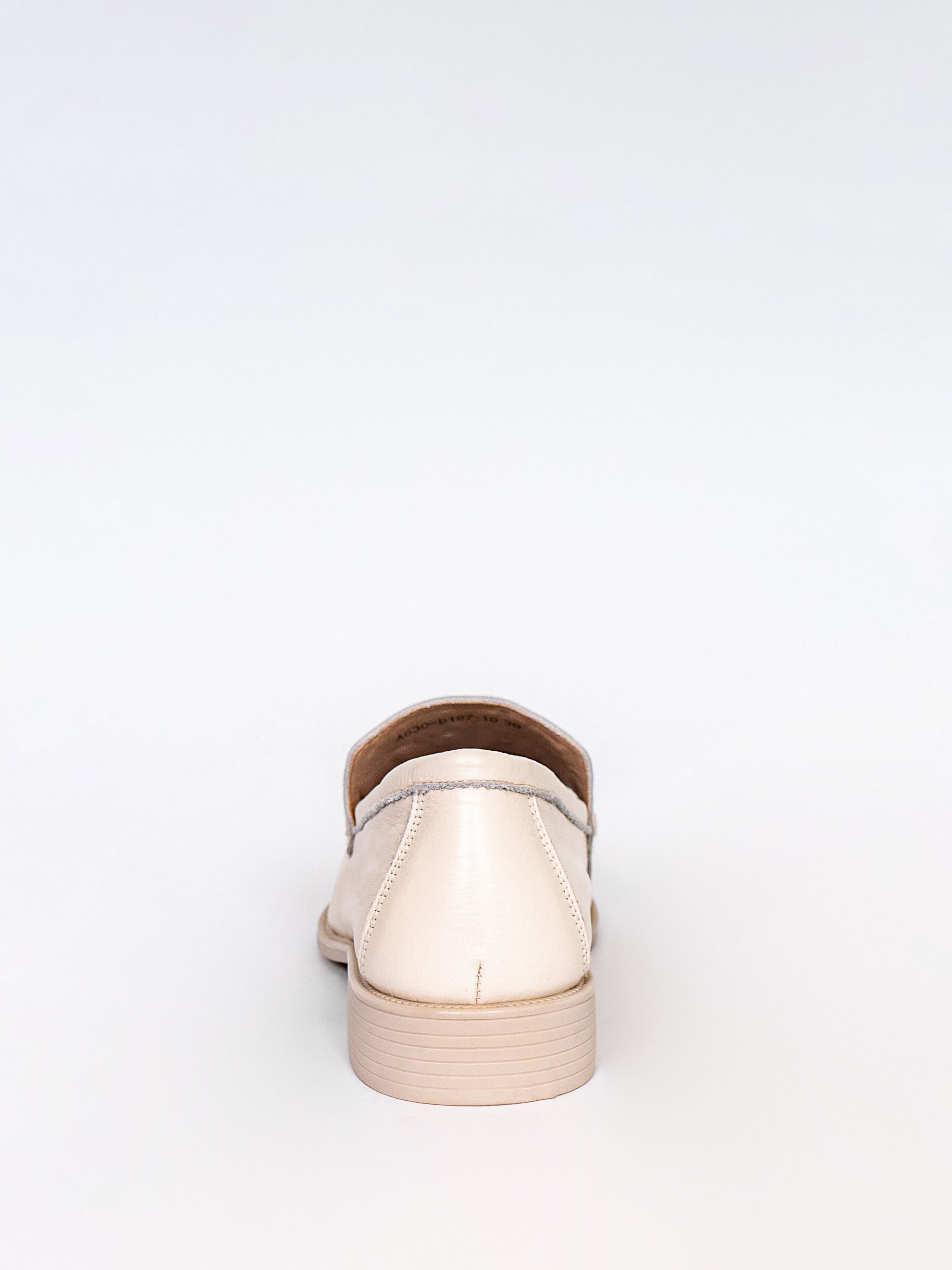 Представляем вашему вниманию женские лоферы из натуральной кожи бежевого цвета с подкладкой из натуральной кожи и текстильного материала. Модель имеет удобный дизайн с мягкой подошвой и каблуком, что обеспечивает комфорт при ходьбе. Лоферы имеют классический стиль, который подходит для повседневной носки и деловых мероприятий. Эти лоферы идеально подходят для весны и осени, когда погода не слишком холодная или жаркая.