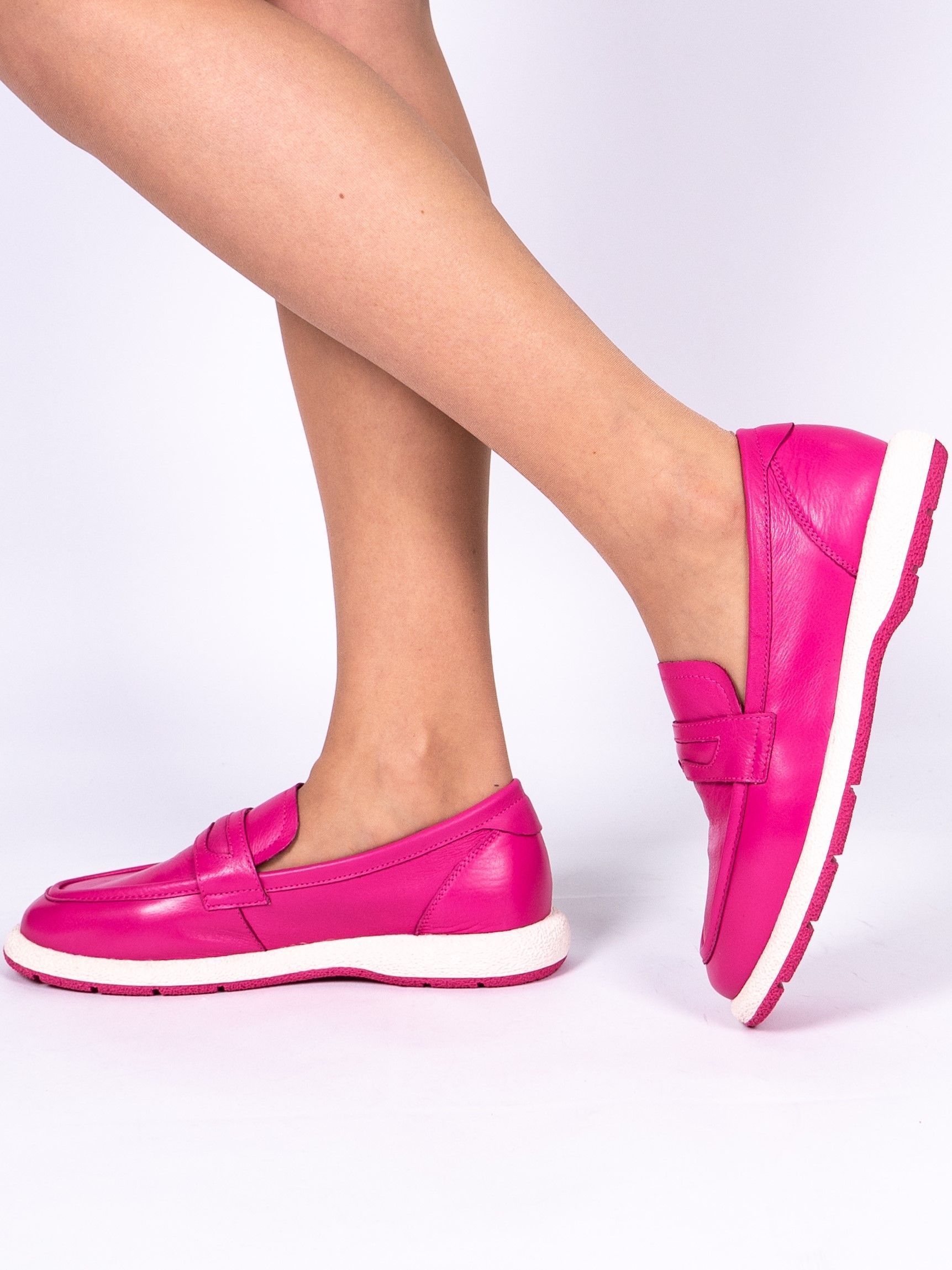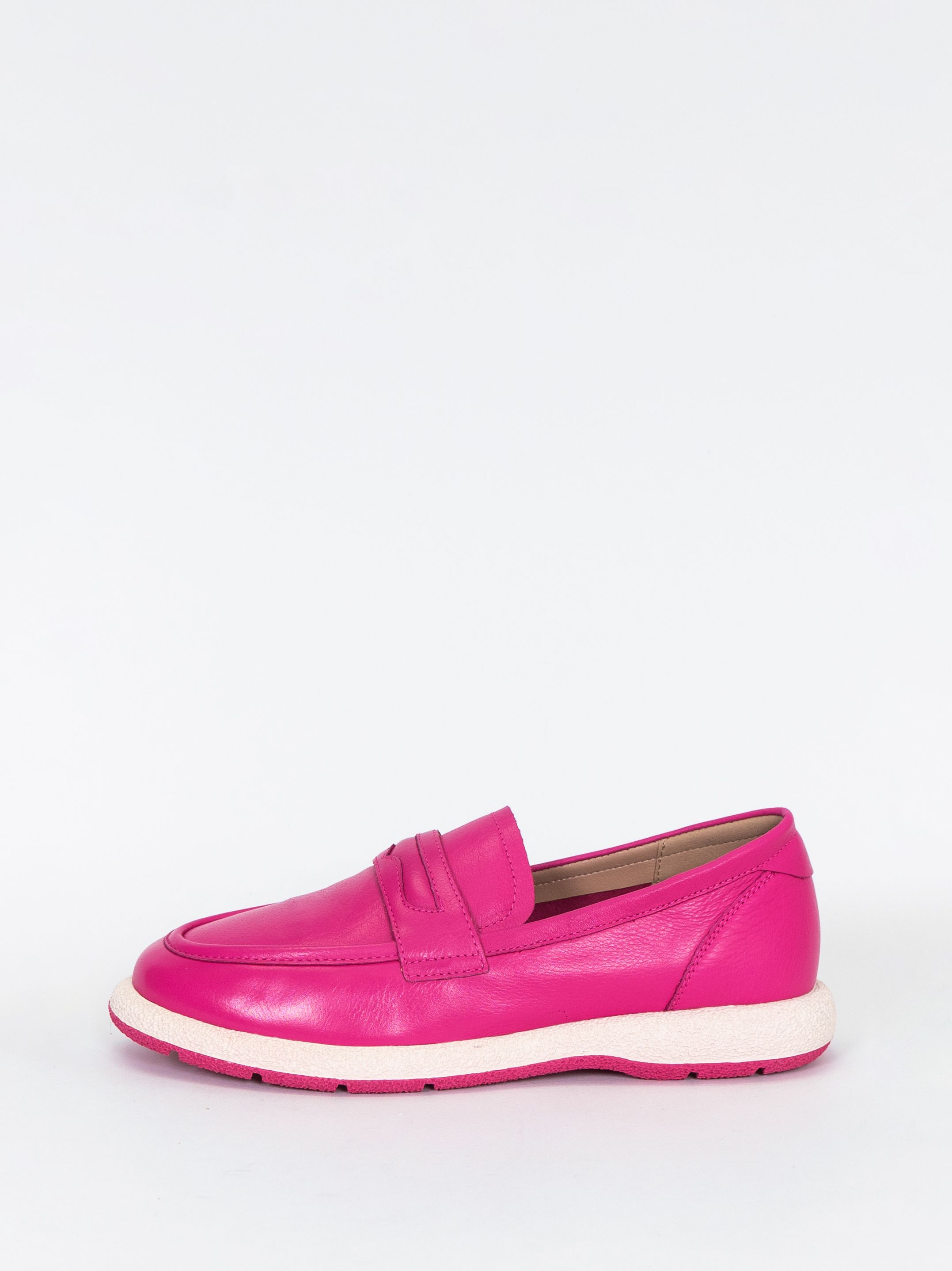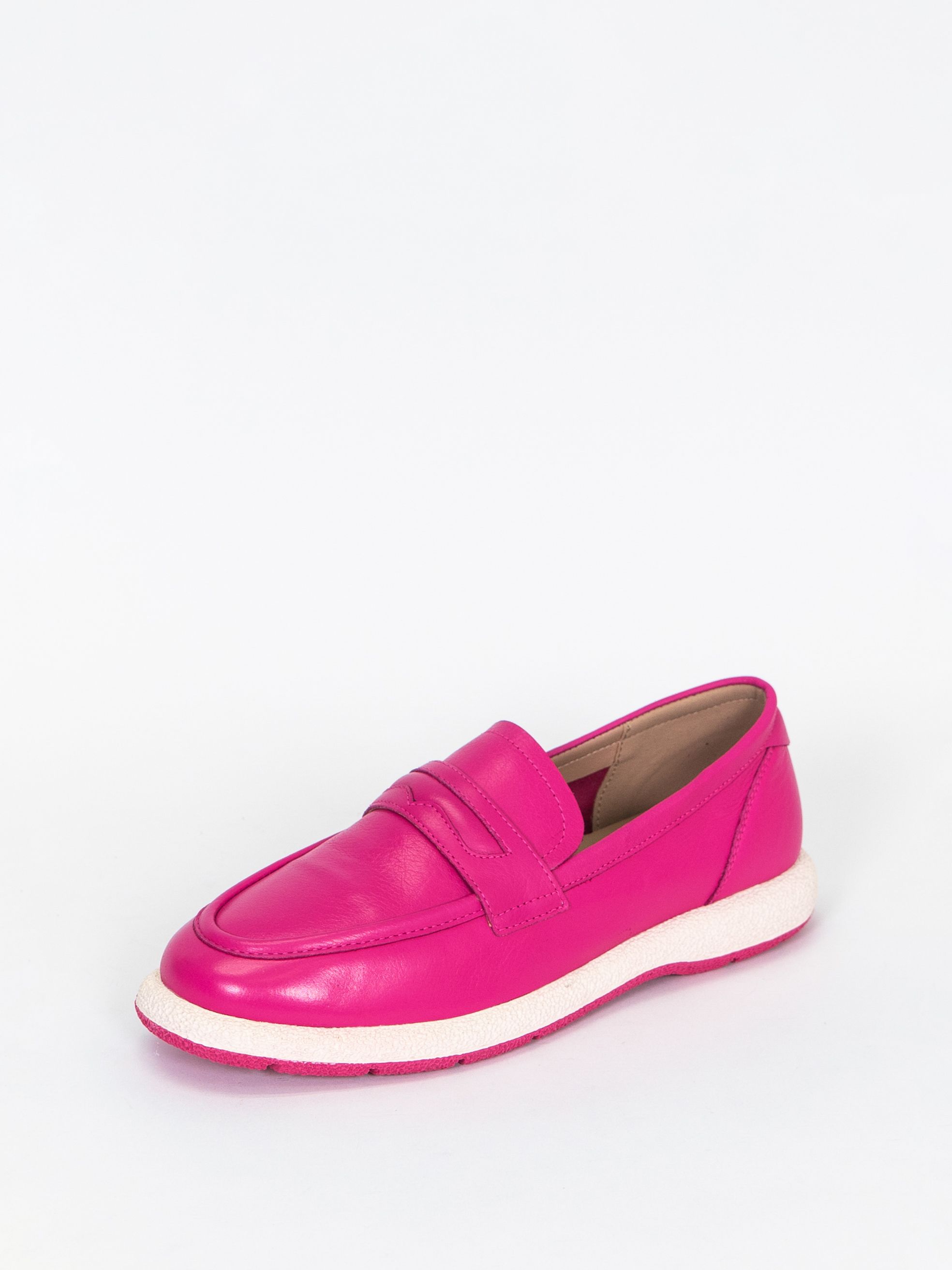 Женские лоферы из натуральной кожи цвета фуксии с подкладкой из натуральной и искусственной кожи. Модель имеет удобный дизайн с мягкой подошвой и каблуком, что обеспечивает комфорт при ходьбе. Лоферы имеют многообразный стиль, который подходит для повседневных прогулок. Эти лоферы идеально подходят для весны и осени, когда погода не слишком холодная или жаркая.