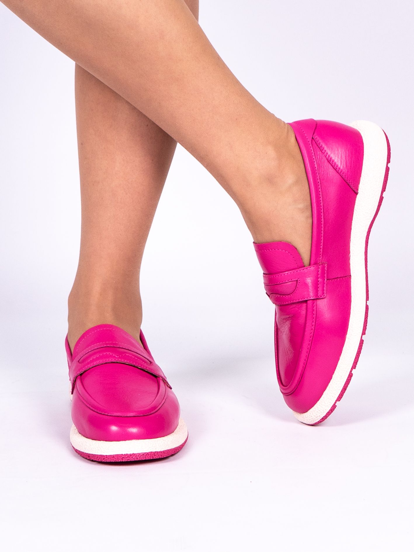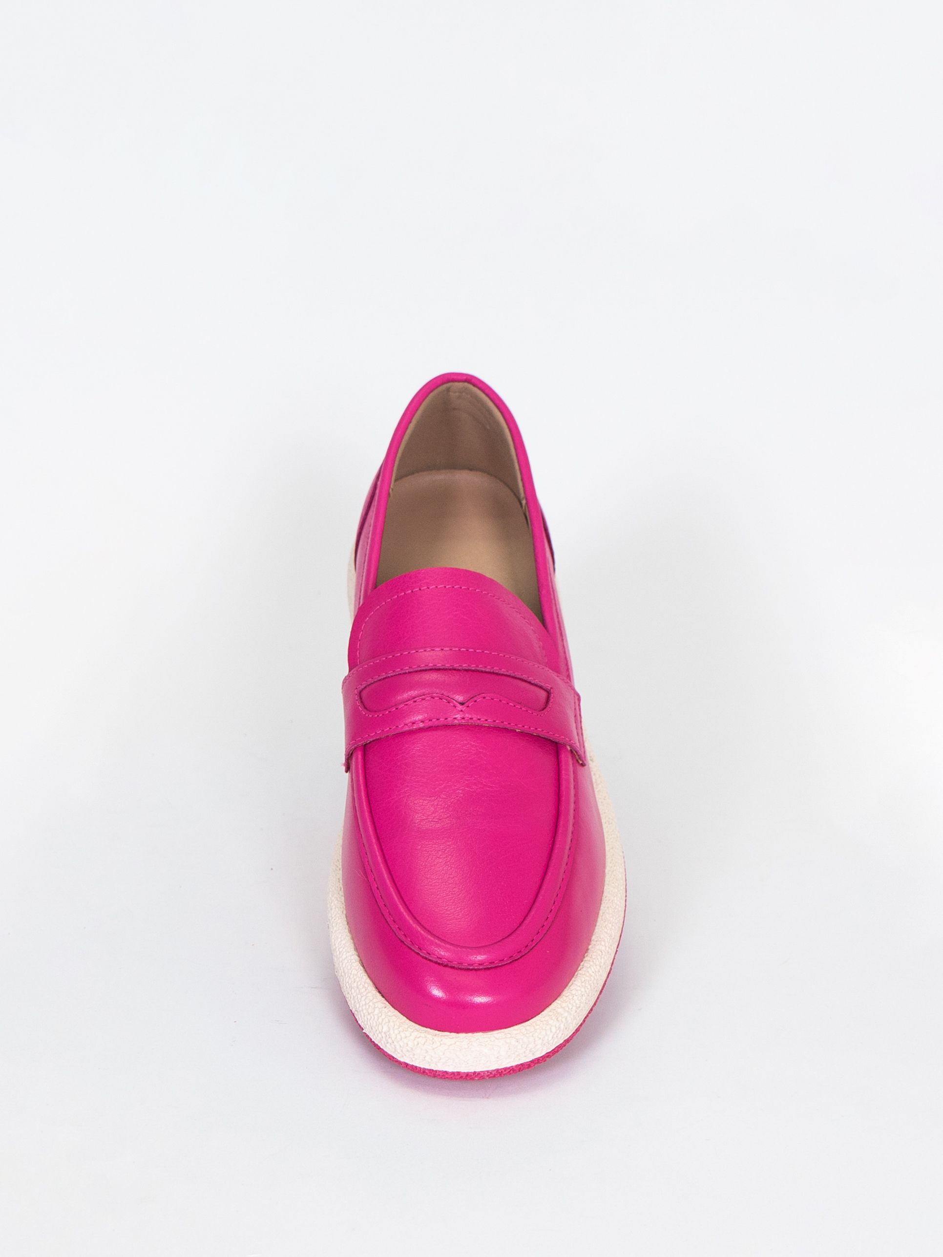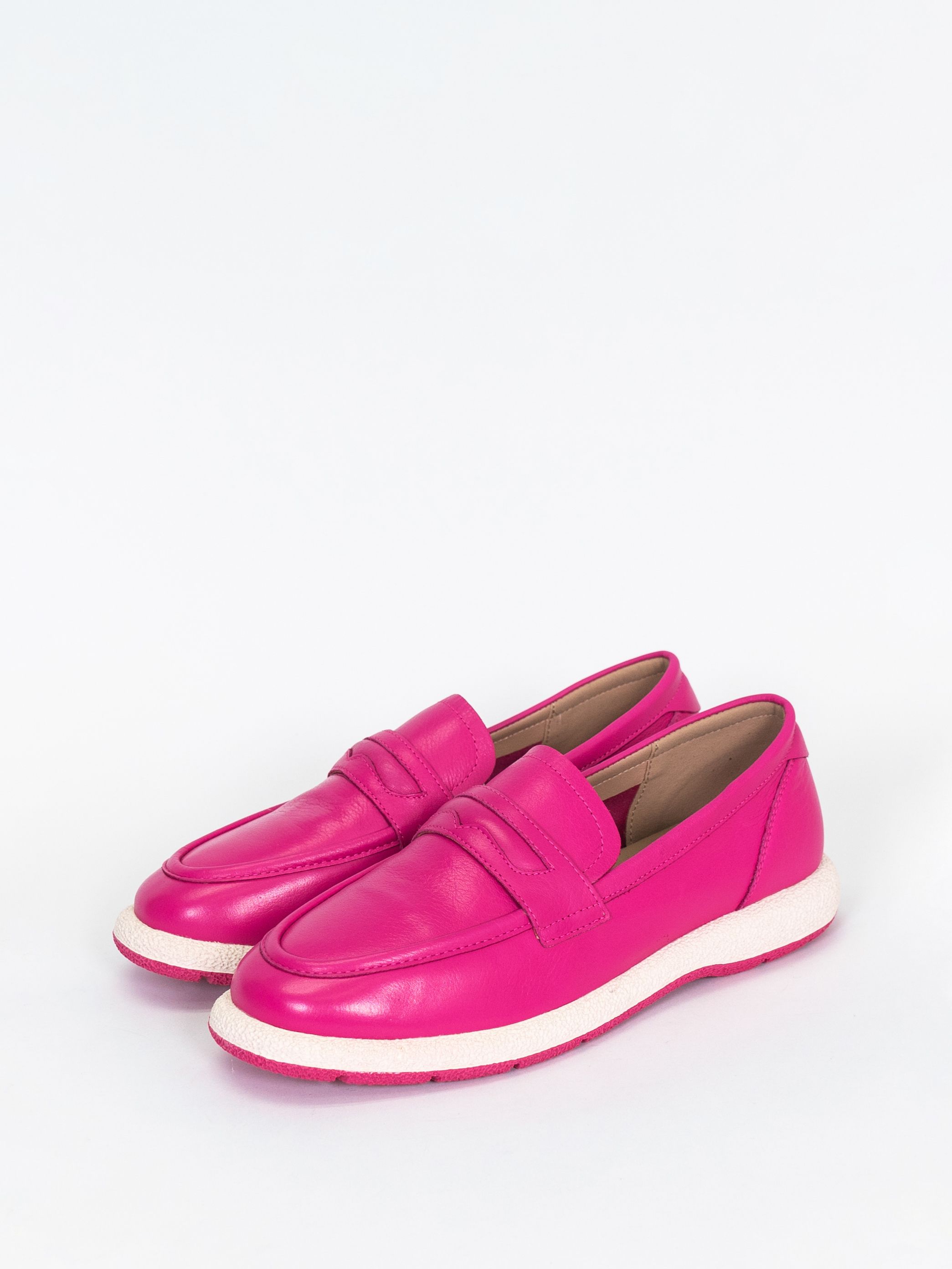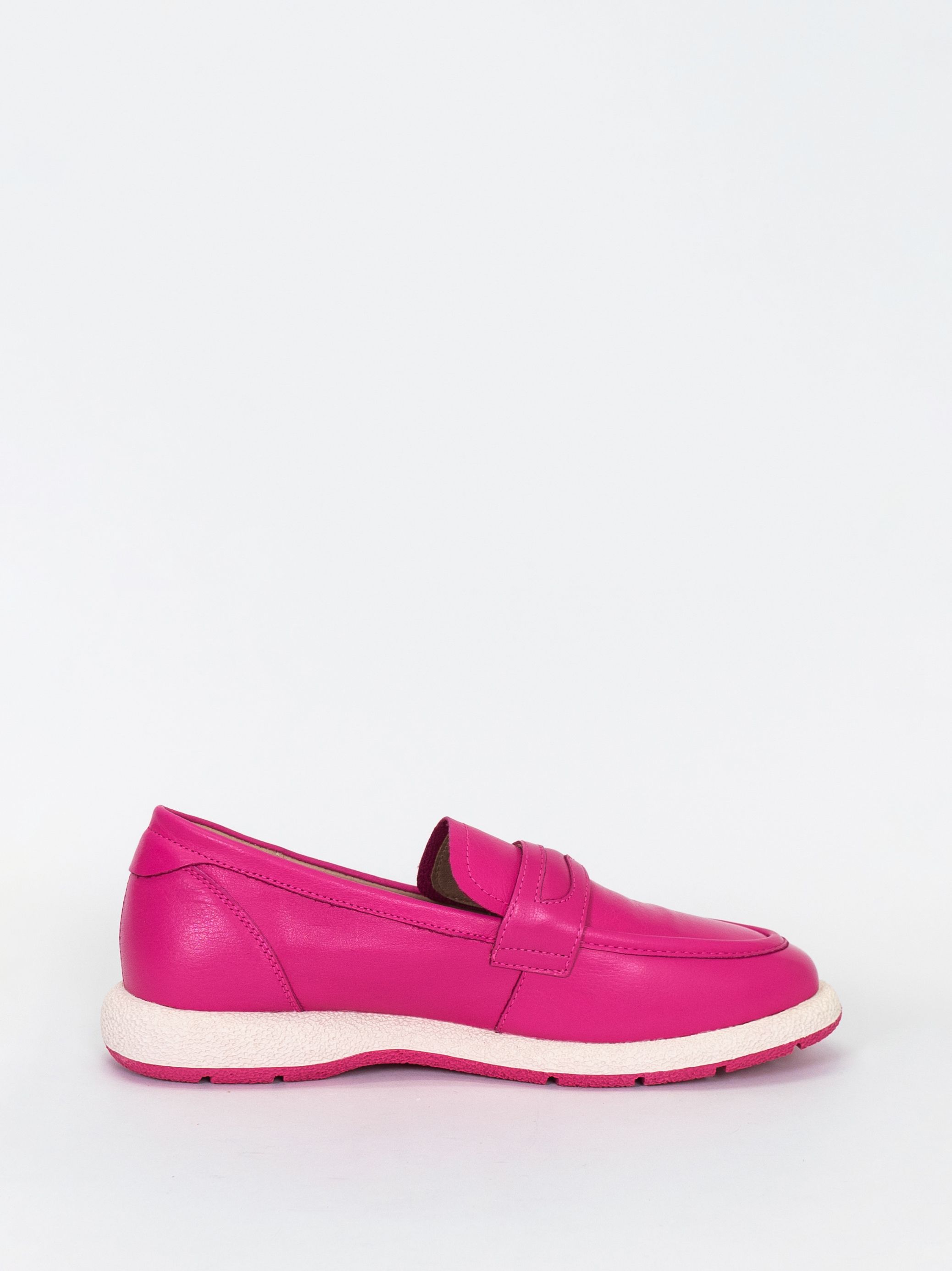 Женские лоферы из натуральной кожи цвета фуксии с подкладкой из натуральной и искусственной кожи. Модель имеет удобный дизайн с мягкой подошвой и каблуком, что обеспечивает комфорт при ходьбе. Лоферы имеют многообразный стиль, который подходит для повседневных прогулок. Эти лоферы идеально подходят для весны и осени, когда погода не слишком холодная или жаркая.
