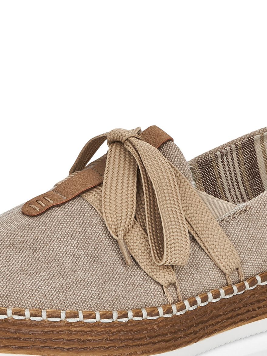 Эспадрильи женские темно бежевого цвета без каблука, с перфорацией разработаны с учетом анатомических особенностей стопы и гарантируют комфорт даже при длительной носке, а мягкая подкладка позволяет ноге находиться в комфорте на протяжении всего времени.