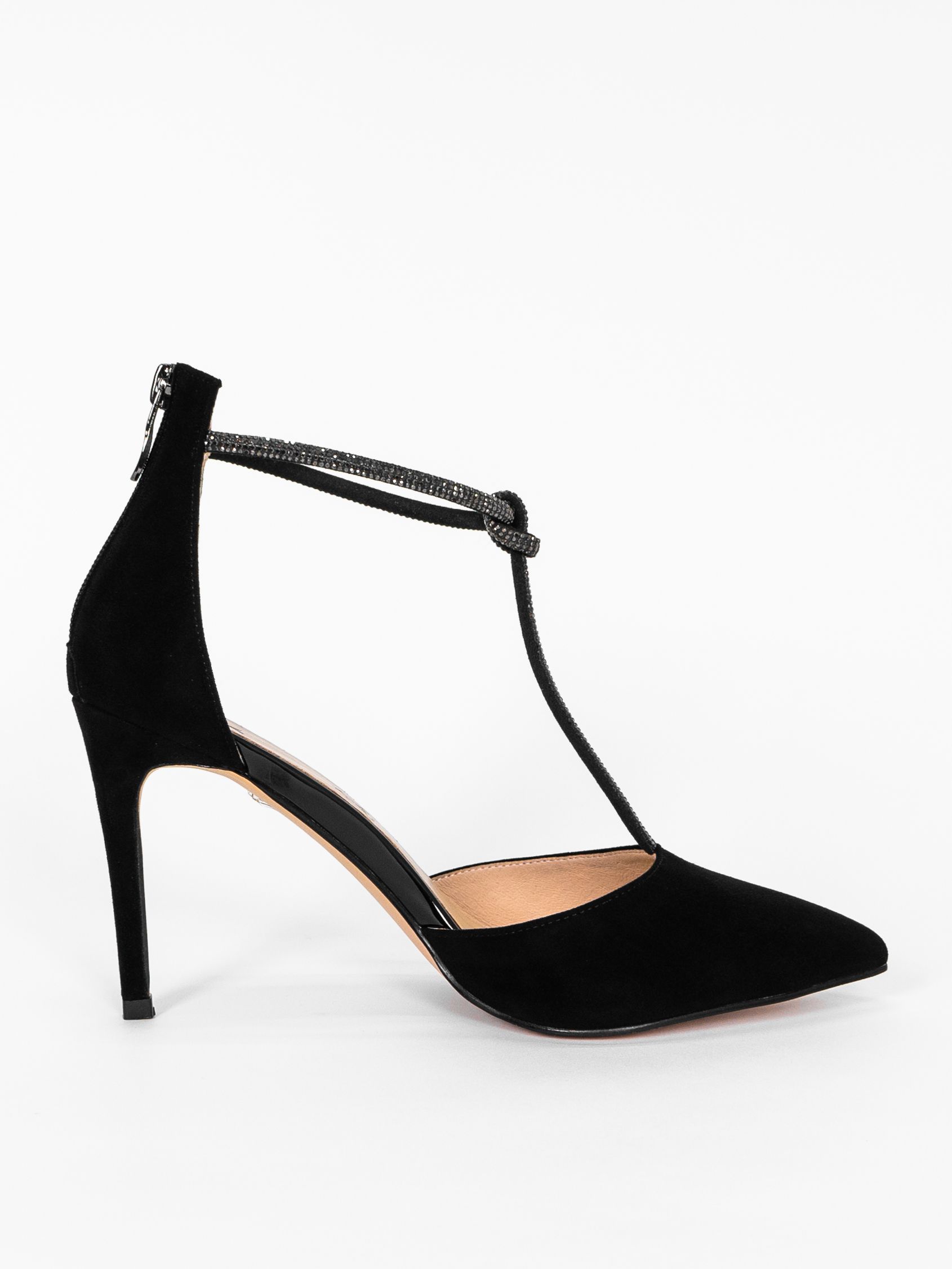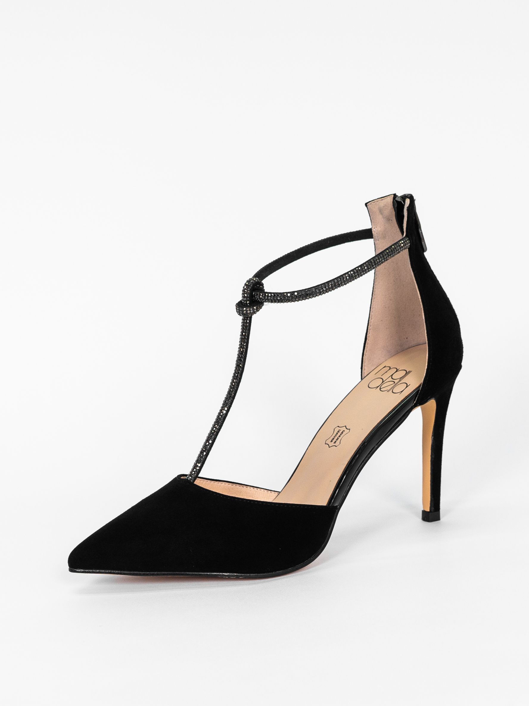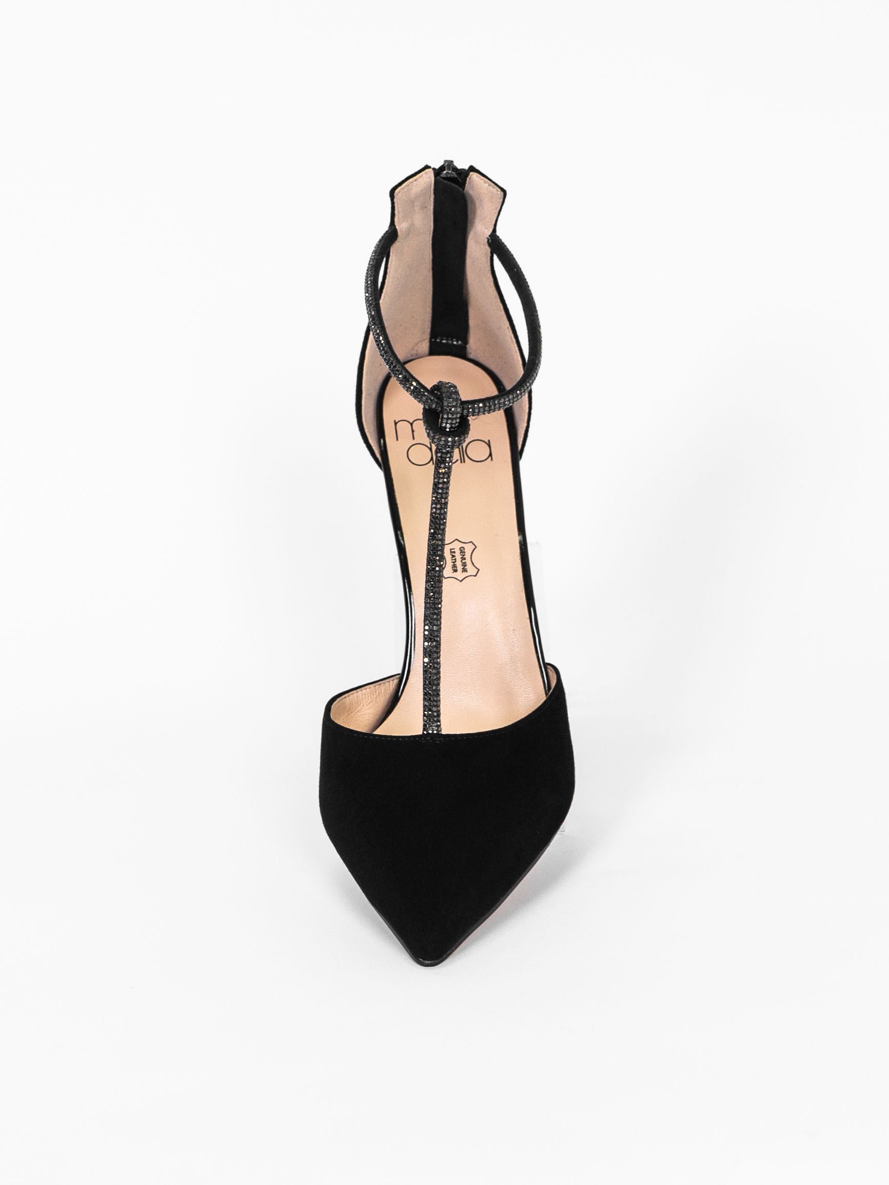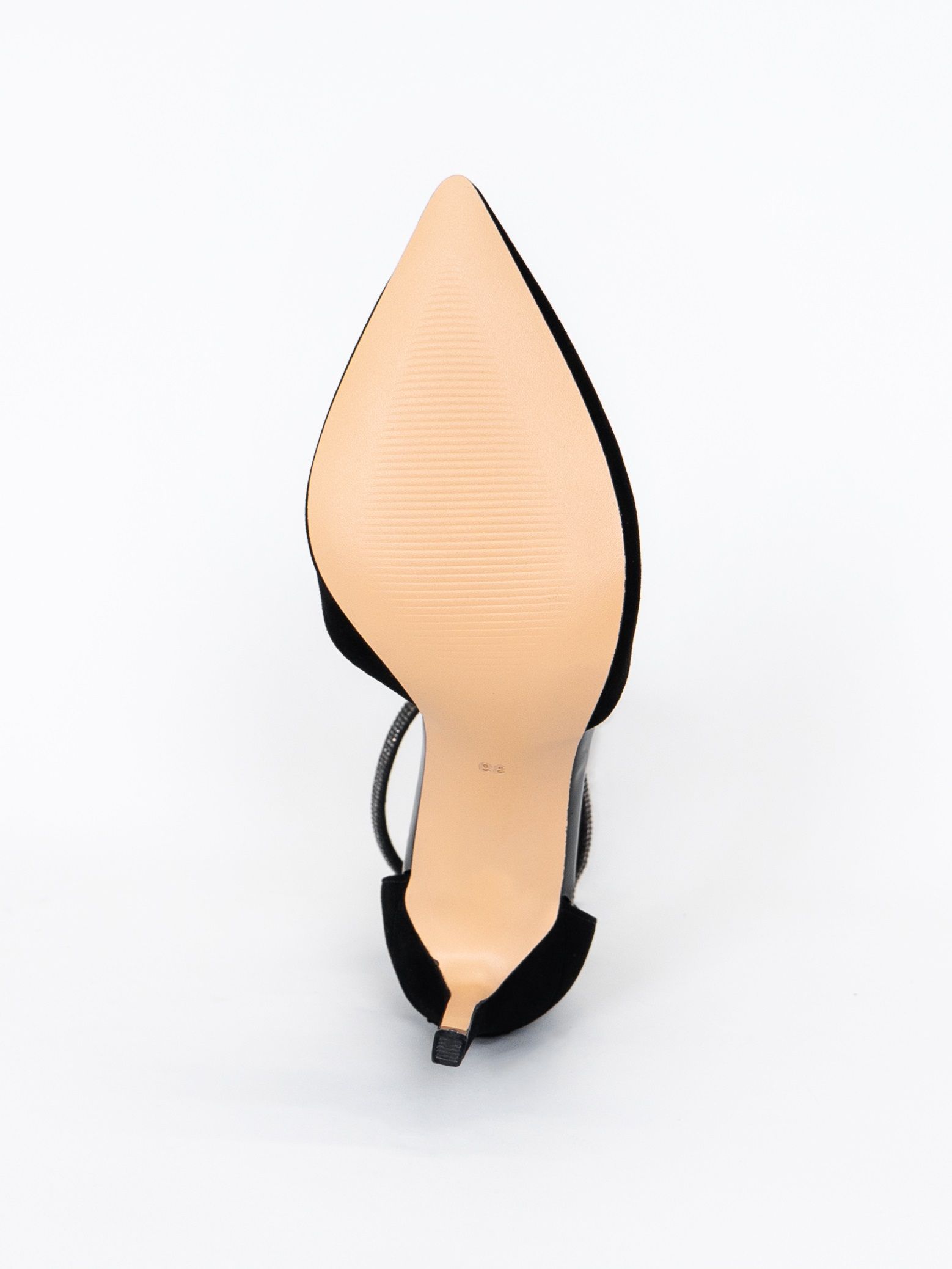 Данная модель отличается изысканным дизайном в виде изящного декоративного ремешка , который надежно фиксирует туфли на стопе, дабавляя пикантности образу.
