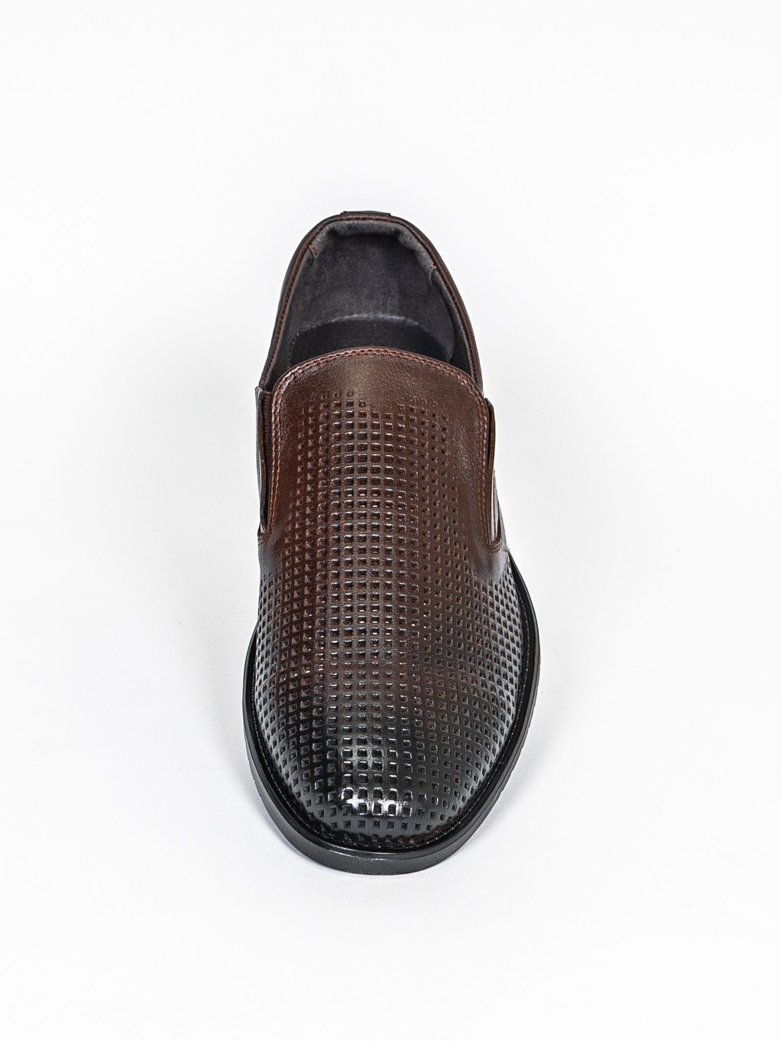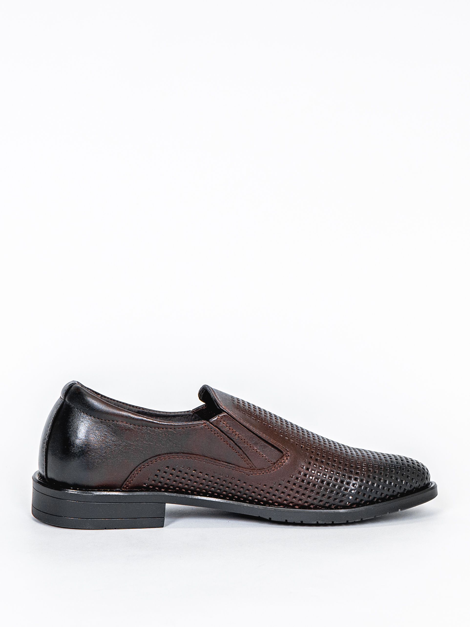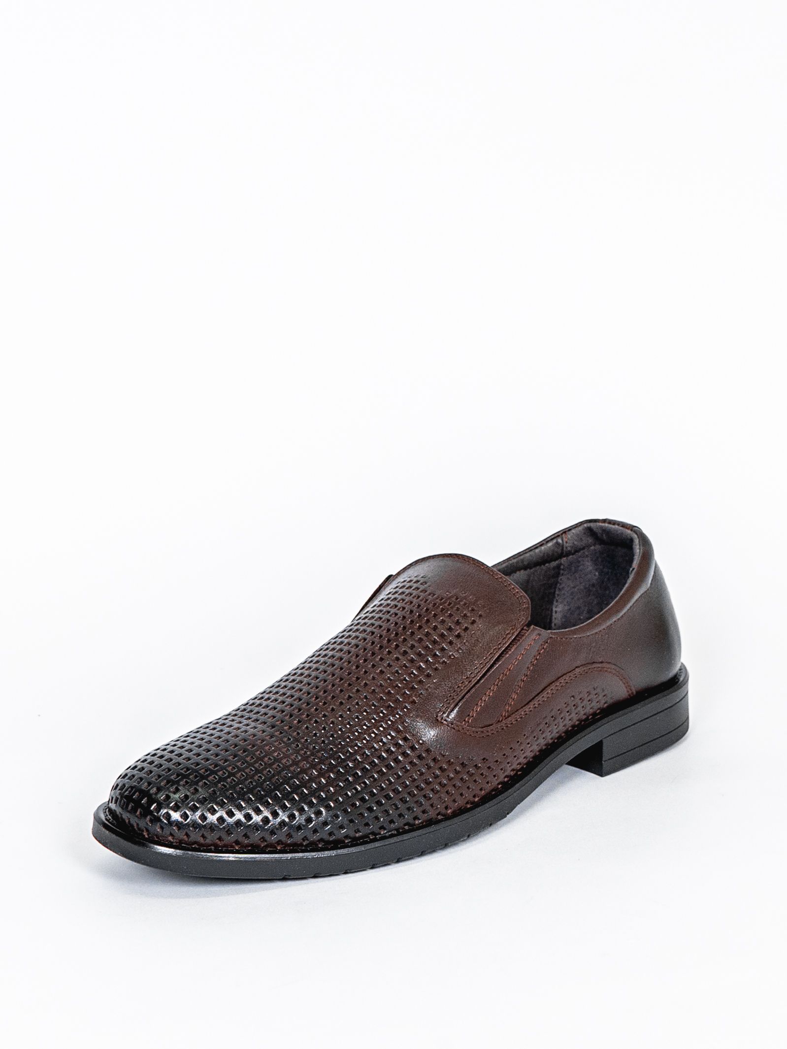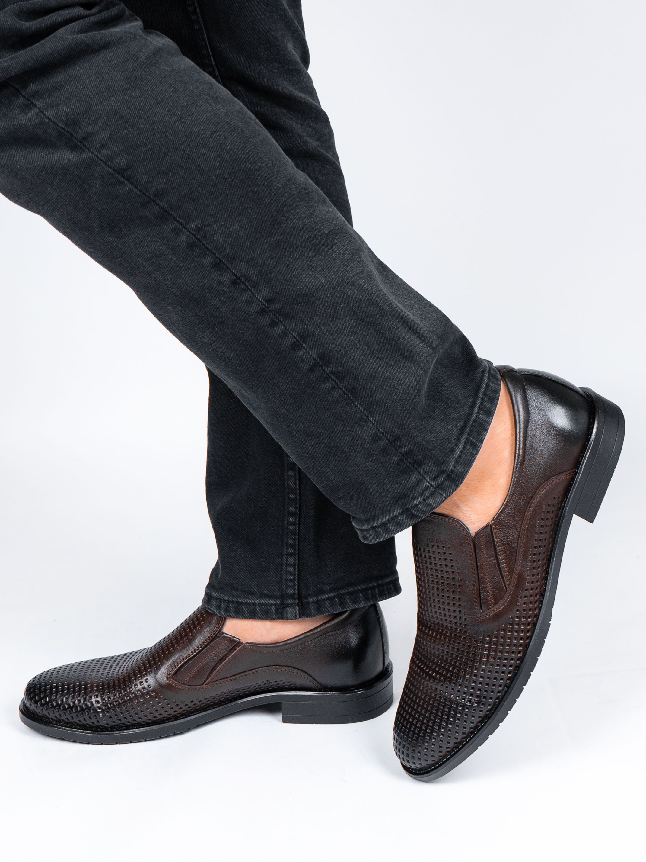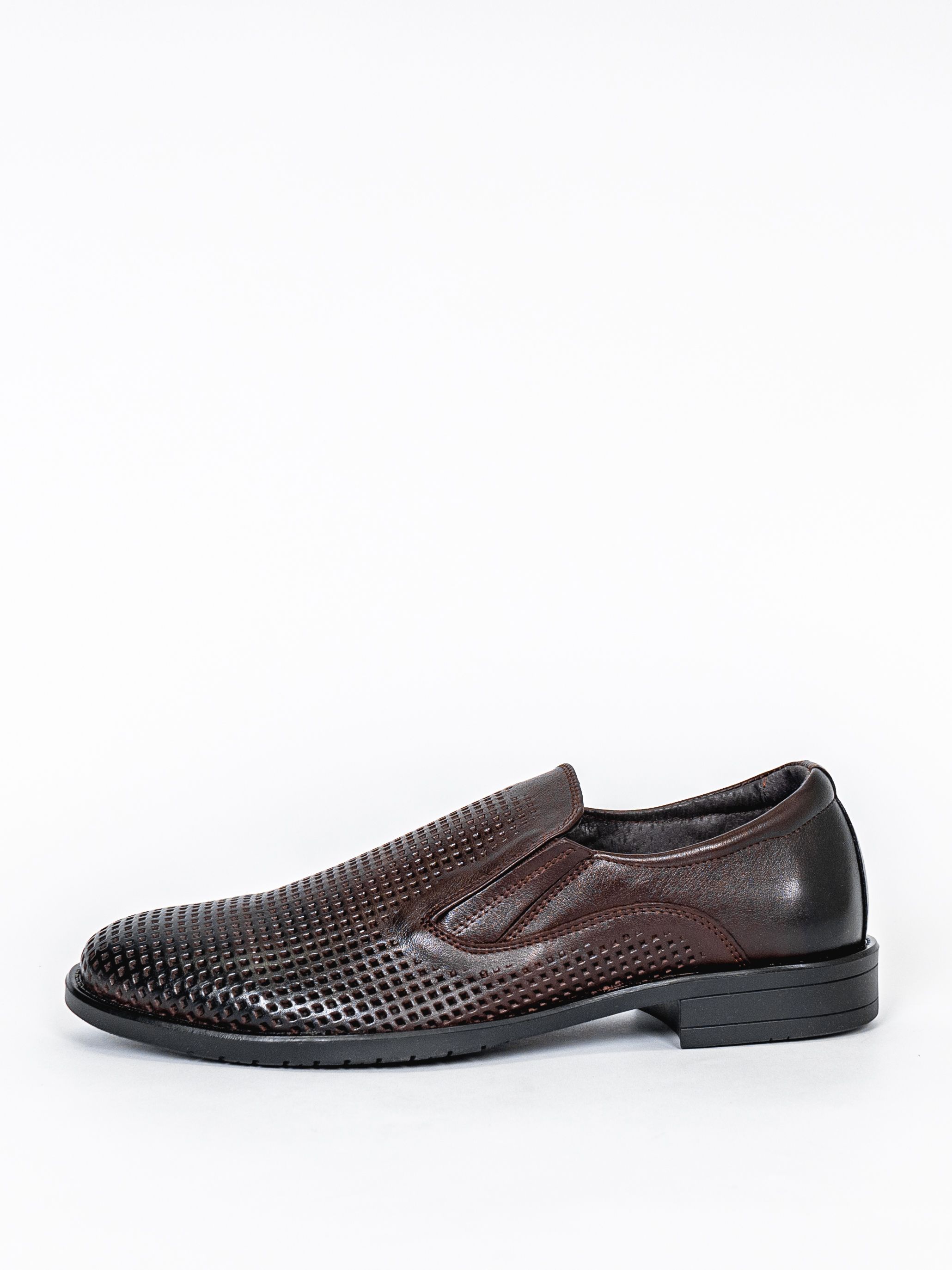 Туфли мужские коричневого цвета на плоской подошве с перфорацией разработаны с учетом анатомических особенностей стопы и гарантируют комфорт даже при длительной носке, а подкладка из натуральной кожи позволяет ноге дышать.