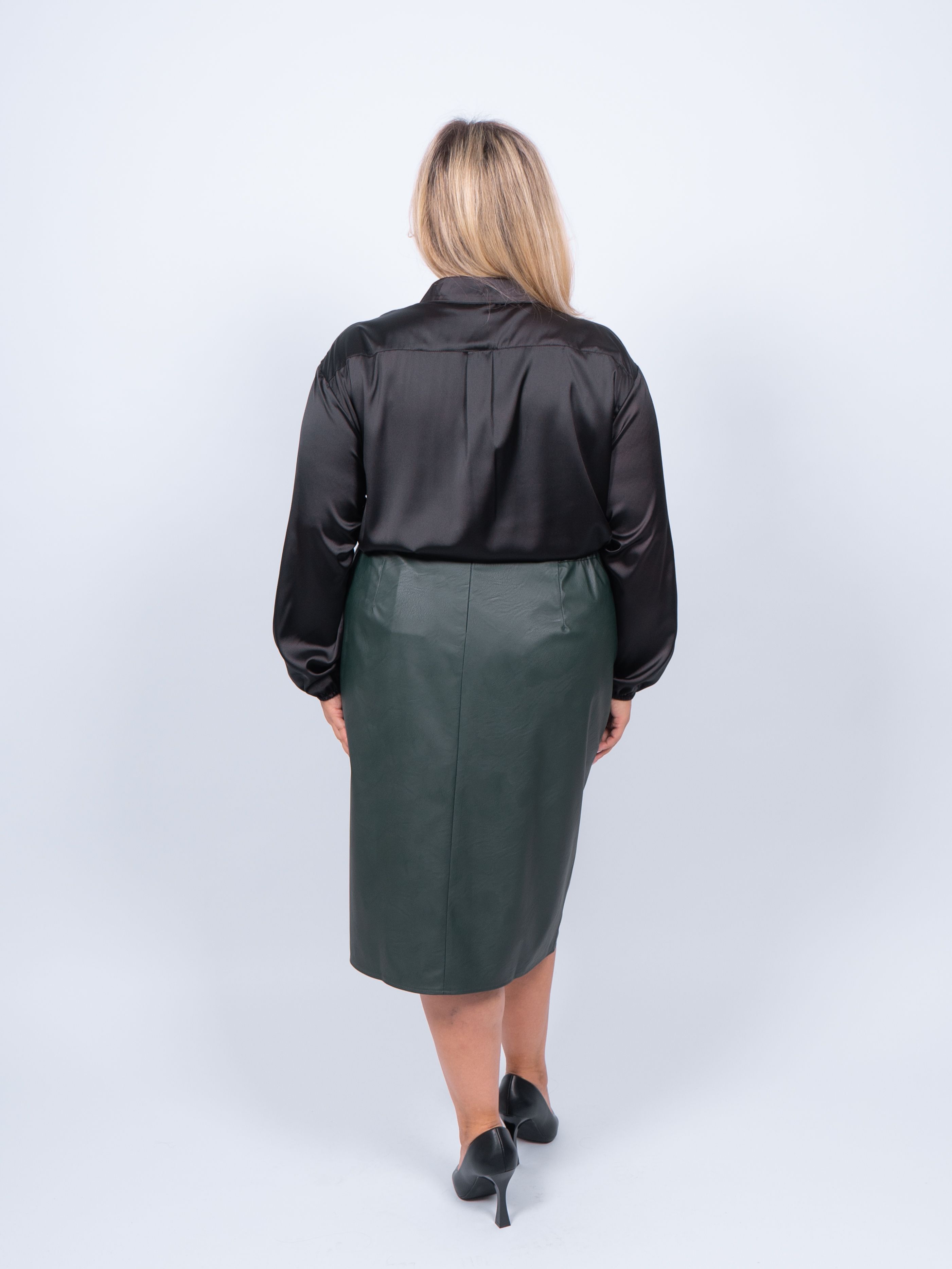 Юбка женская миди из эко-кожи - стильная и универсальная осенняя и зимняя одежда 2023 года. Идеально подойдет для офиса, школы, вечернего мероприятия или повседневной носки. Длинная темно зеленая юбка обладает классическим дизайном и прямым кроем, что делает ее элегантной и стильной одновременно. Изготовлена из экокожи высокого качества с разрезом спереди, эта юбка обеспечит тепло и комфорт осенью и зимой. Красивая юбочка не только теплая, но и стильная. Удлиненная кожаная юбка карандаш изготавливается из плотной качественной эко кожи, которая не склонна к загрязнениям, а в случае их возникновения, будет достаточно протереть влажной салфеткой загрязненный участок, и Вы снова будете великолепны . Правильно подобранная длина юбки с вырезом по колено не будет стеснять движения и подойдет для высоких и для невысоких девушек. Базовая модель доступна в размерах от 48 до 58 размера. Элегантная базовая женская юбка – продолжает быть трендом осень-зима 2024. Демисезонная юбка с высокой посадкой и удобным вырезом становится универсальным базовым элементом стиля любой молодой дамы. Юбка из эко кожи станет отличным подарком жене, подруге, дочке, как сюрприз на Новый год, Рождество, на Пасху, на 8 марта, день рождения, 14 февраля. В такой юбке Вы будете великолепны и не останетесь незамеченной!