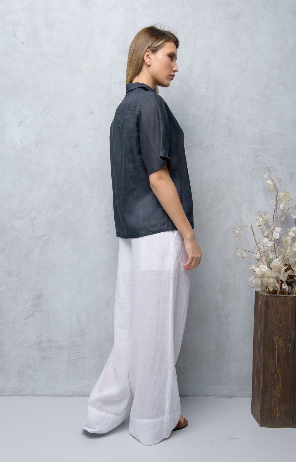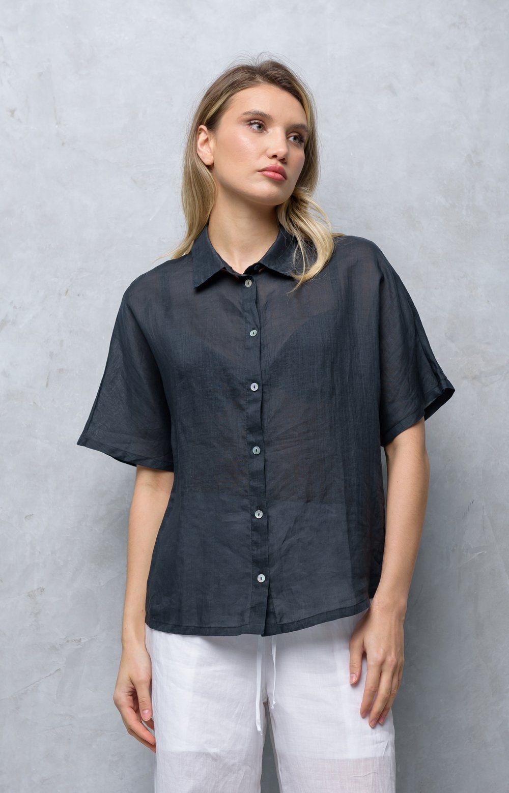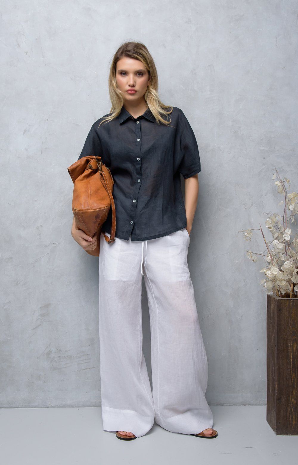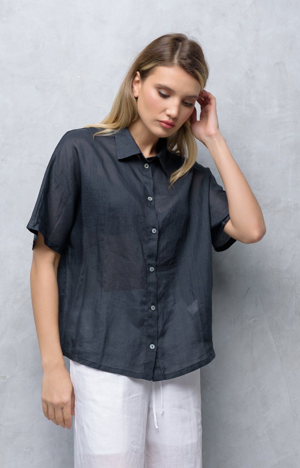 Модная женская льняная блузка черного цвета. Блуза-рубашка удачно сочетаются с джинсами, разными моделями брюк и юбок. Она станет достойной альтернативой обычной майки или футболки. Кофточка из льна делает образ более женственным и привлекательным. Эта необычная свободная модель выполнена из натуральногого материала высокого качества, благодаря этому она легкая и удобная в носке. Благодаря цвету и стильному прямому дизайну средней длины, блузка подчеркнет ваш индивидуальный женский стиль и добавит нотку необычности в ваш гардероб, украсит любые параметры полных дам. Не упустите возможность приобрести эту оригинальную красоту, которая станет ярким акцентом и позволит выглядеть модно, современно и молодежно в любое время года. Покупайте качественную натуральную женскую одежду и наслаждайтесь комфортом и элегантностью!