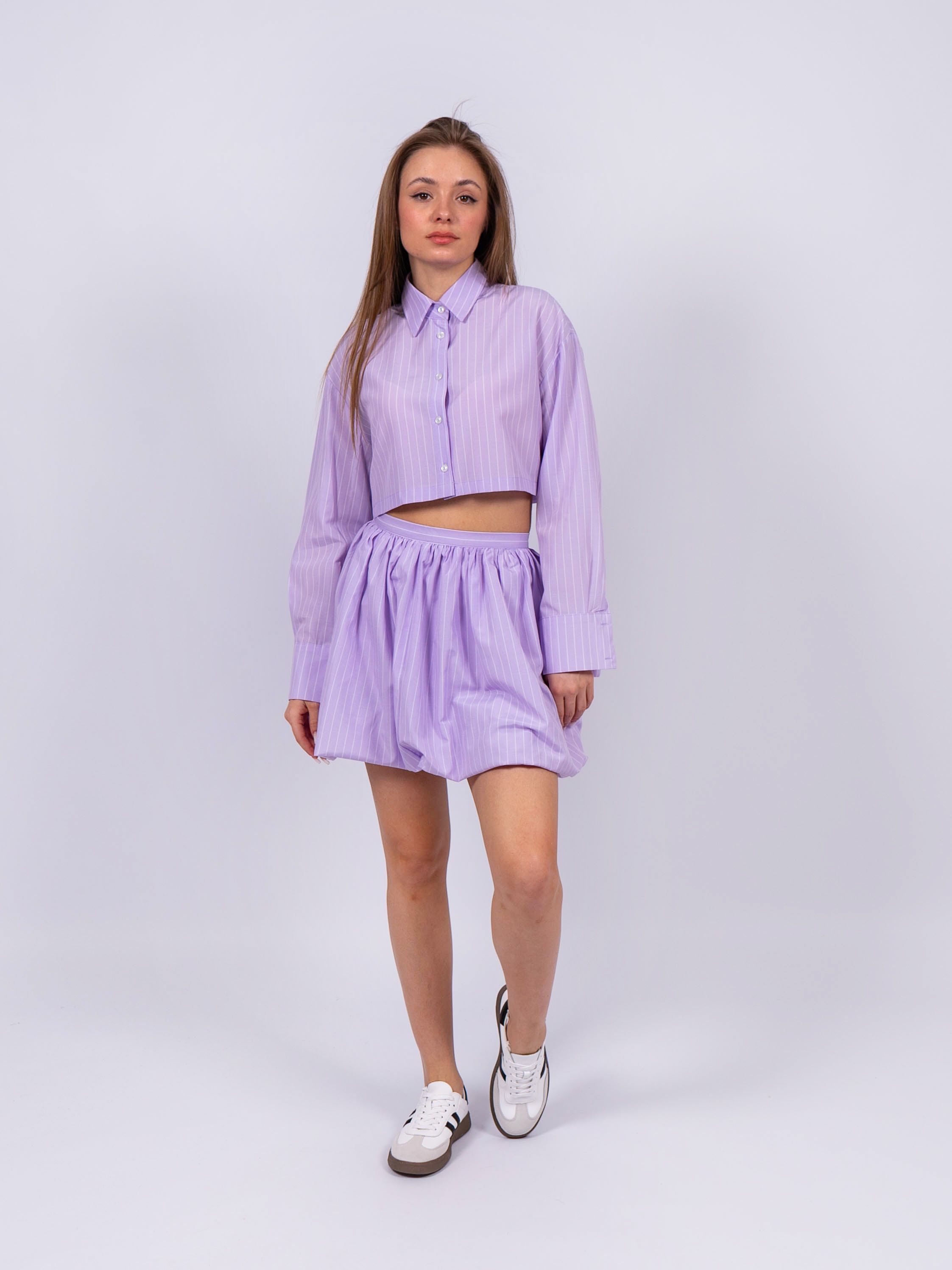 7448 Рубашка укороченная женская сиреневый GIRL