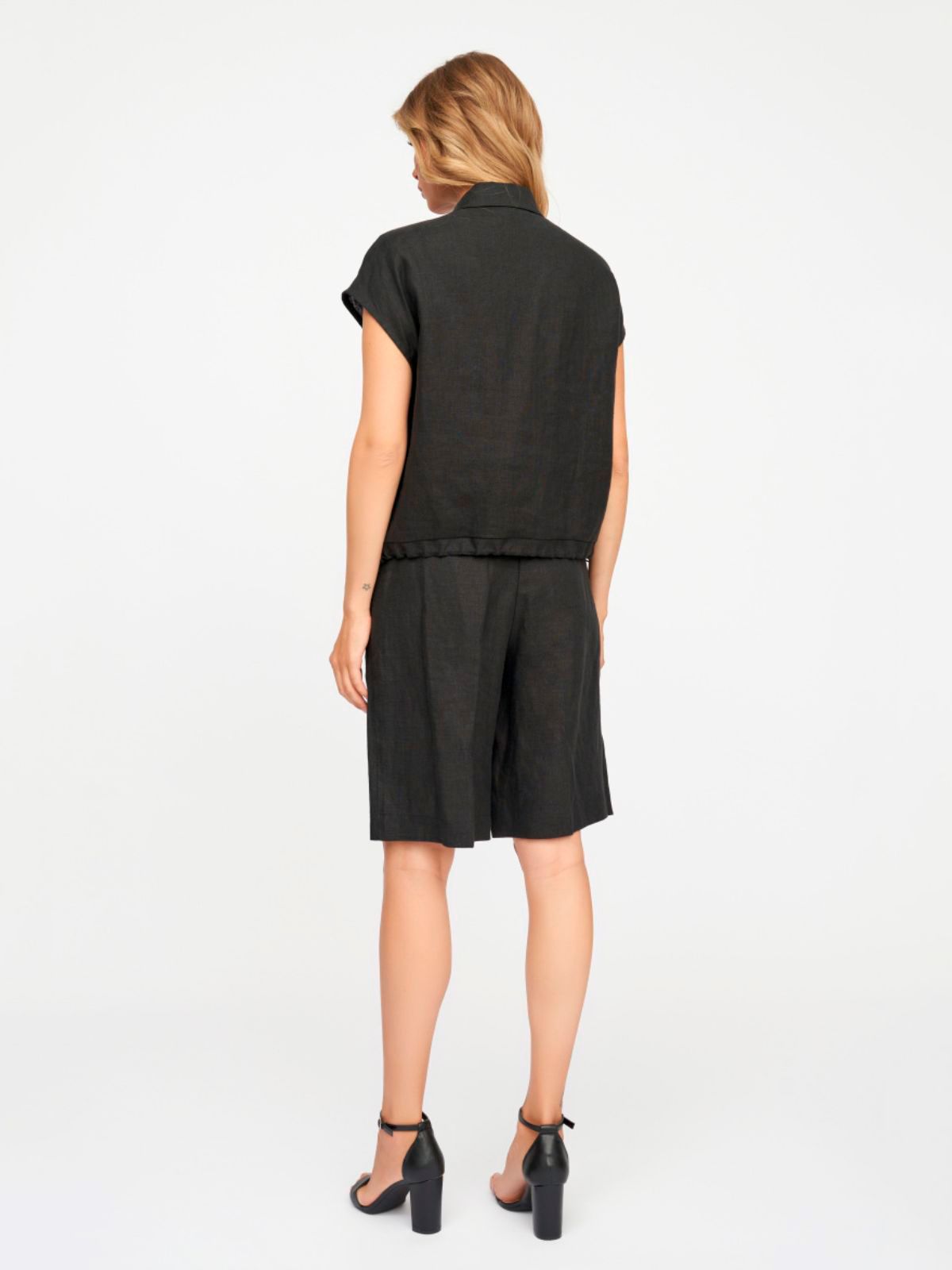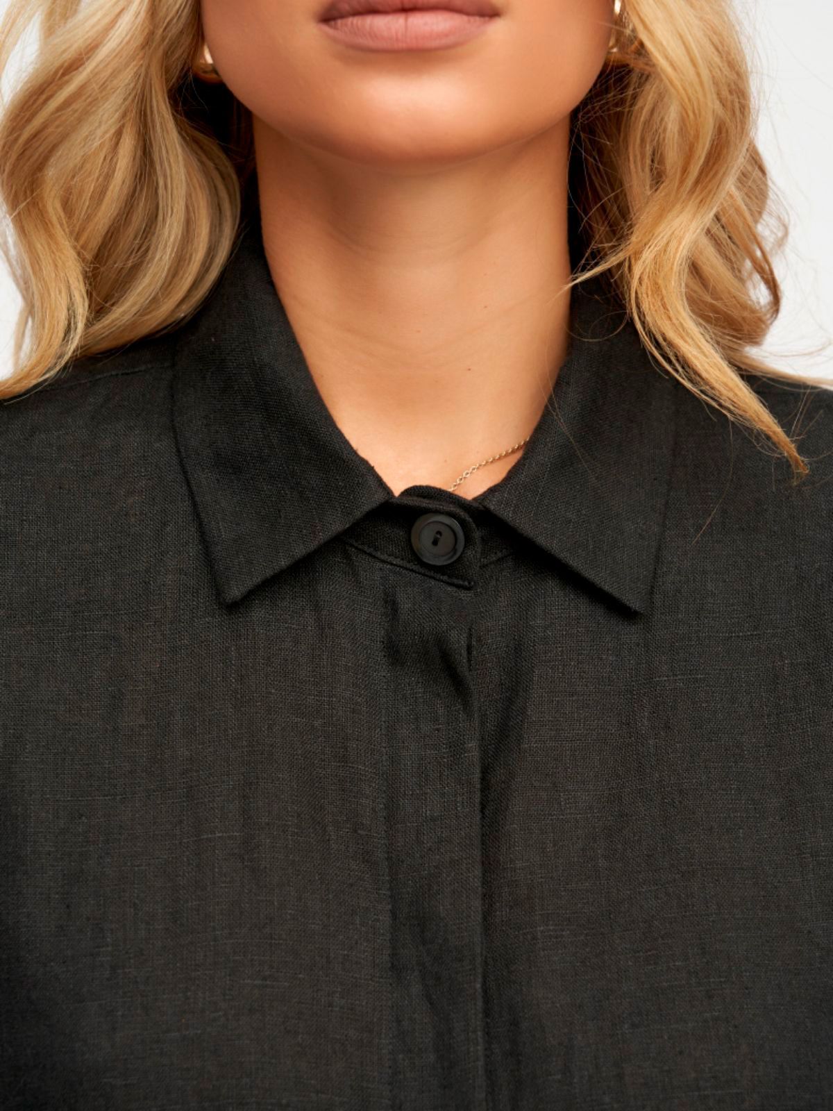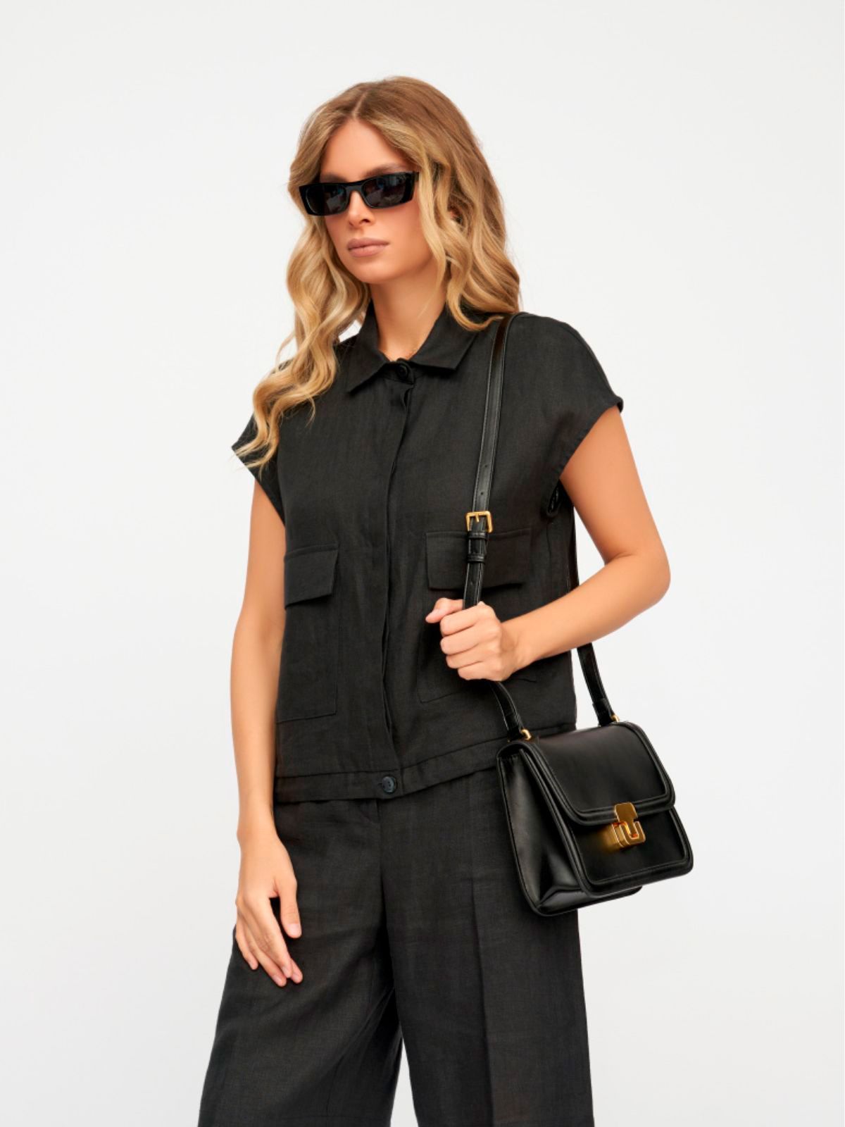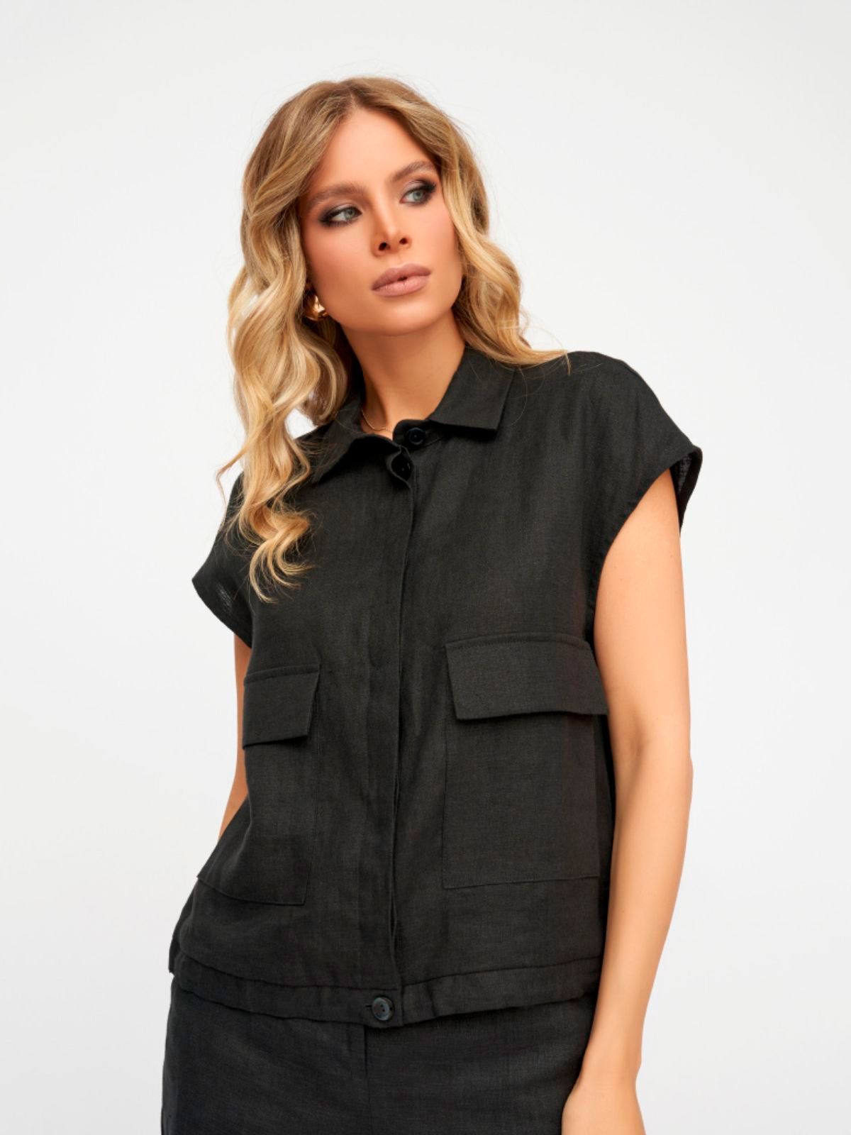 Модная женская льняная блузка черная. Блуза удачно сочетаются с джинсами, разными моделями брюк и юбок. Она станет достойной альтернативой обычной майки или футболки. Кофточка из льна делает образ более женственным и привлекательным. Эта необычная свободная модель выполнена из 100% льна высокого качества, благодаря этому она легкая и удобная в носке. Благодаря классическому круглому вырезу, натуральному цвету и стильному прямому дизайну средней длины, блузка подчеркнет ваш индивидуальный женский стиль и добавит нотку необычности в ваш гардероб, украсит любые параметры полных дам. Не упустите возможность приобрести эту оригинальную красоту, которая станет ярким акцентом и позволит выглядеть модно, современно и молодежно в любое время года. Покупайте качественную натуральную женскую одежду и наслаждайтесь комфортом и элегантностью!