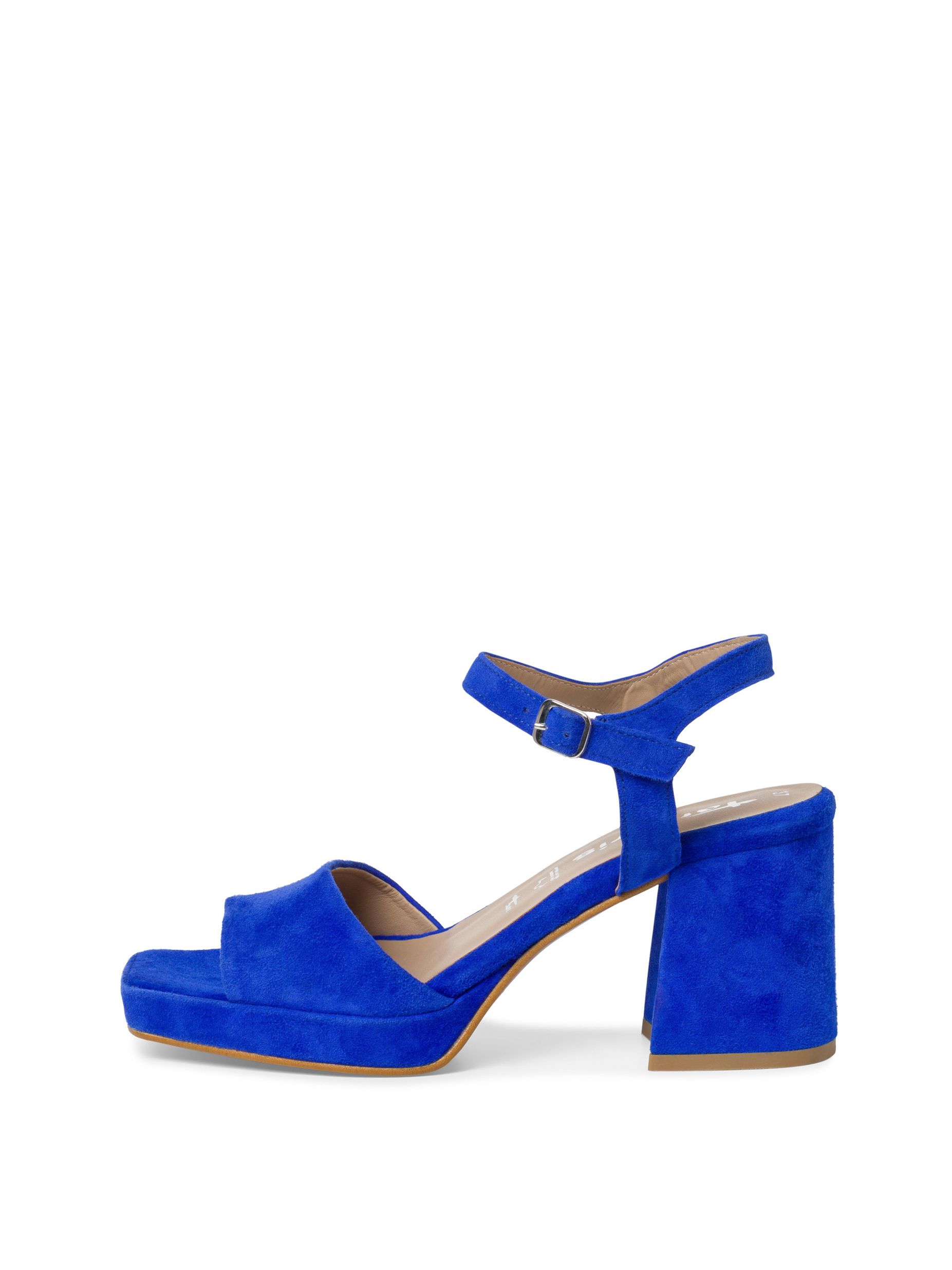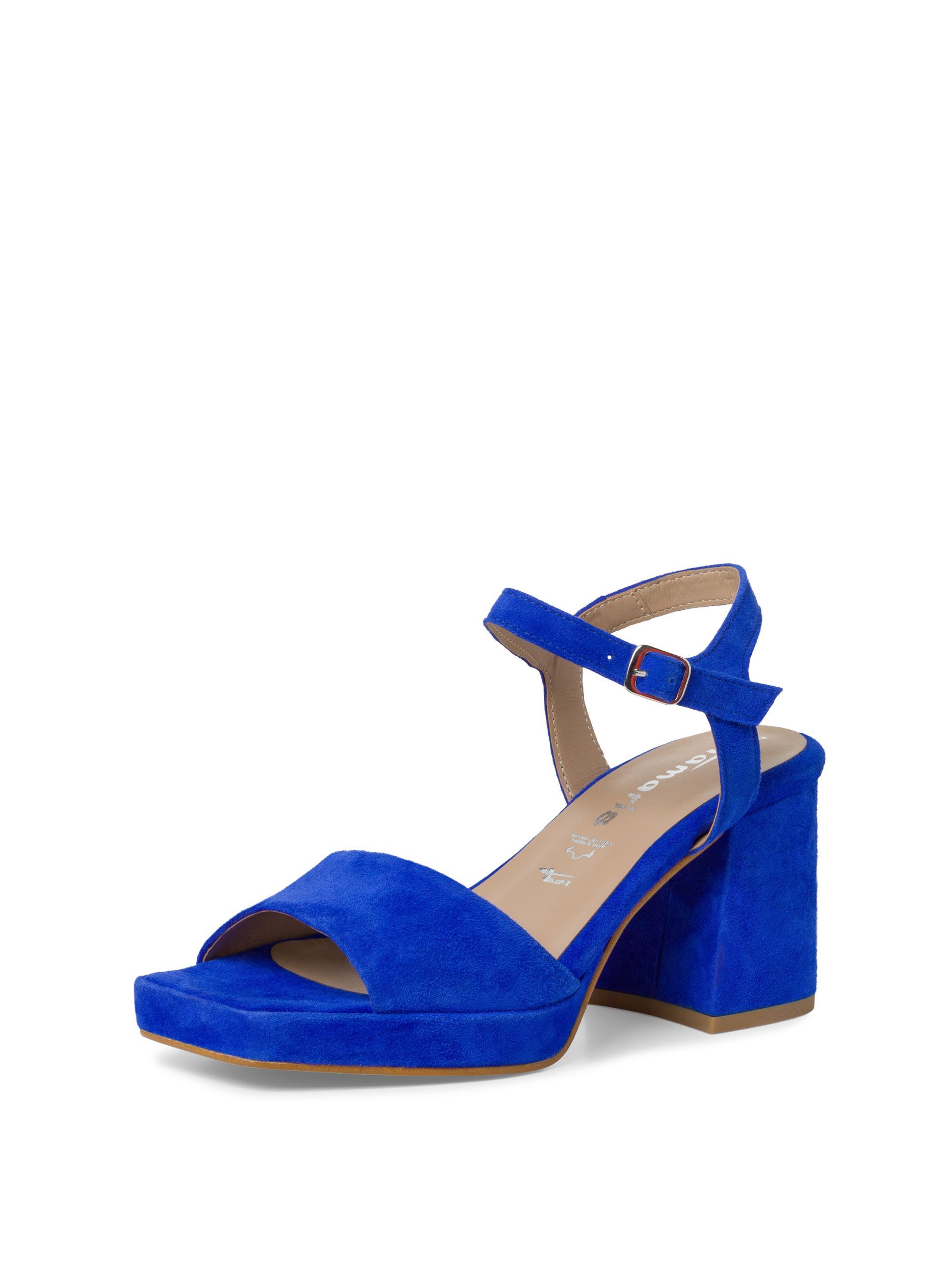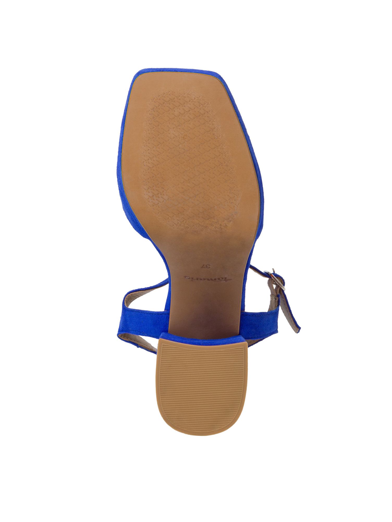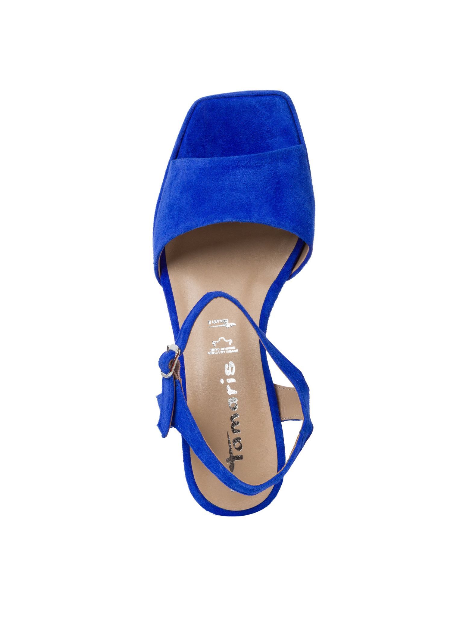 Босоножки женские немецкого бренда Tamaris. Верх изготовлен из натуральной кожи синего цвета. Материал подкладки искусственная кожа. Идеально подойдут на лето и станут отличным завершением к Вашему гардеробу.