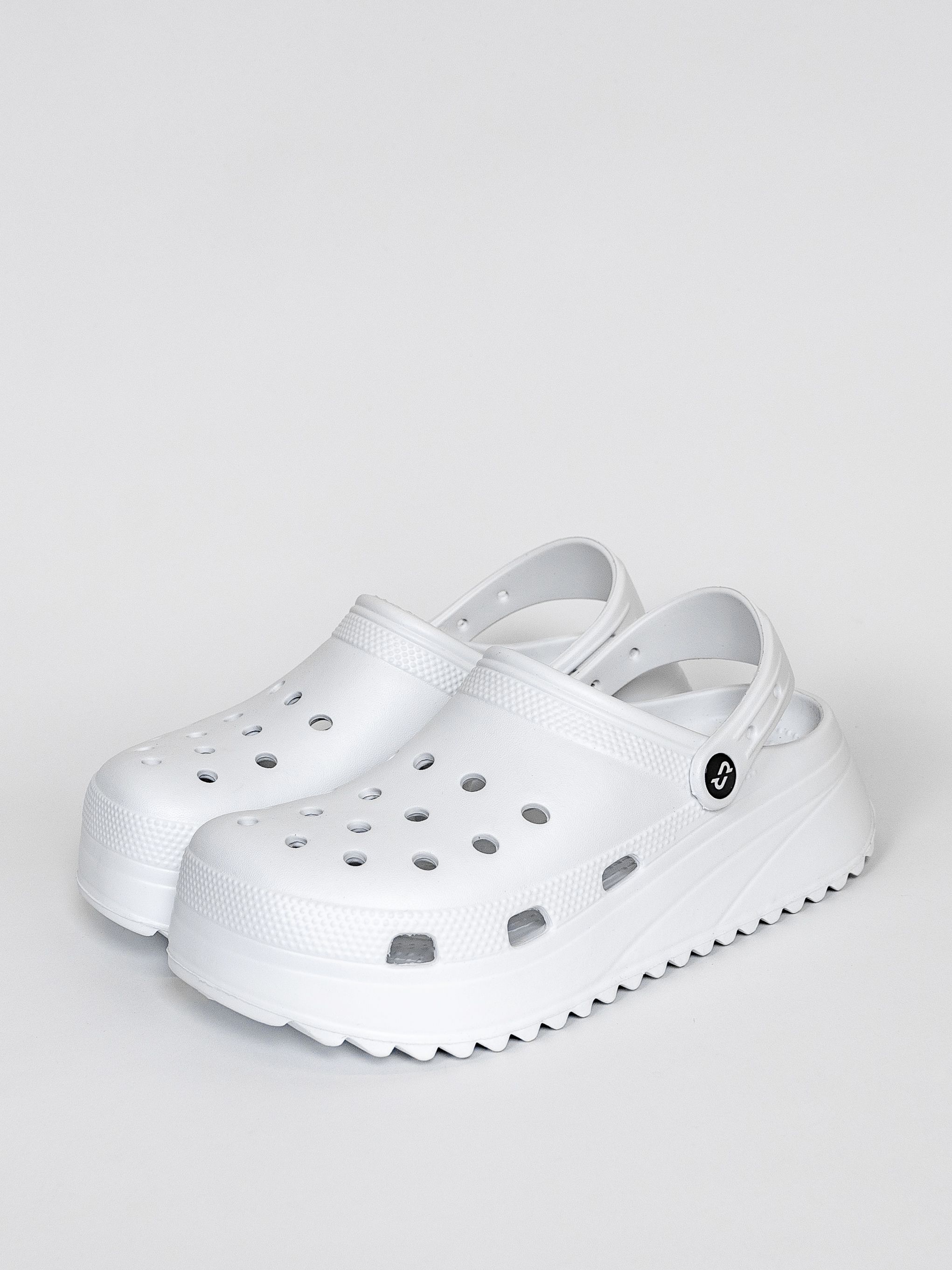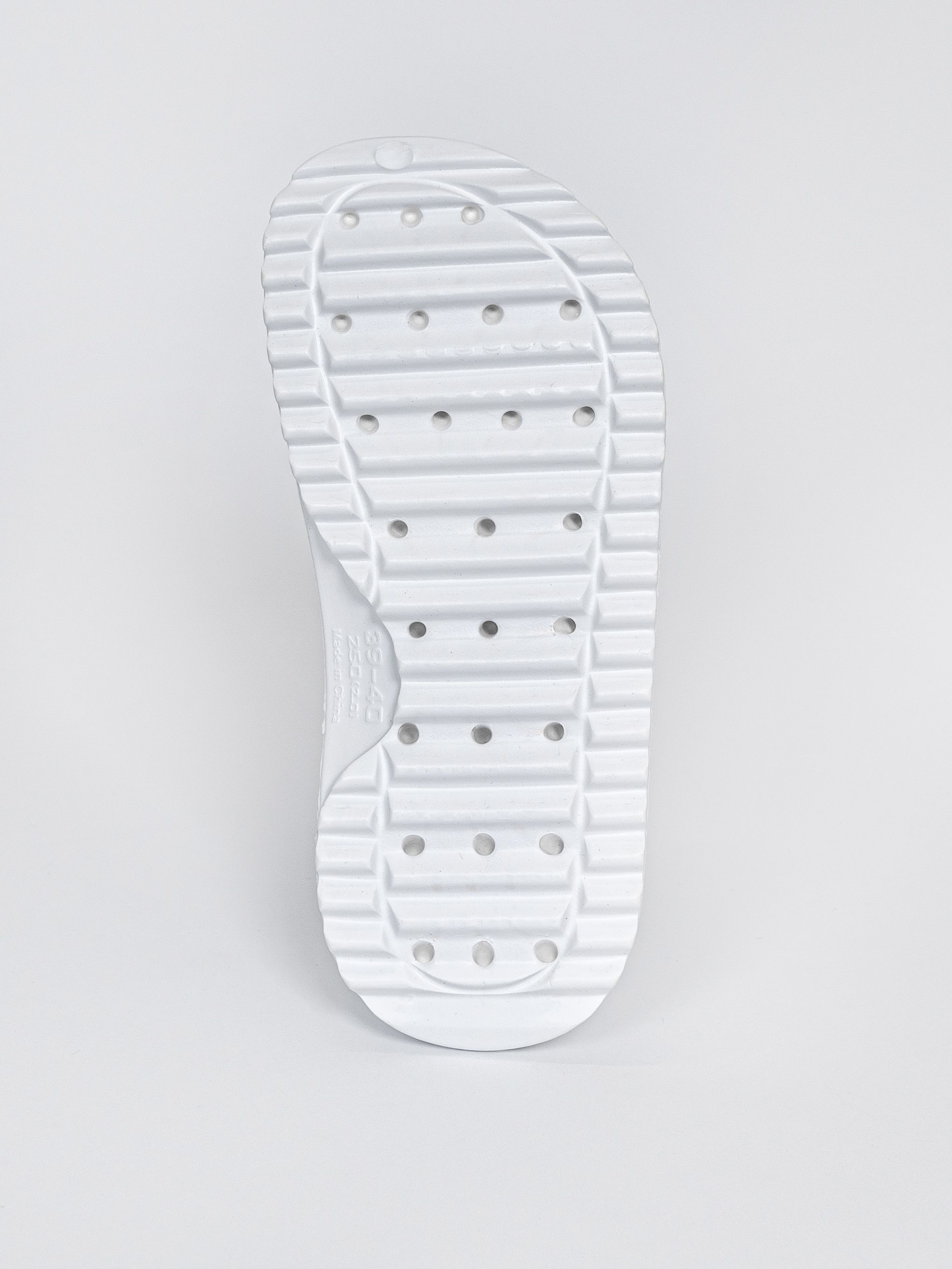 Сабо женские белого цвета без каблука, разработаны с учетом анатомических особенностей стопы и гарантируют комфорт даже при длительной носке, а отсутствие подкладки позволяет стопе дышать.
