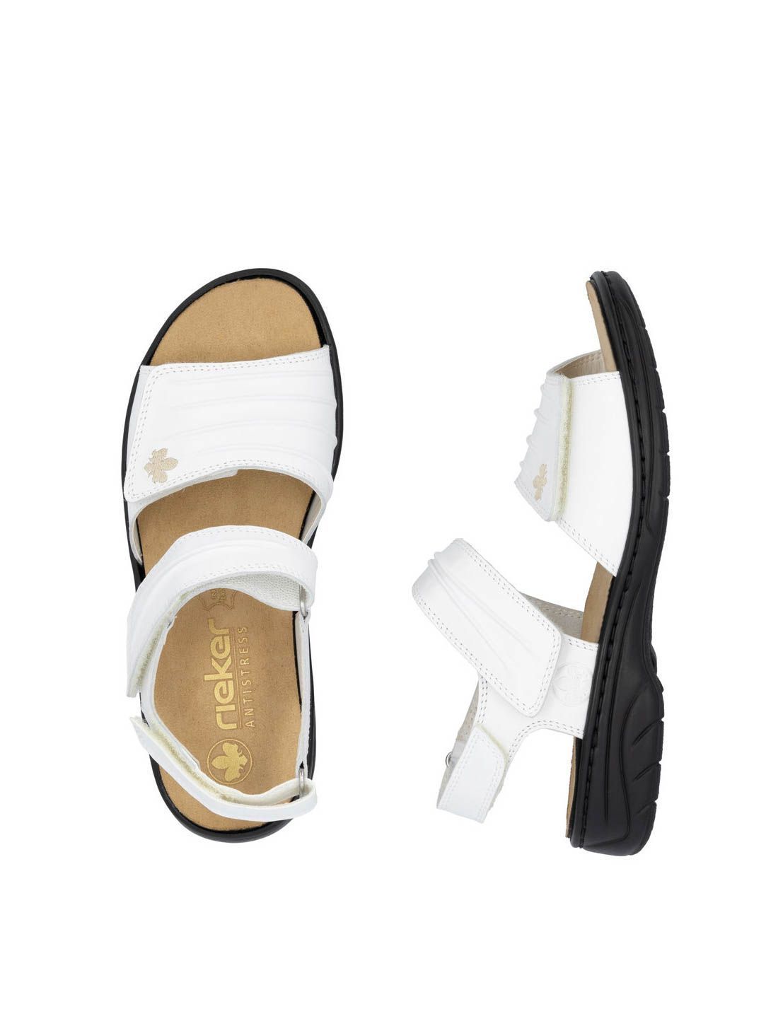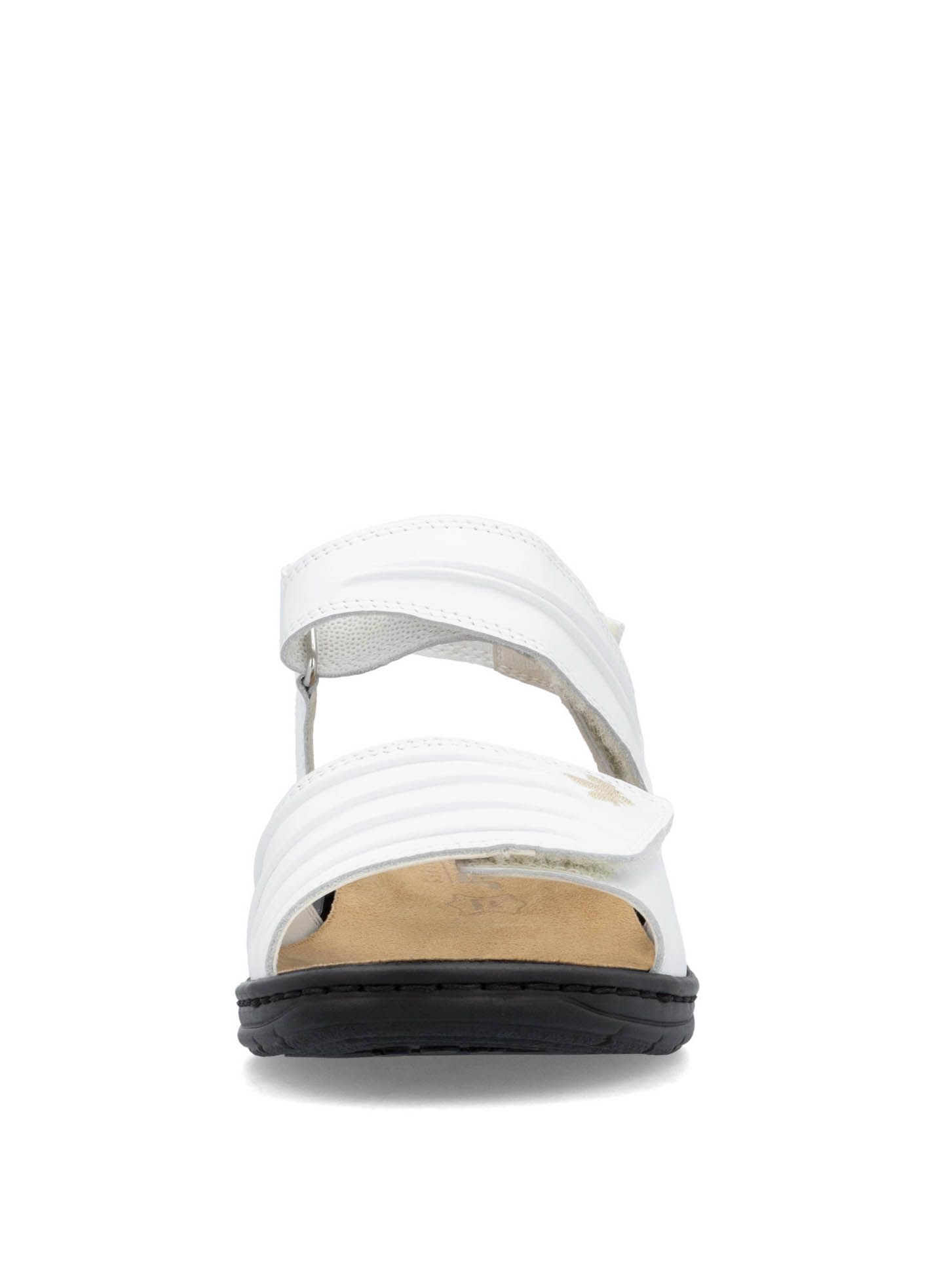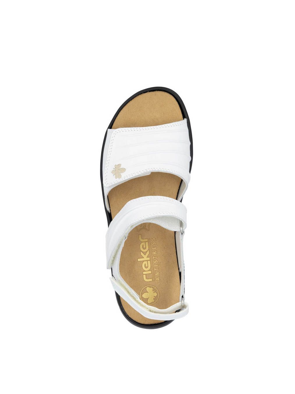 Рекомендуем рассмотреть белые женские сандалии на липучках от немецкого бренда Rieker, сочетающие в себе качество, комфорт, простой и современный дизайн.