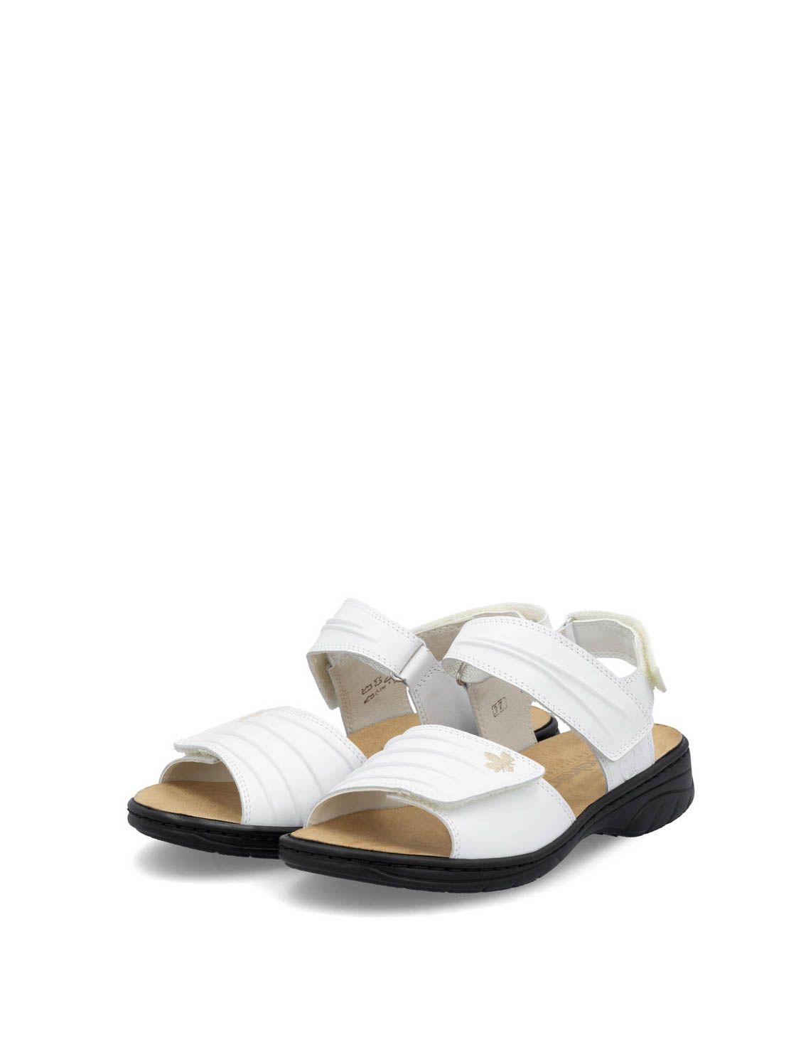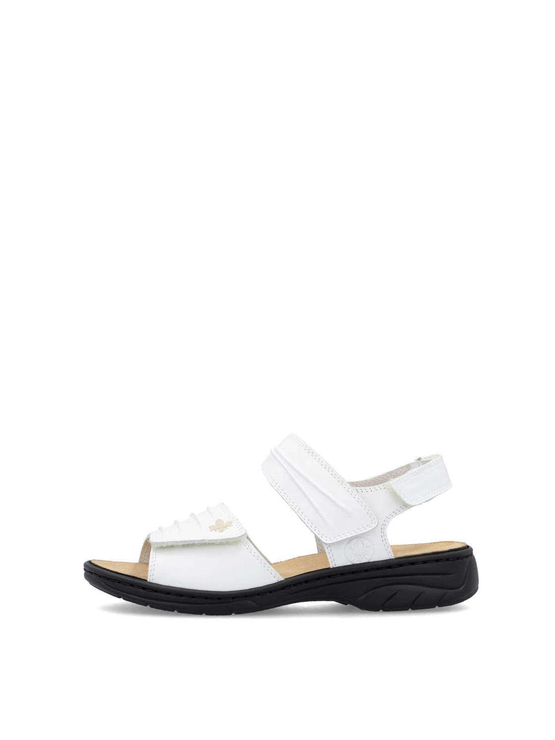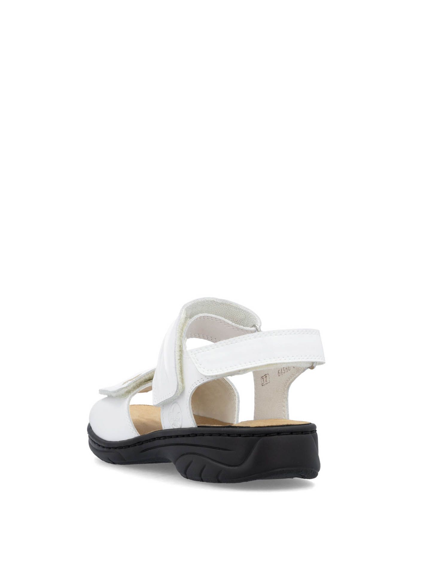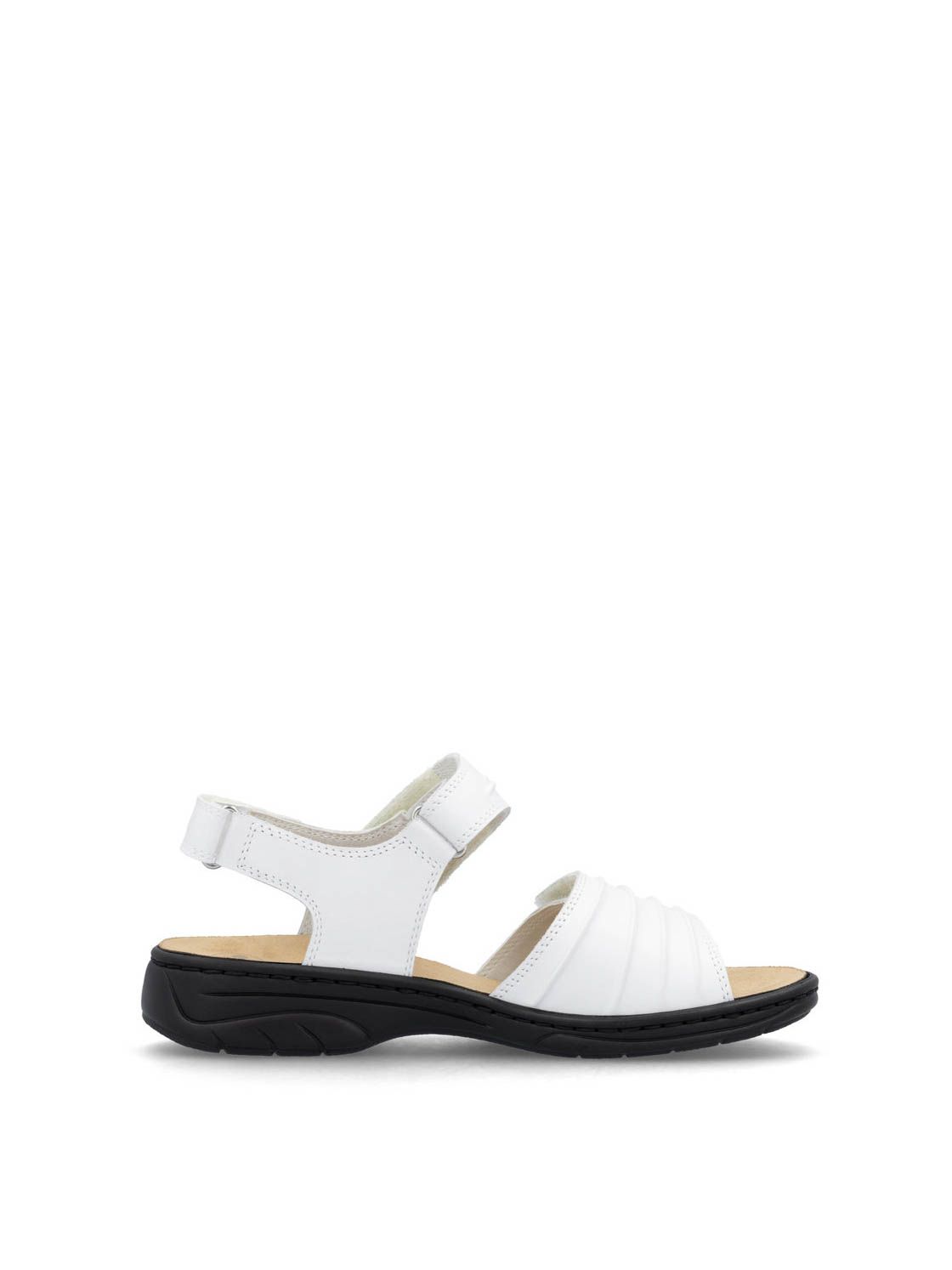 Рекомендуем рассмотреть белые женские сандалии на липучках от немецкого бренда Rieker, сочетающие в себе качество, комфорт, простой и современный дизайн.