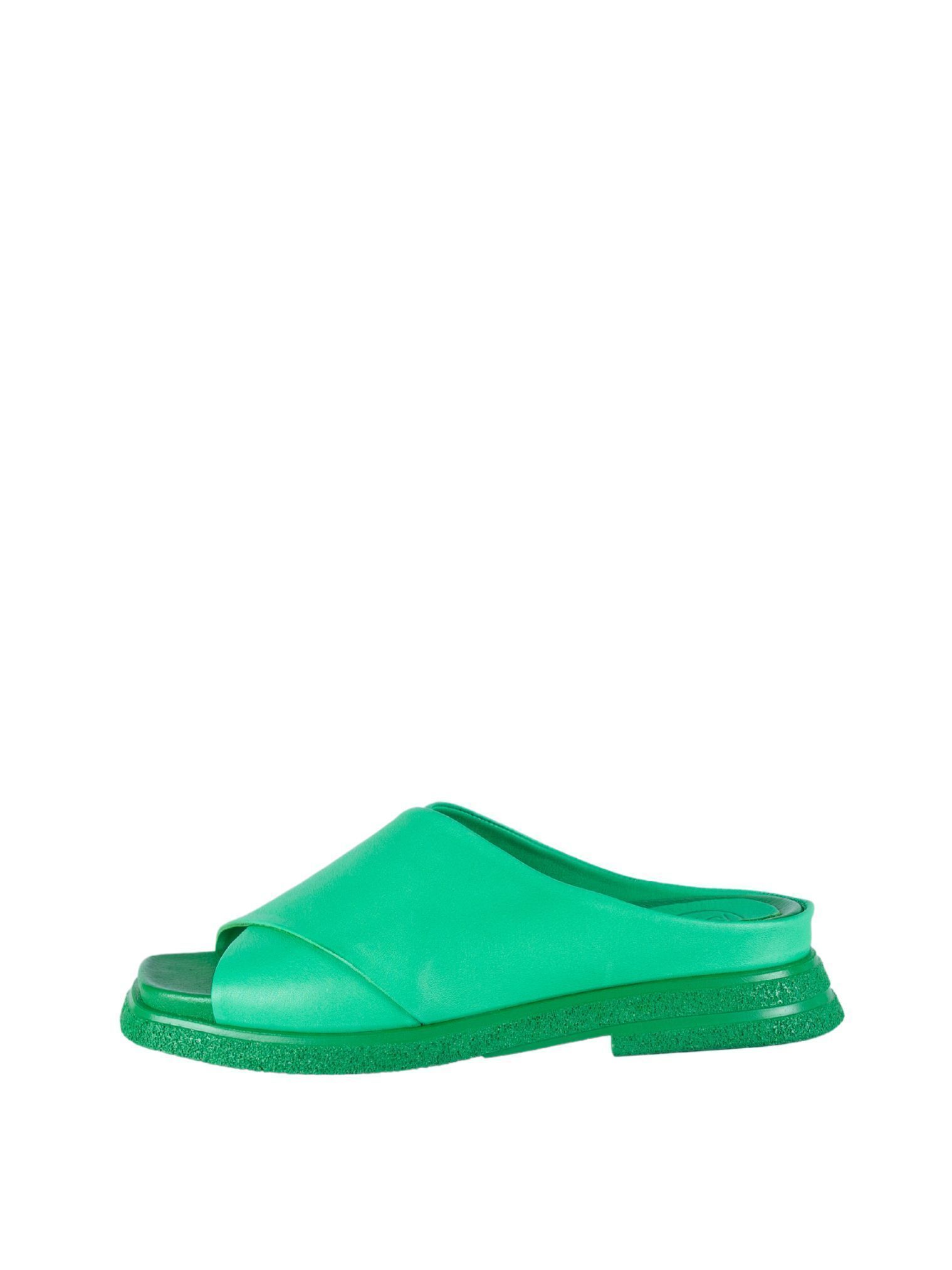 Пантолеты женские турецкого бренда SandM. Верх изготовлен из натуральной кожи зеленого цвета. Материал подкладки натуральная кожа. Идеально подойдут на лето и станут отличным завершением к Вашему гардеробу.