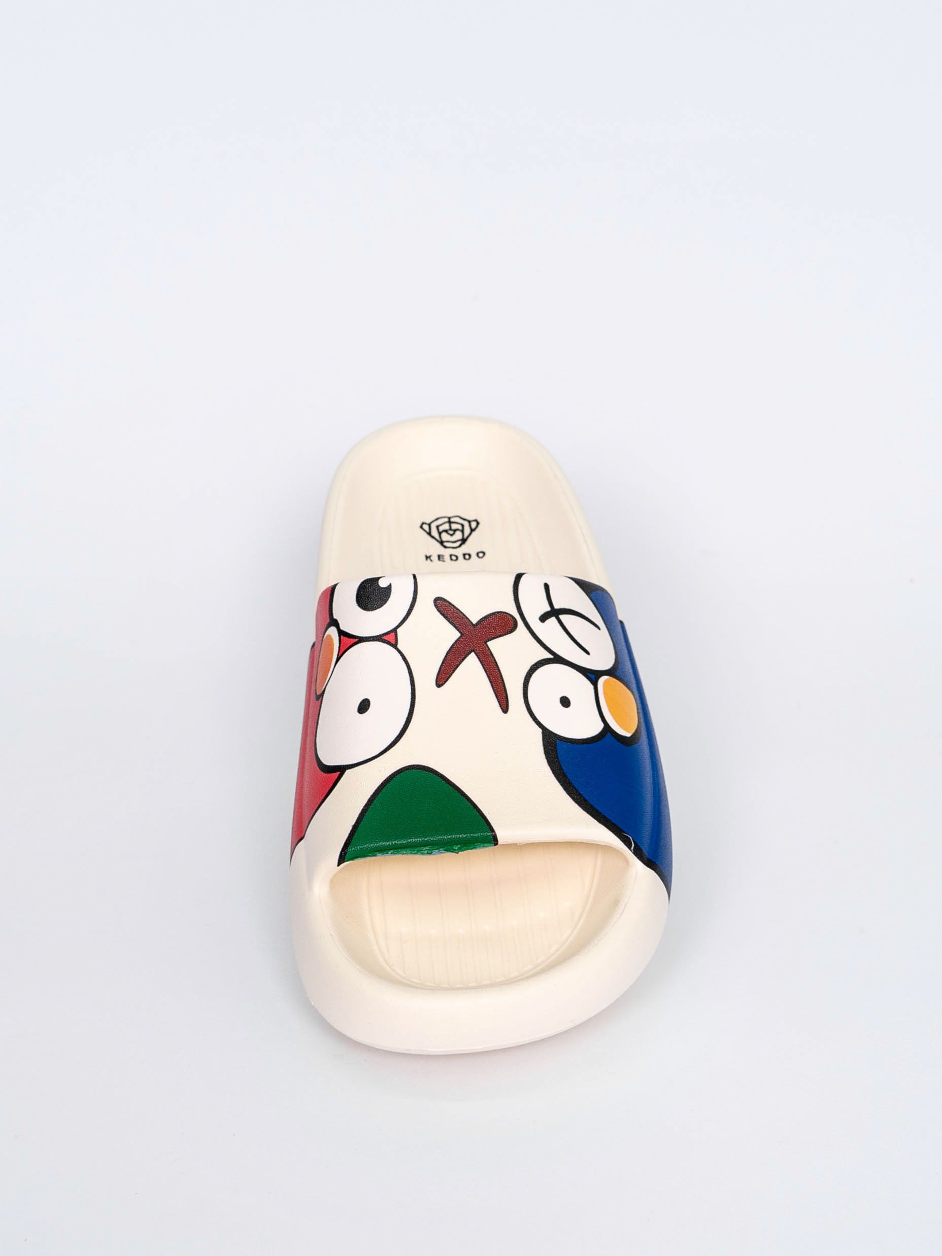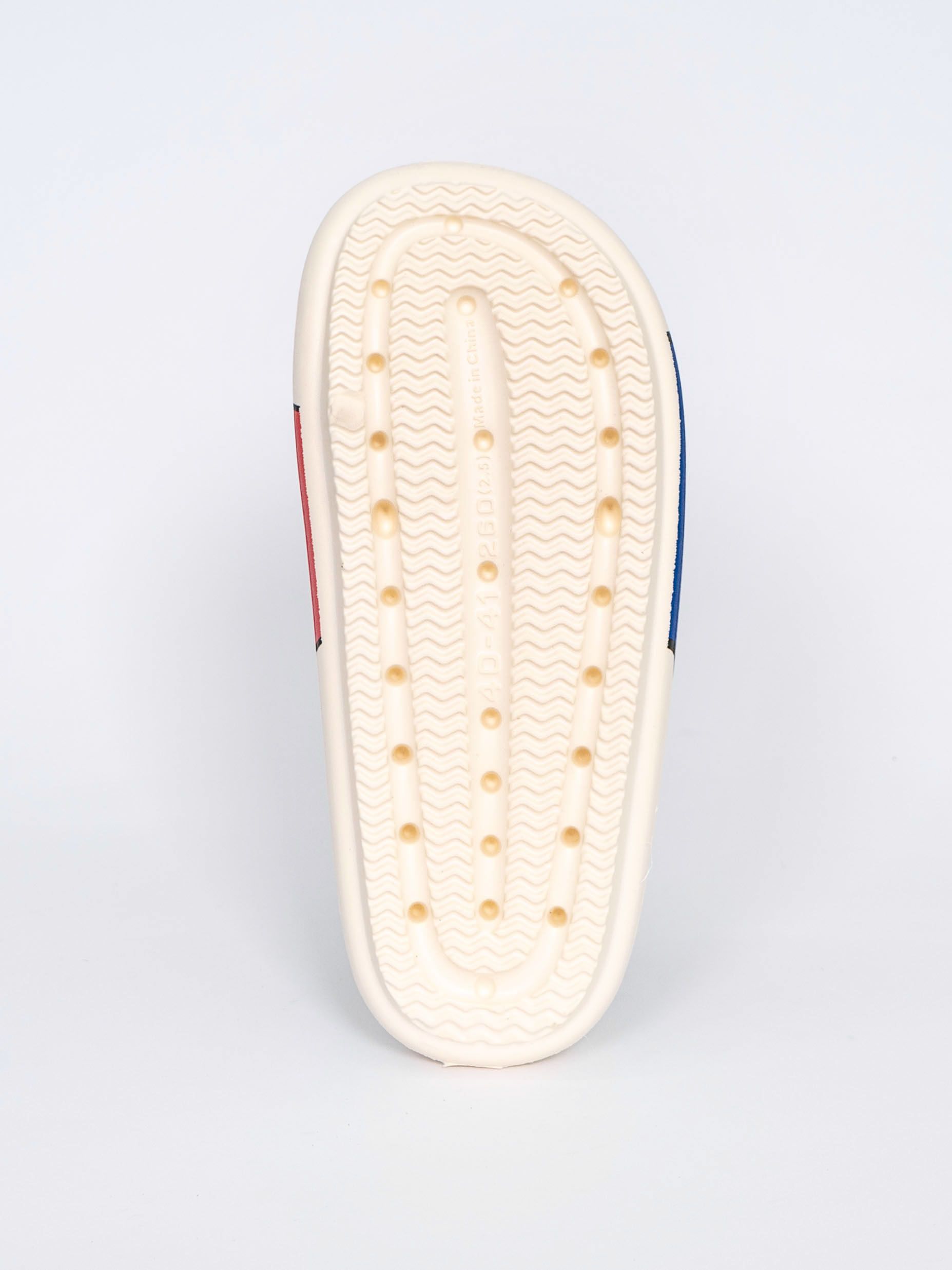 Шлепанцы женские светло-бежевого цвета с ярким принтом разработаны с учетом анатомических особенностей стопы и гарантируют комфорт даже при длительной носке, а отсутствие подкладки позволяет ноге дышать.