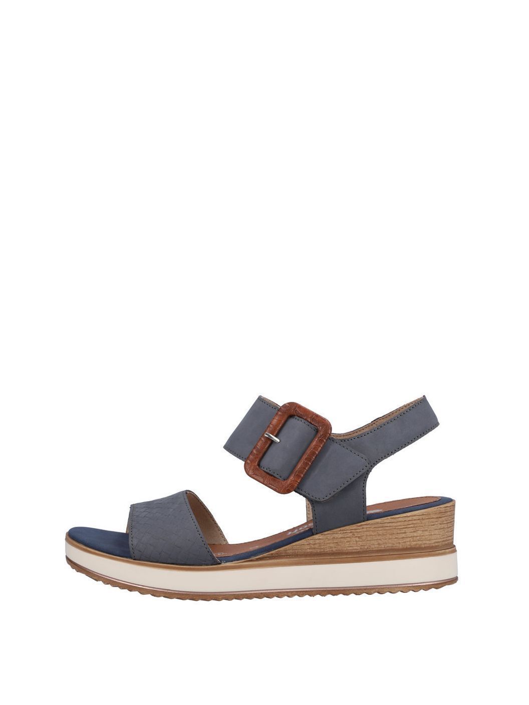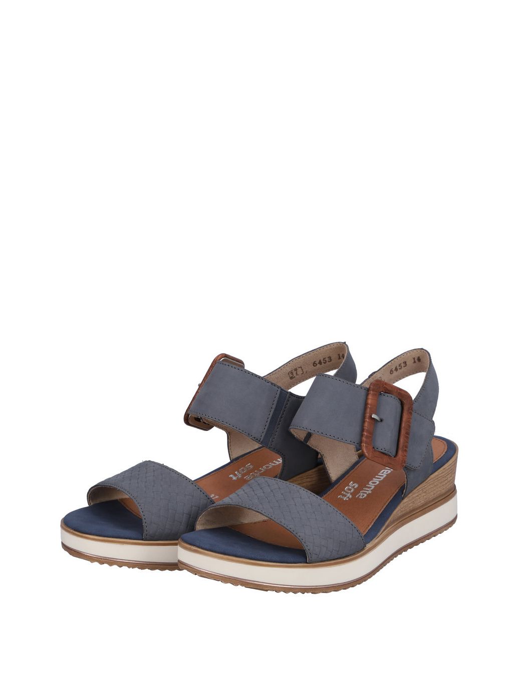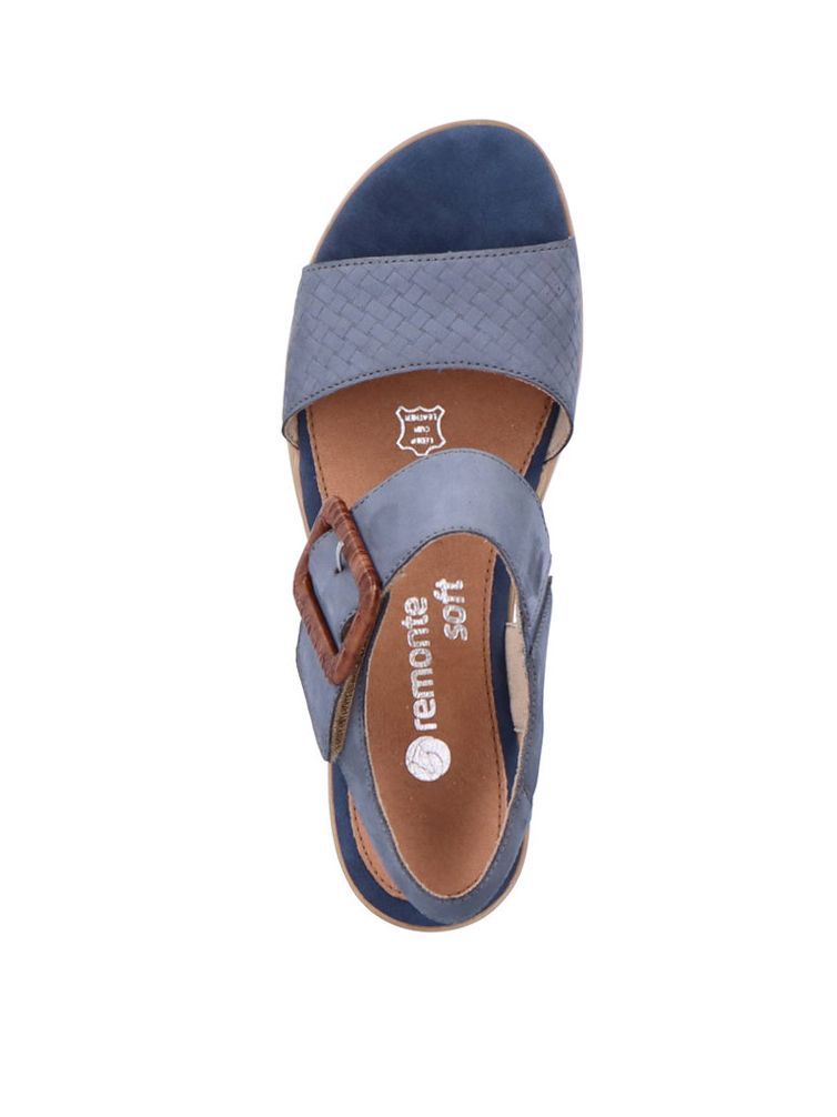 Босоножки женские немецкого бренда Remonte. Верх изготовлен из натуральной кожи синего цвета. Материал подкладки текстиль. Идеально подойдут на лето и станут отличным завершением к Вашему гардеробу.
