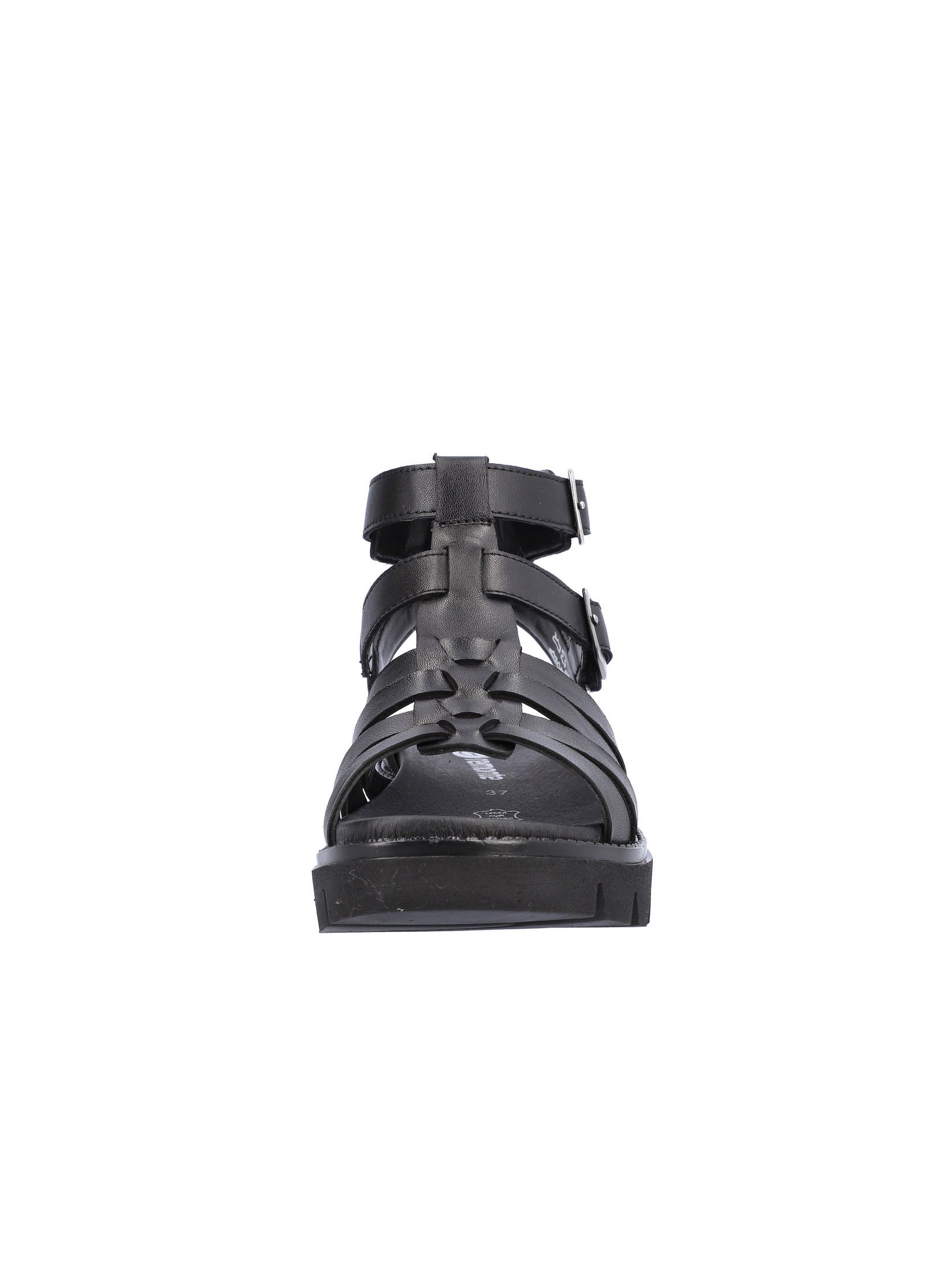 Сандалии женские немецкого бренда Remonte. Верх изготовлен из натуральной и искусственной кожи черного цвета. Материал подкладки текстиль. Идеально подойдут на лето и станут отличным завершением к Вашему гардеробу.