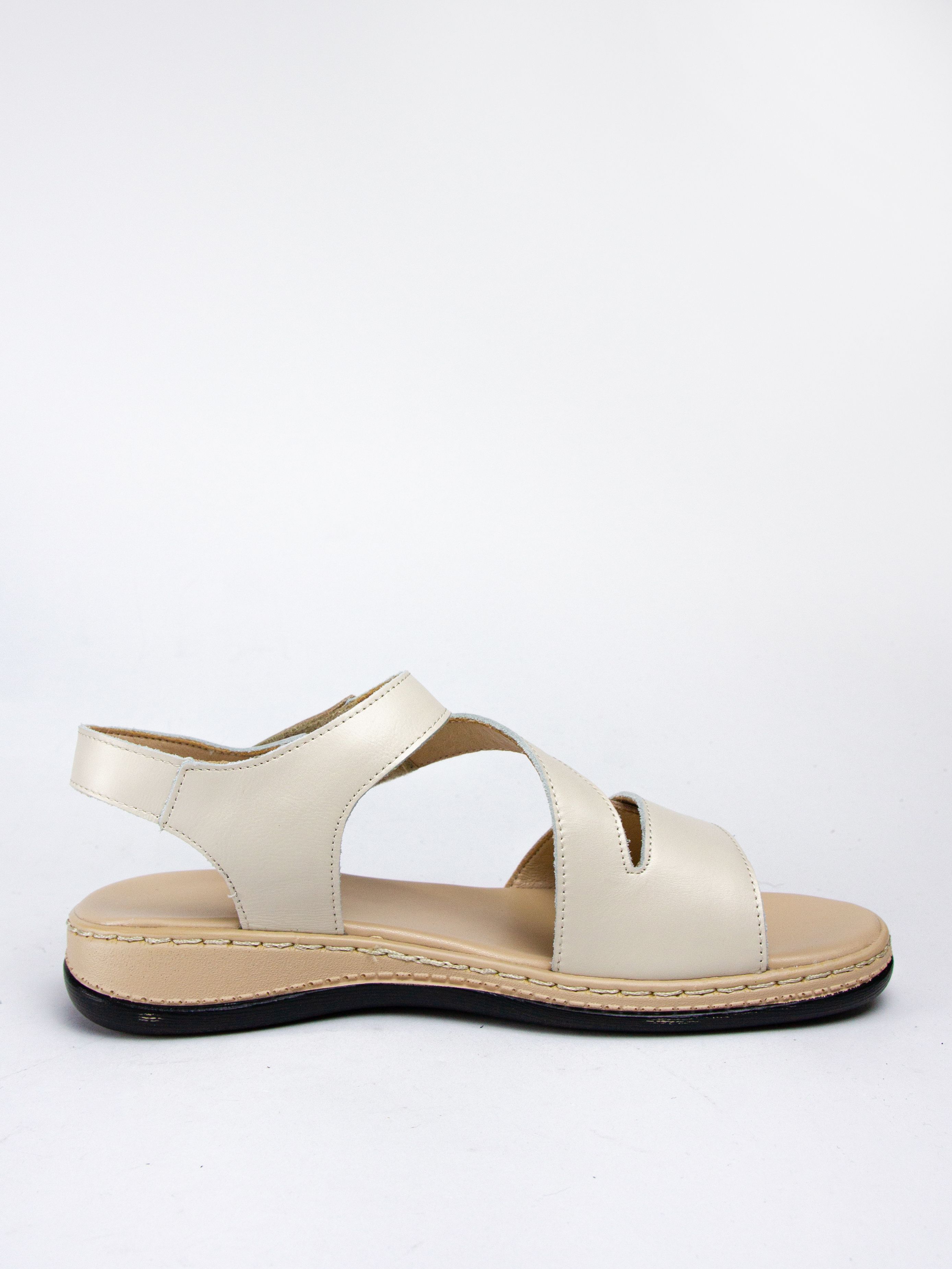 Это женские сандалии из натуральной кожи с подкладкой из искусственной кожи бежевого цвета.