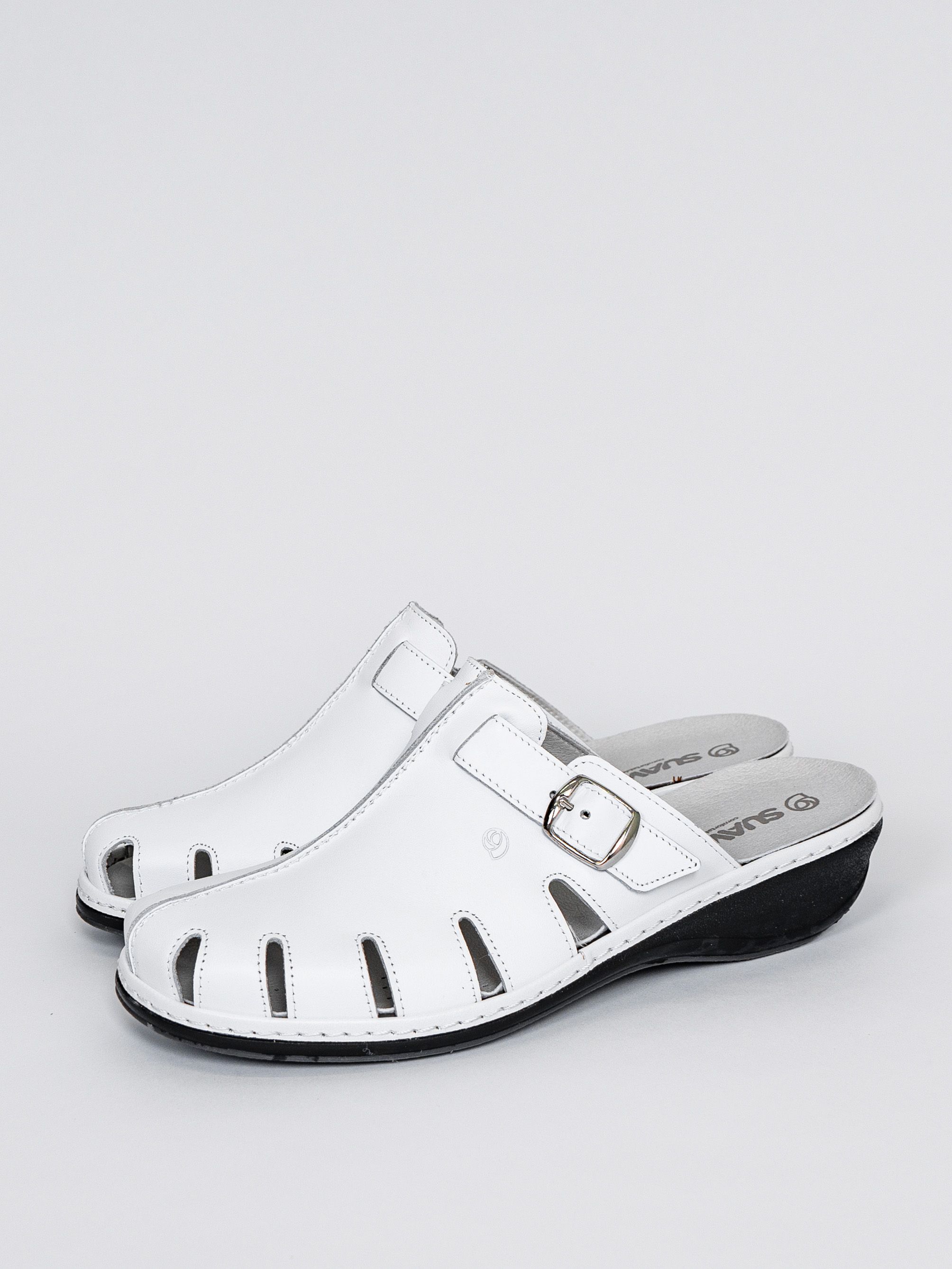 Рекомендуем рассмотреть белые женские сабо от бренда Suave, сочетающие в себе качество, комфорт, простой и современный дизайн.