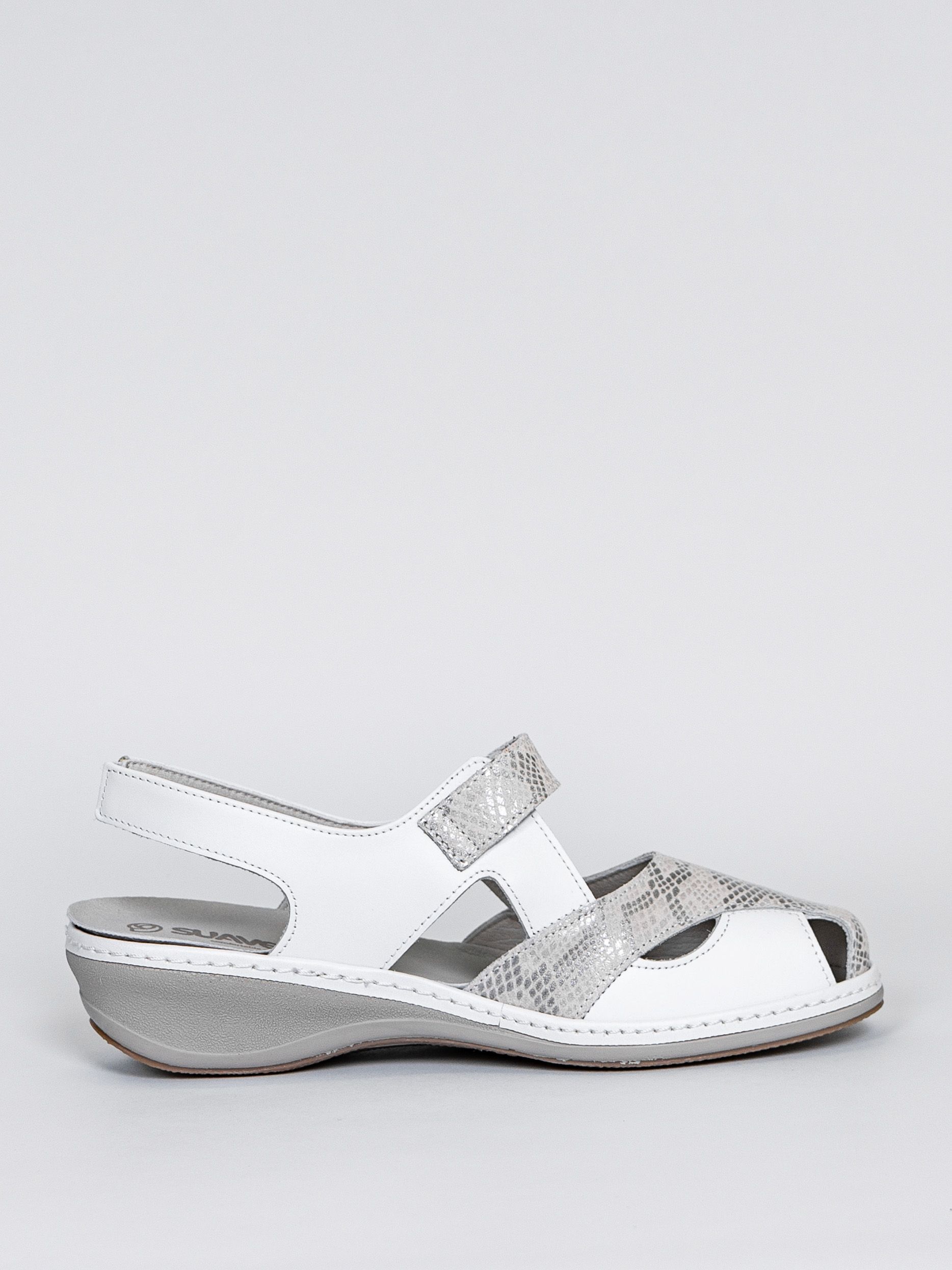 Рекомендуем рассмотреть белые женские босоножки на ремешке с липучкой от бренда Suave, сочетающие в себе качество, комфорт, простой и современный дизайн.