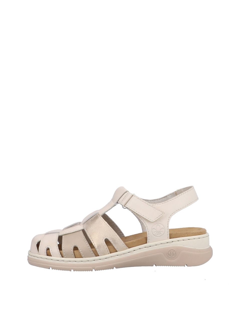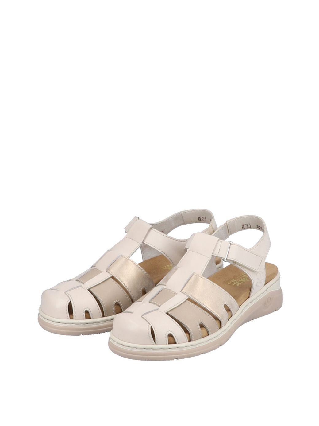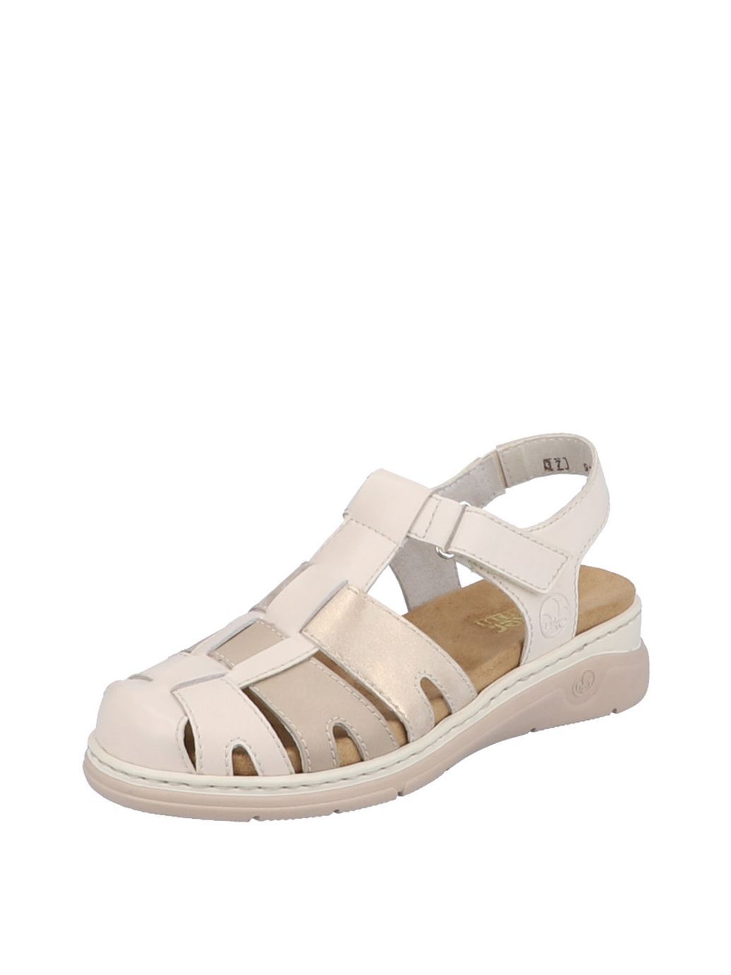 Босоножки женские немецкого бренда Rieker. Верх изготовлен из искусственной и натуральной кожи бежевого цвета. Материал подкладки текстиль. Идеально подойдут на лето и станут отличным завершением к Вашему гардеробу.