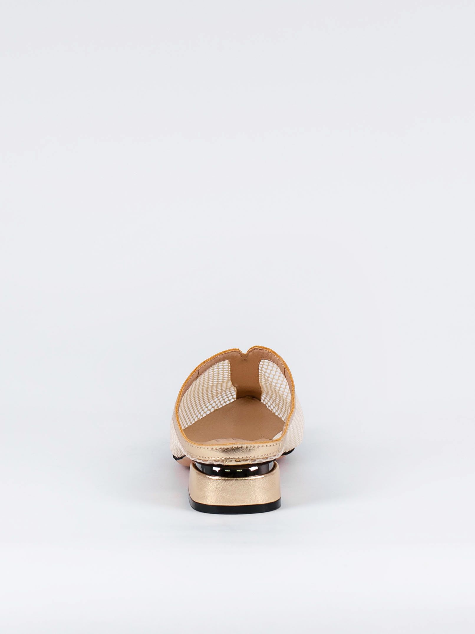 Сабо золотистого цвета сочетаются с разной палитрой одежды и сделают Ваш образ более ярким и привлекательным.