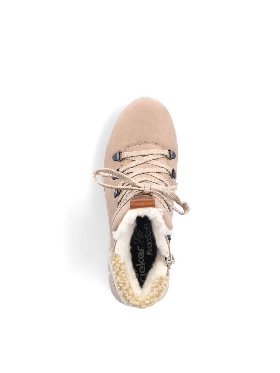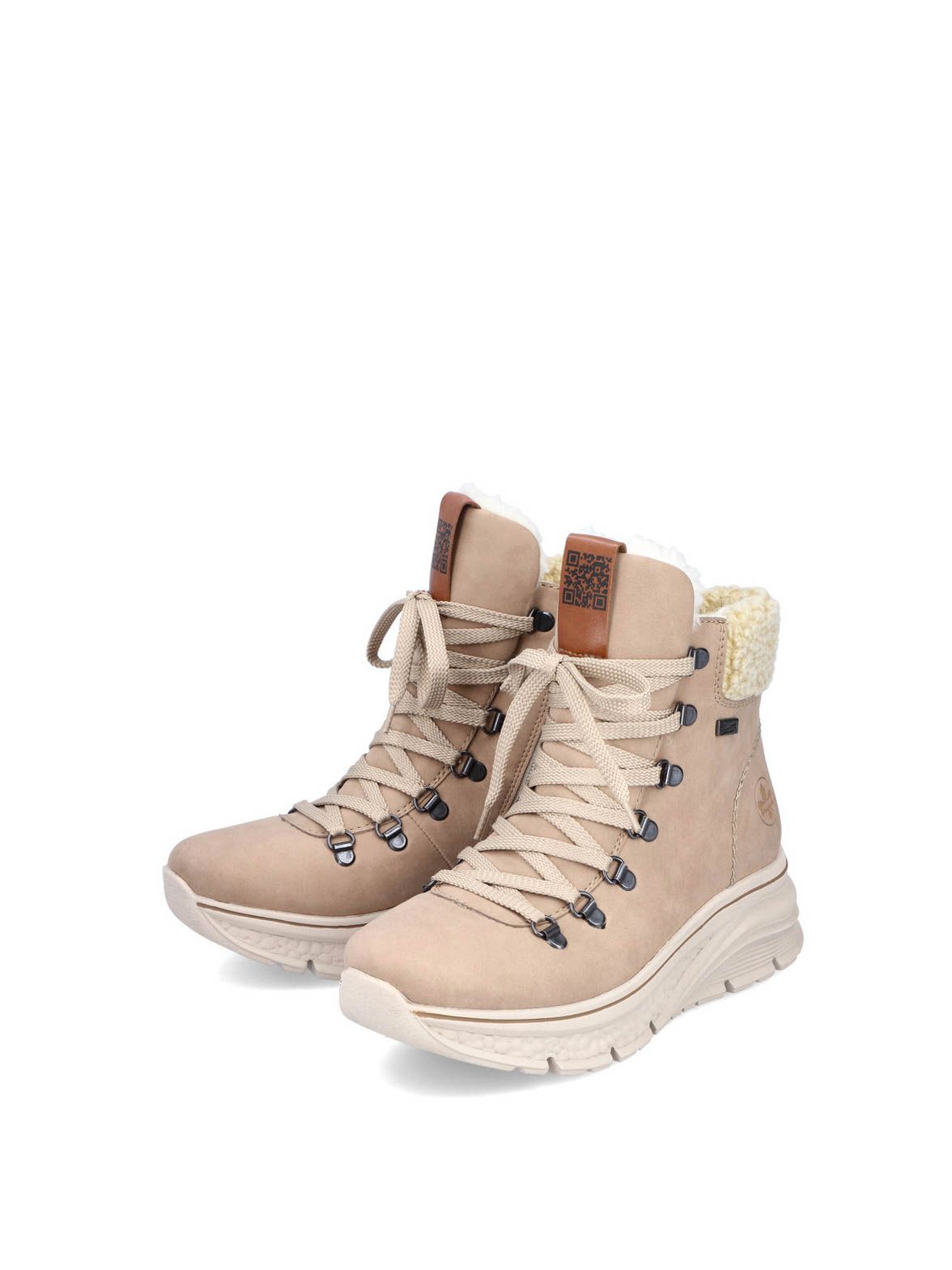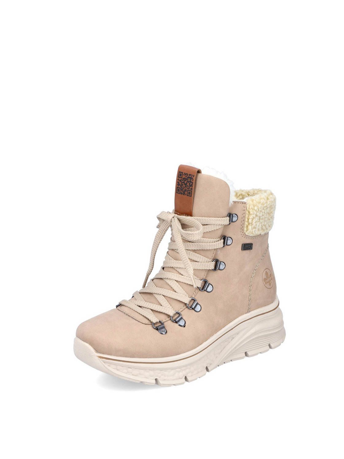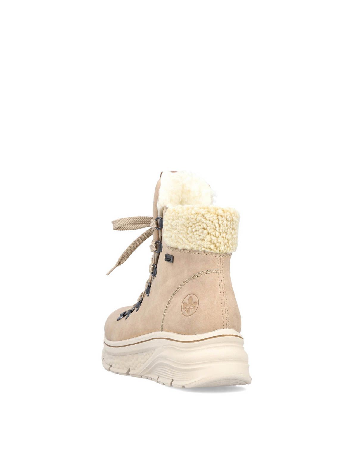 Ботинки женские немецкого бренда Rieker. Верх изготовлен из искусственной кожи и текстильного материала бежевого цвета. Материал подкладки искусственная шерсть с TEX-мембраной. Идеально подойдут на зиму и станут отличным завершением к Вашему гардеробу.