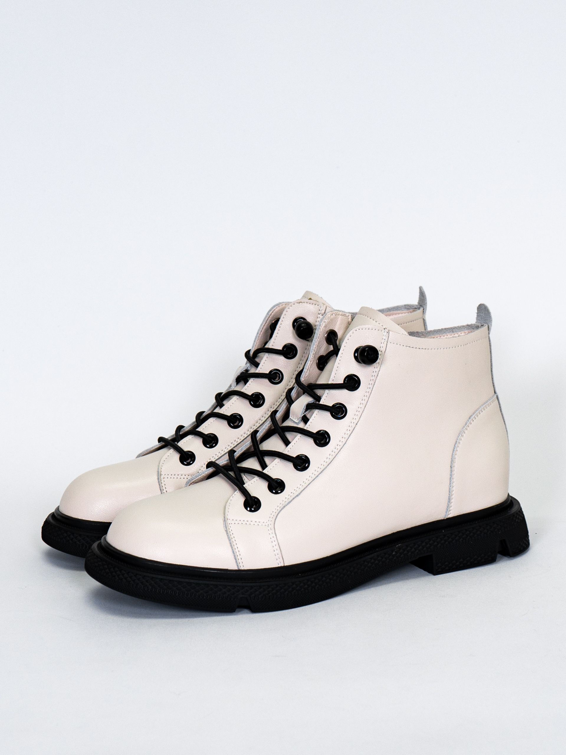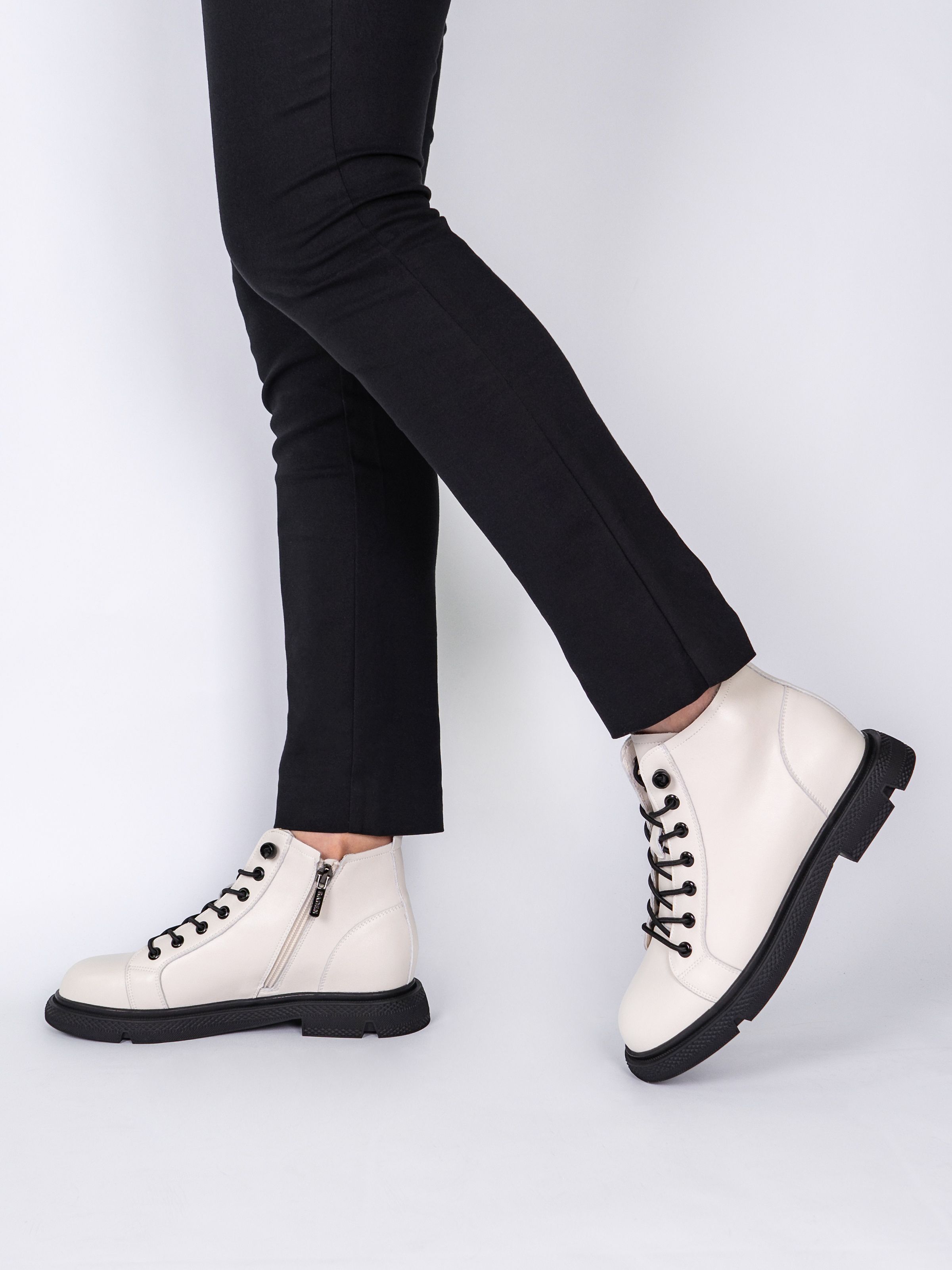 Дизайн в классическом стиле и белом цвете позволяют сочетать эти ботинки с различными нарядами, от деловых до casual.