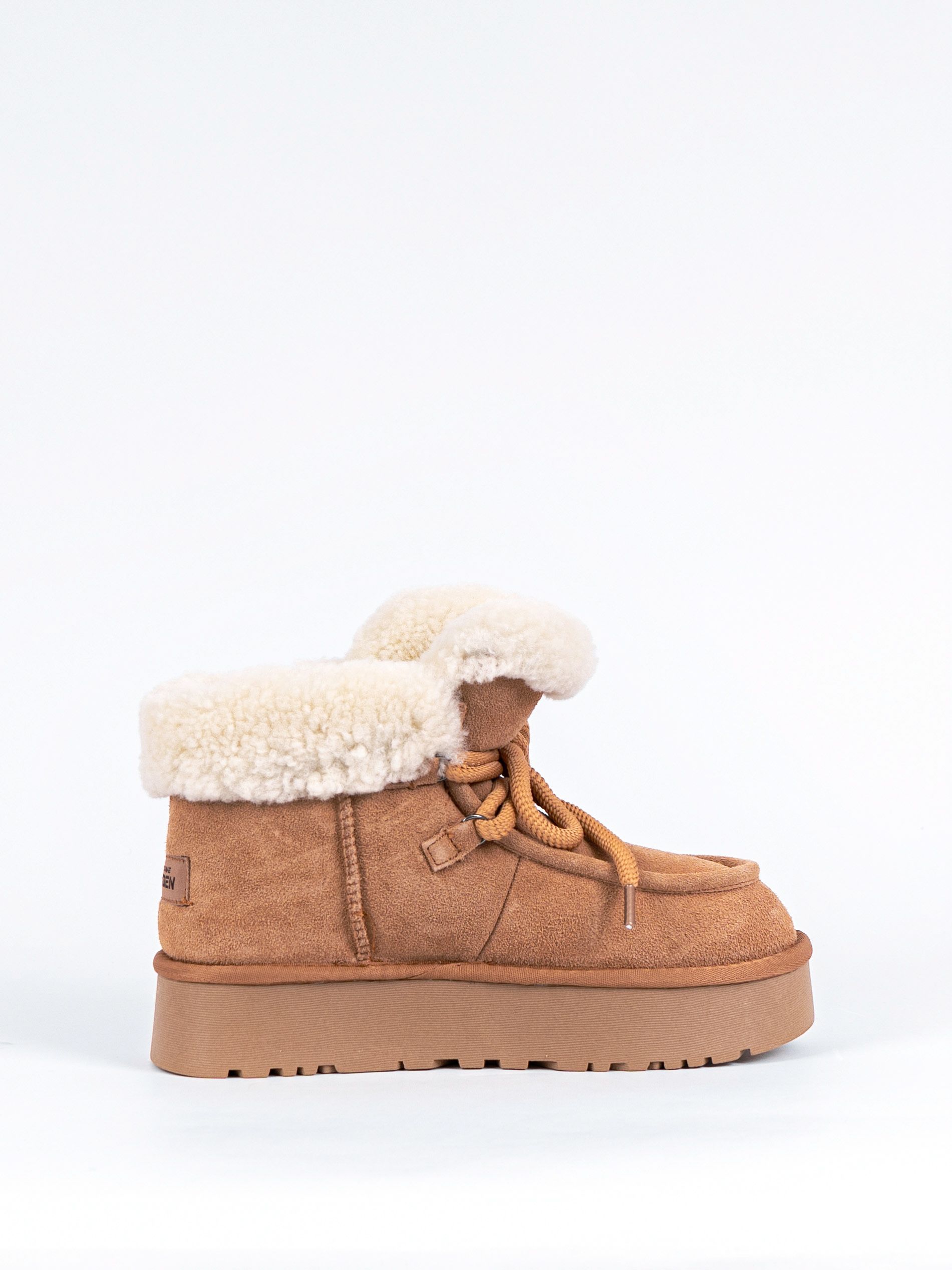 Рыжие угги на шнурках сочетаются с разной палитрой одежды и сделают Ваш образ более ярким и привлекательным.