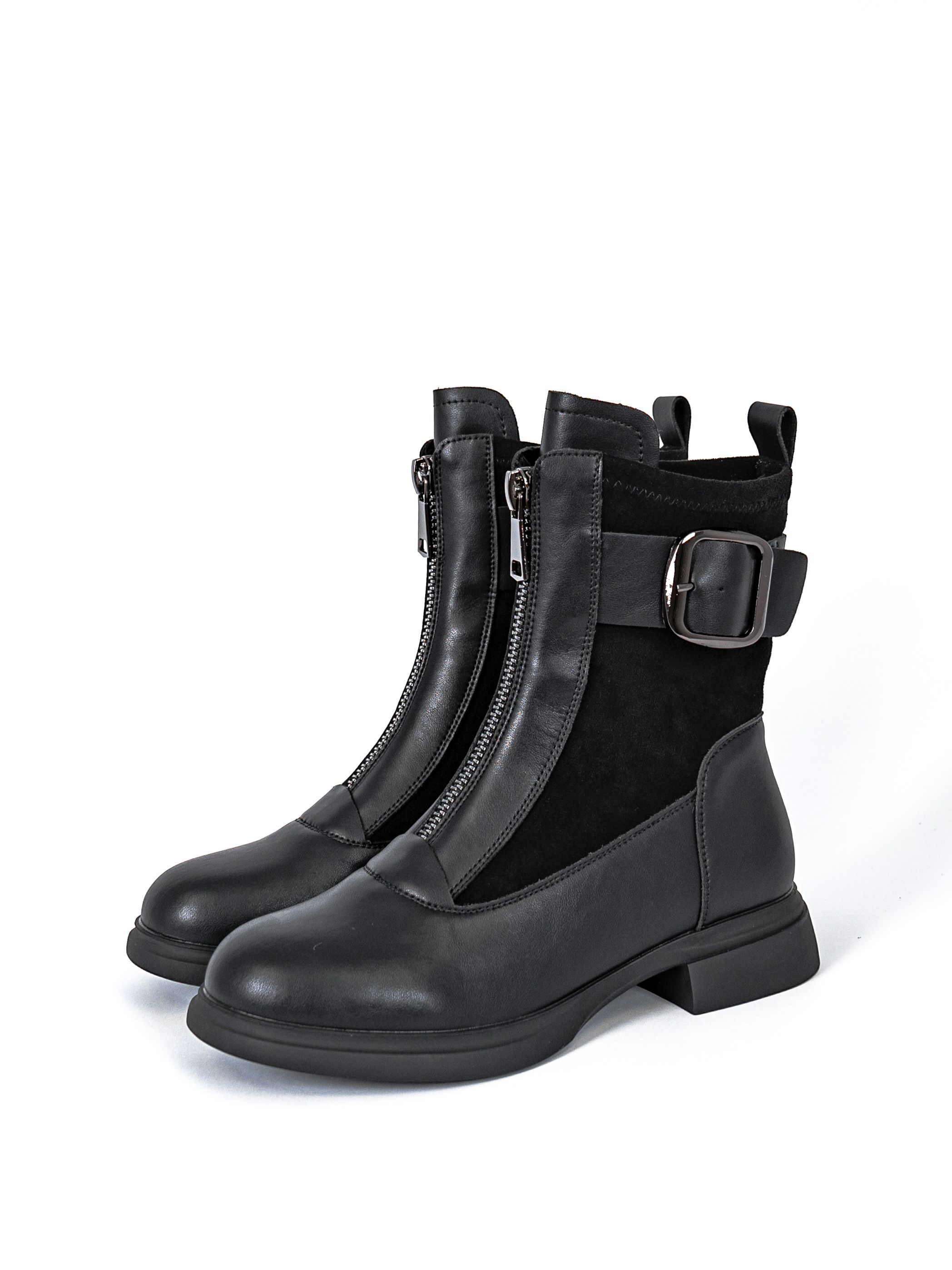 Подошва выполнена из технологичных полимерных материалов, что позволяет хорошо амортизировать удары при ходьбе и сохранять тепло. Ботинки на низком каблуке высотой 3,5 см не позволят стопе уставать в течении всего дня.