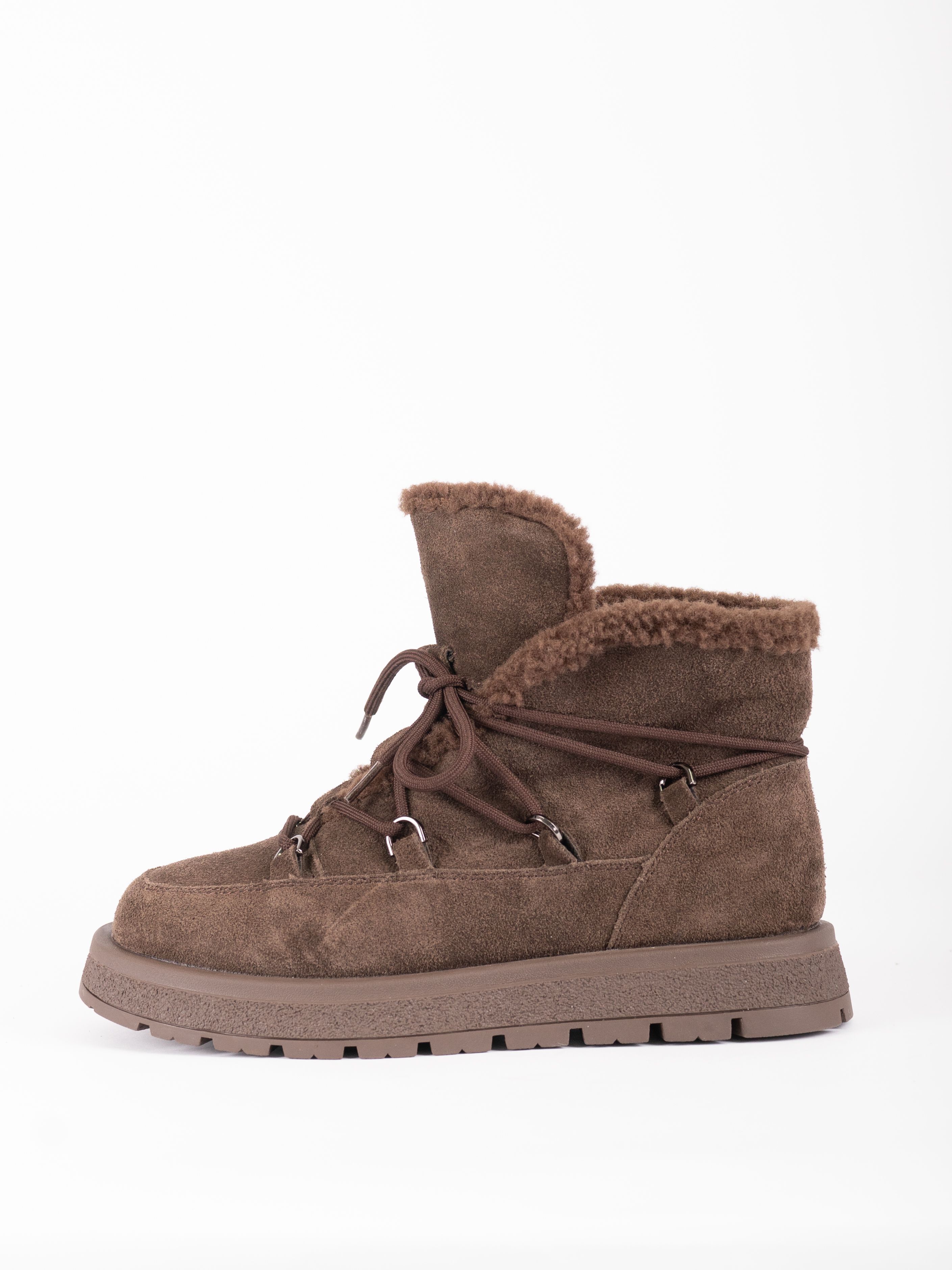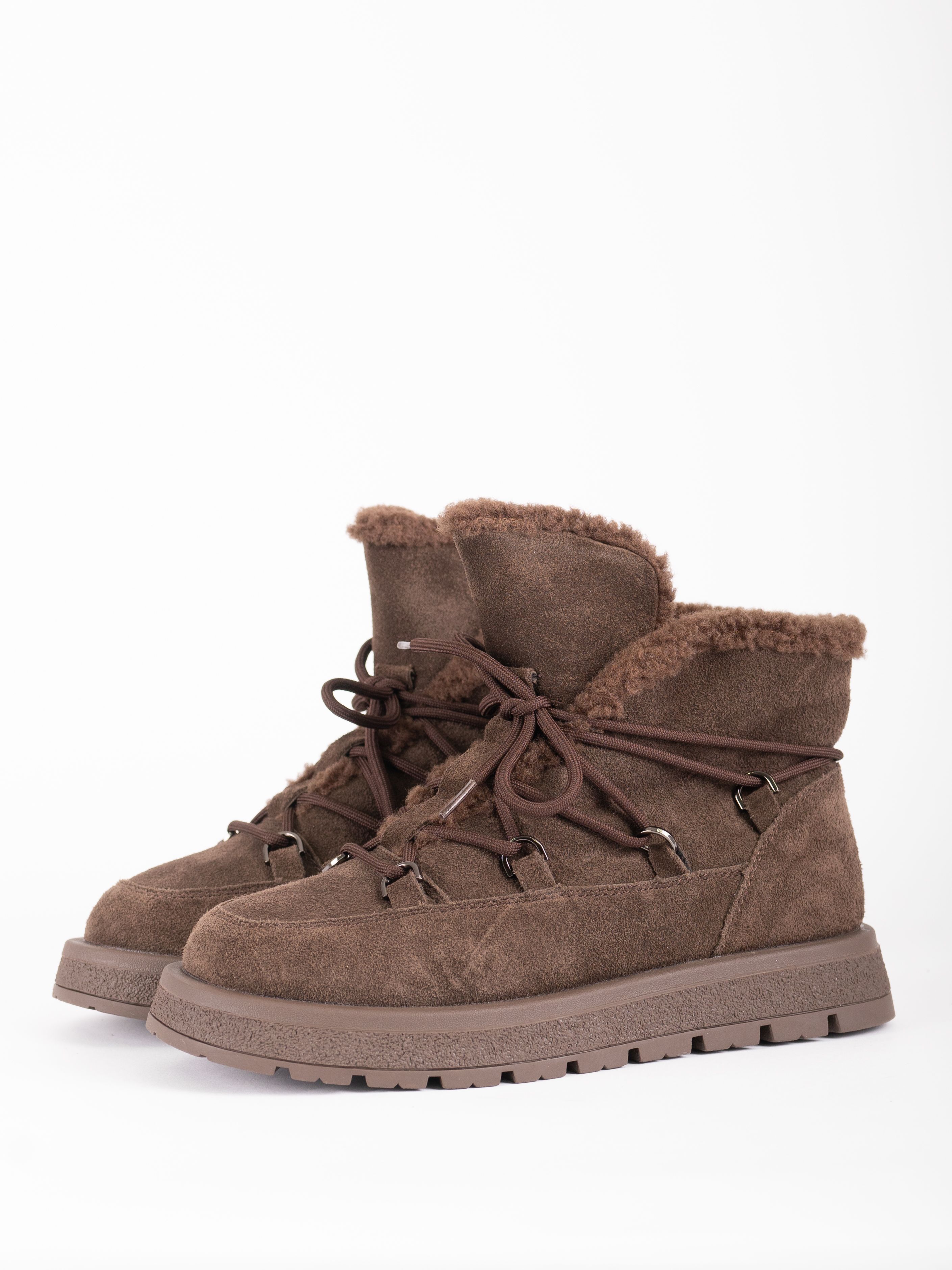 Подошва выполнена из технологичных полимерных материалов, что позволяет хорошо сохранять тепло, поэтому стильные ботинки будут удобны для продолжительной носки.