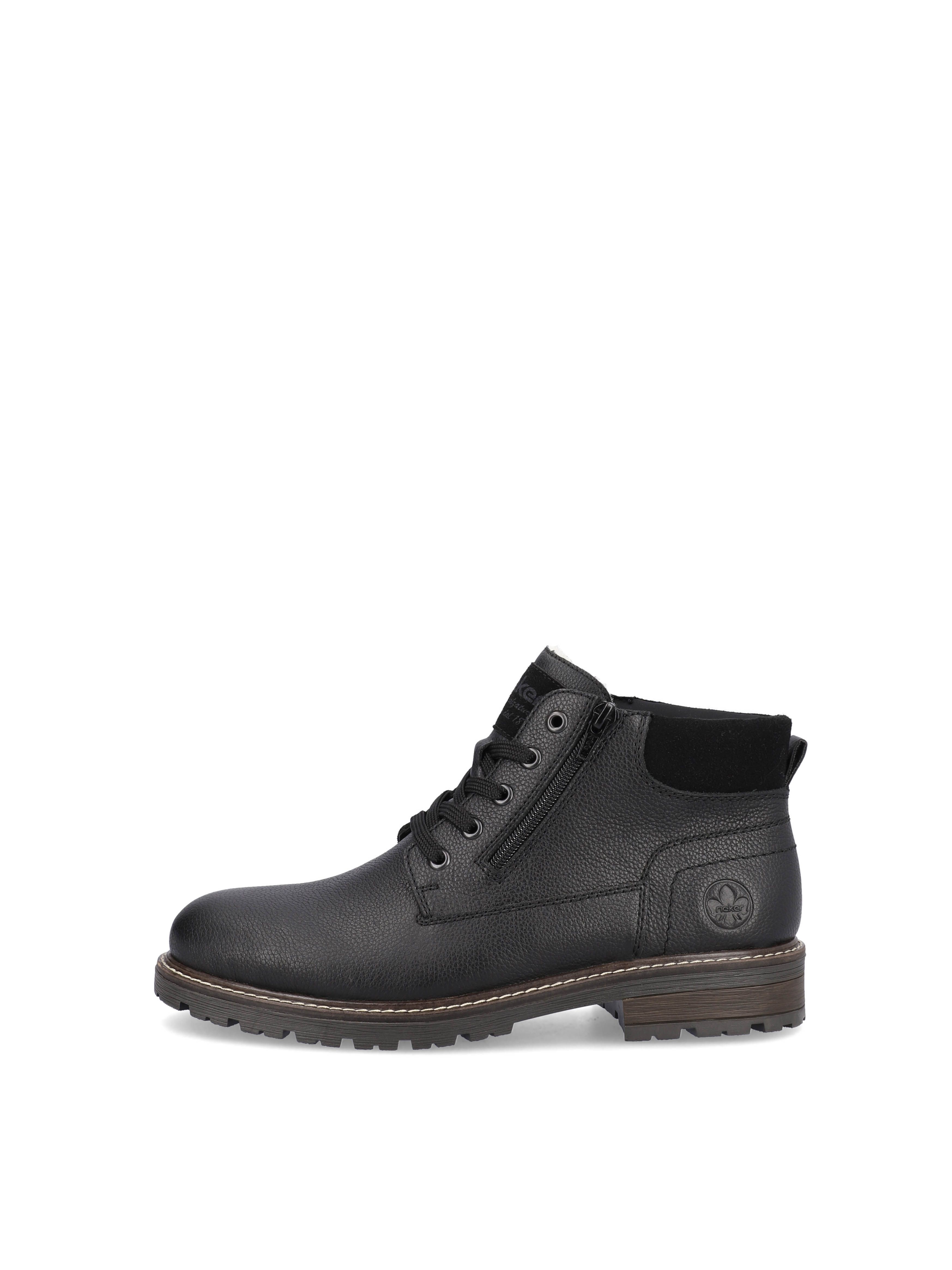Рекомендуем рассмотреть черные мужские ботинки на молнии и шнурках от немецкого бренда Rieker, сочетающие в себе качество, комфорт, простой и современный дизайн.