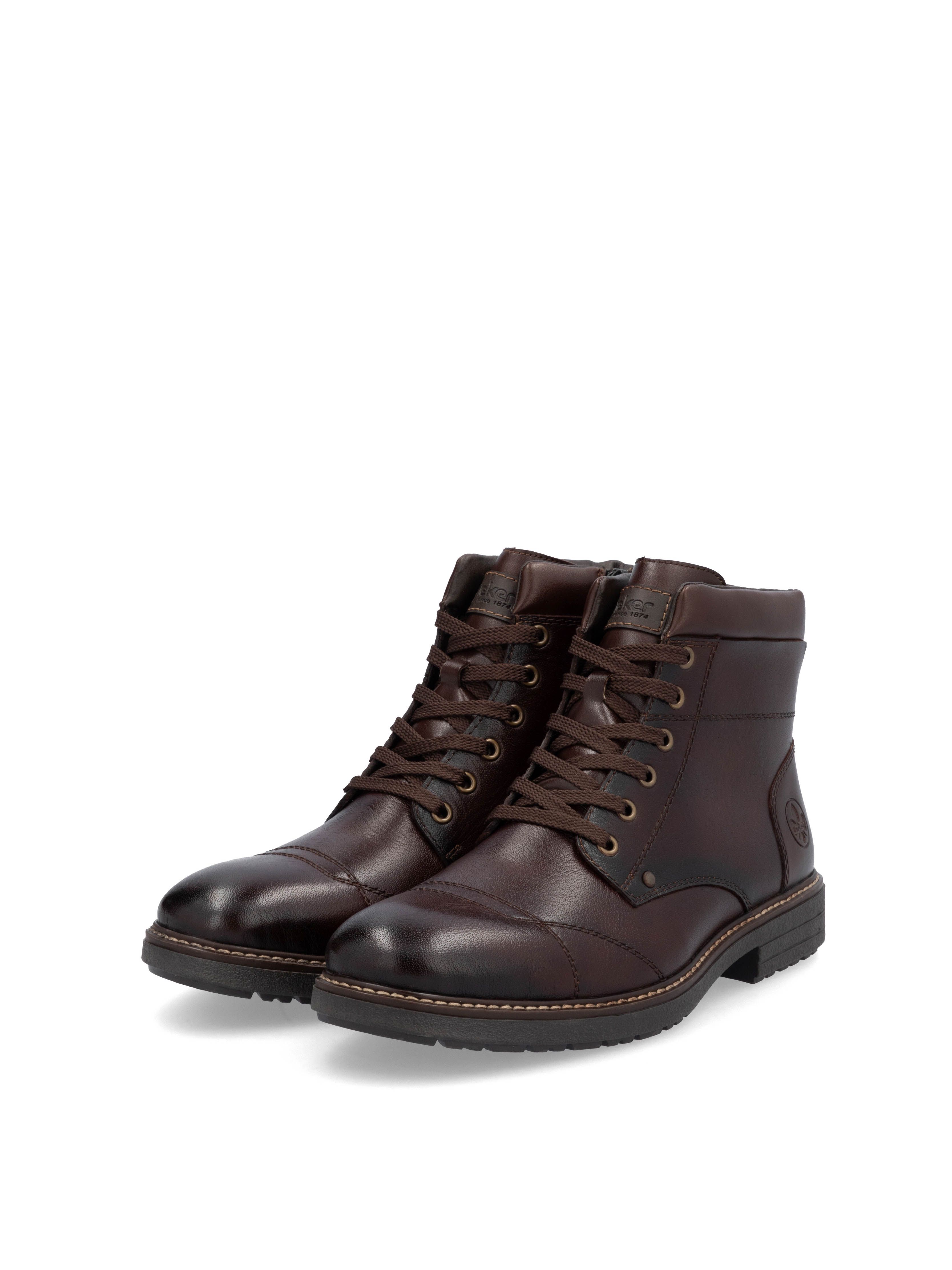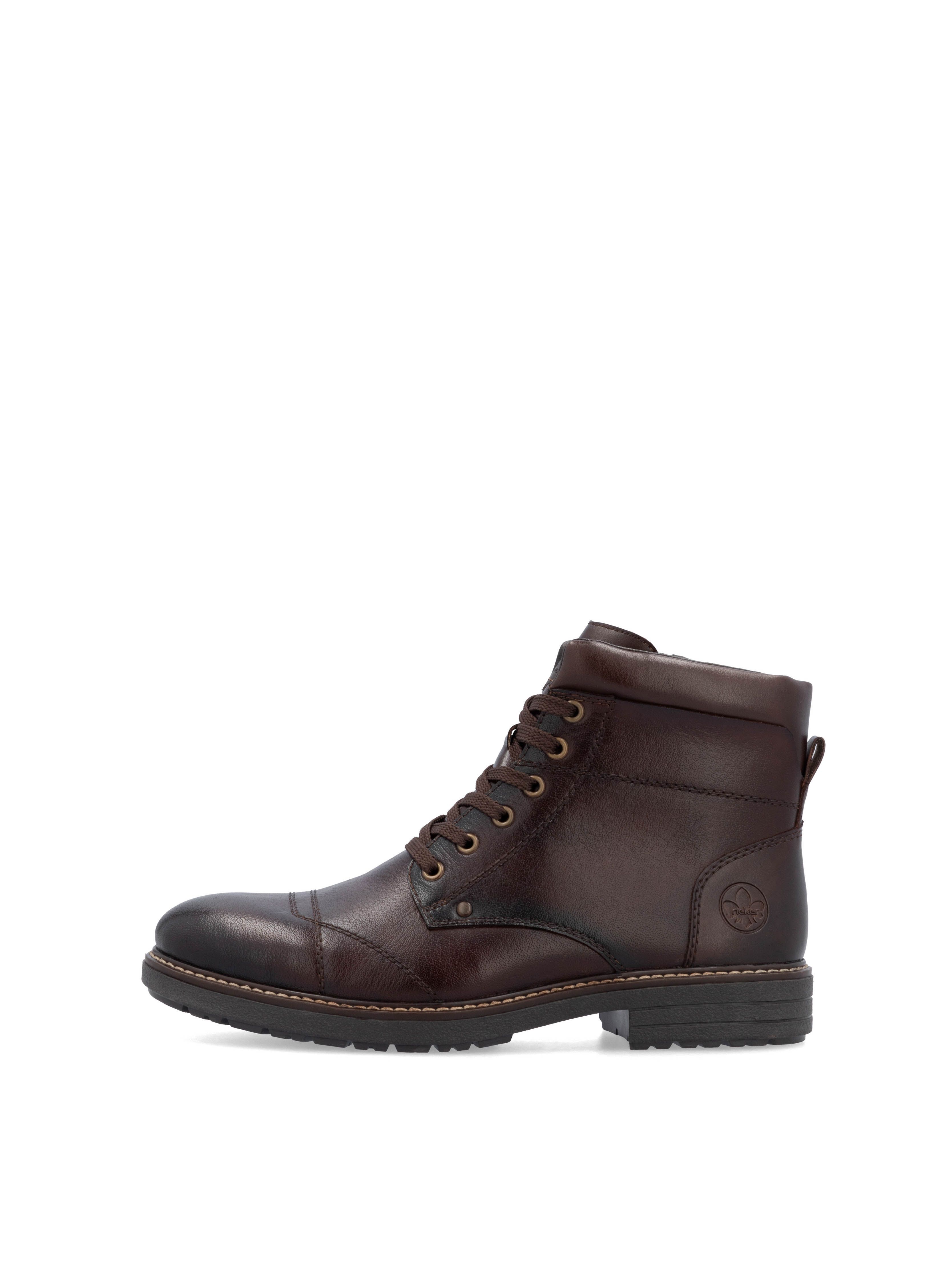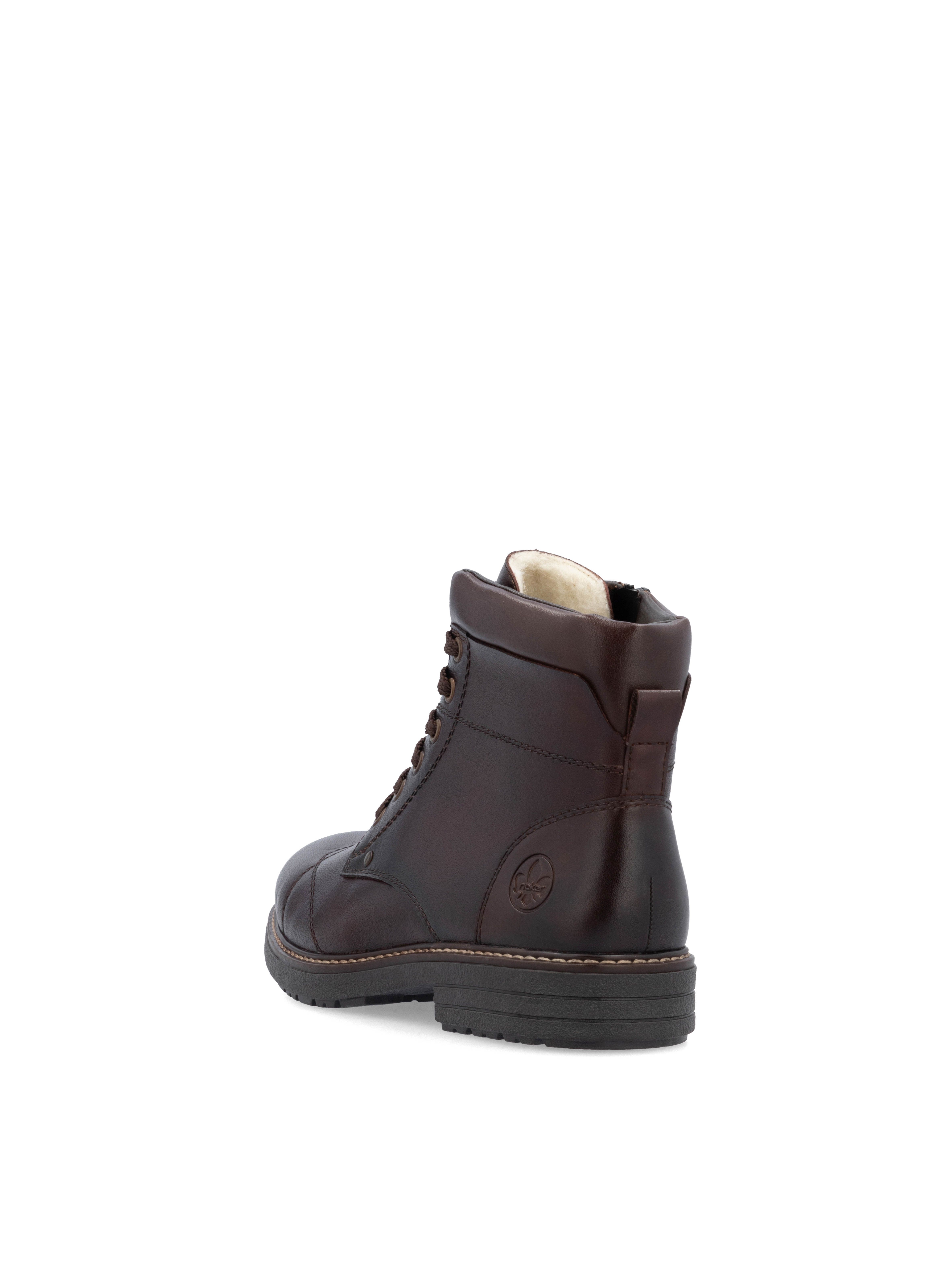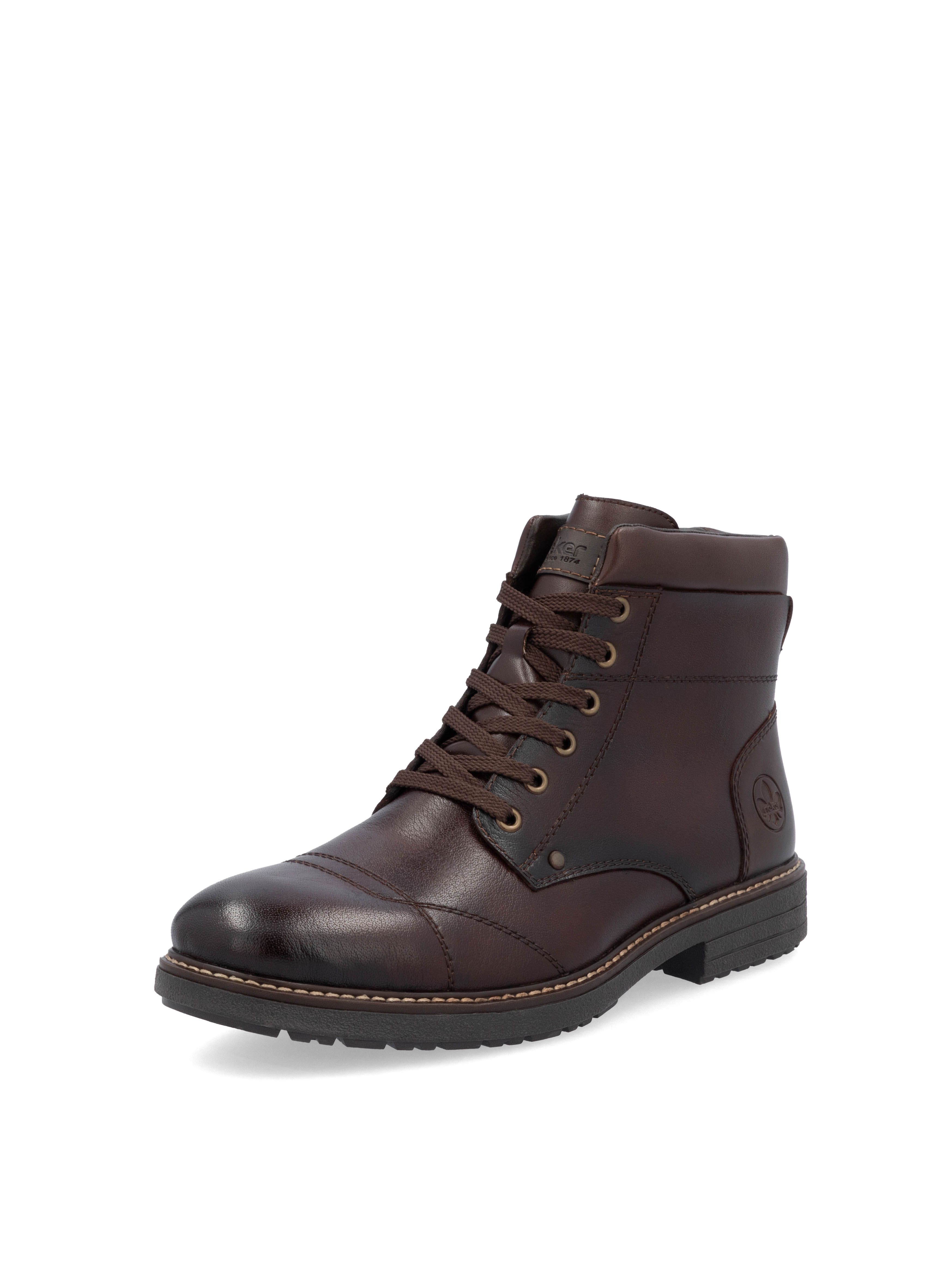 Рекомендуем рассмотреть коричневые мужские ботинки на молнии и шнурках от немецкого бренда Rieker, сочетающие в себе качество, комфорт, простой и современный дизайн.