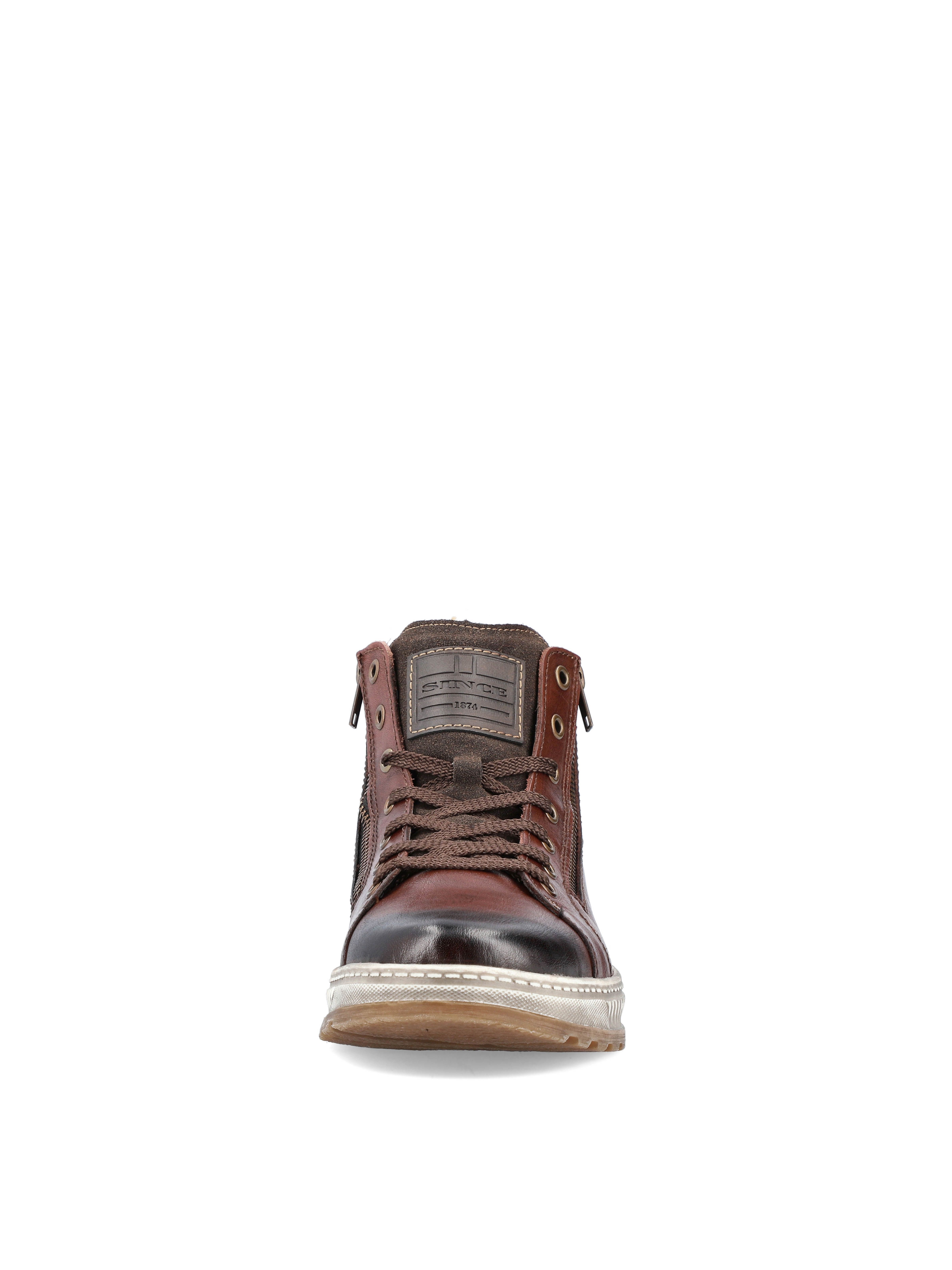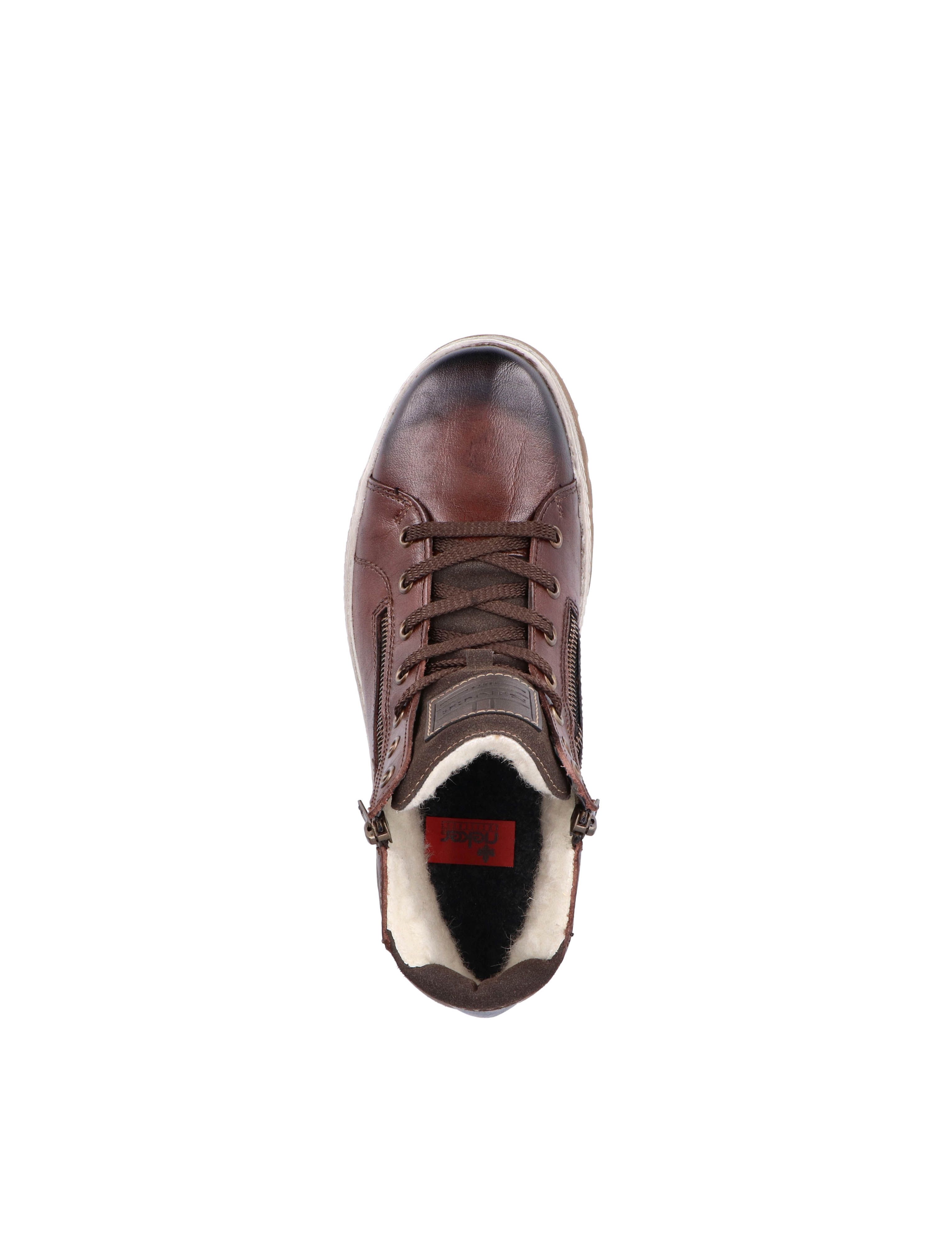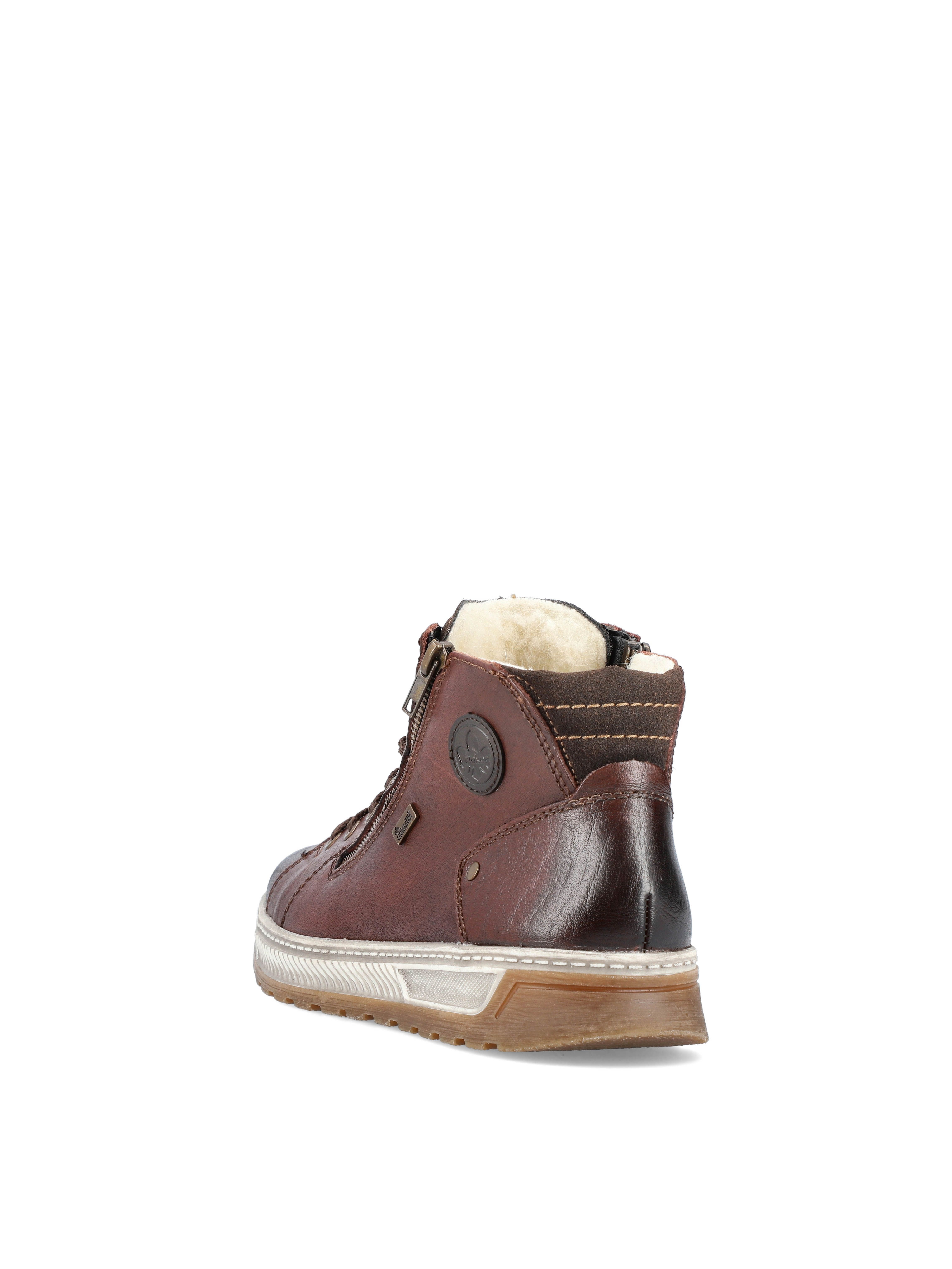 Рекомендуем рассмотреть коричневые мужские ботинки на молнии и шнурках от немецкого бренда Rieker, сочетающие в себе качество, комфорт, простой и современный дизайн.