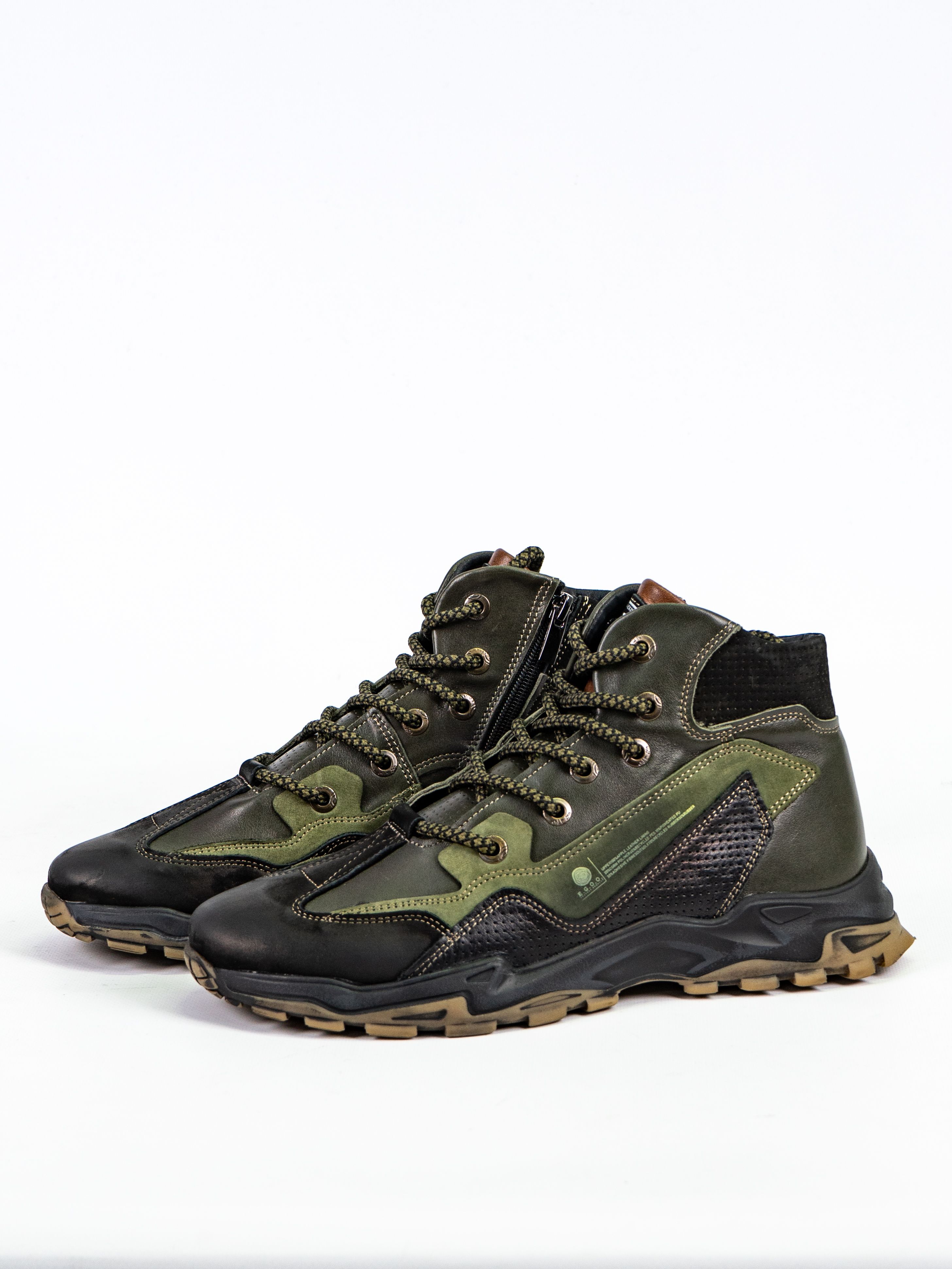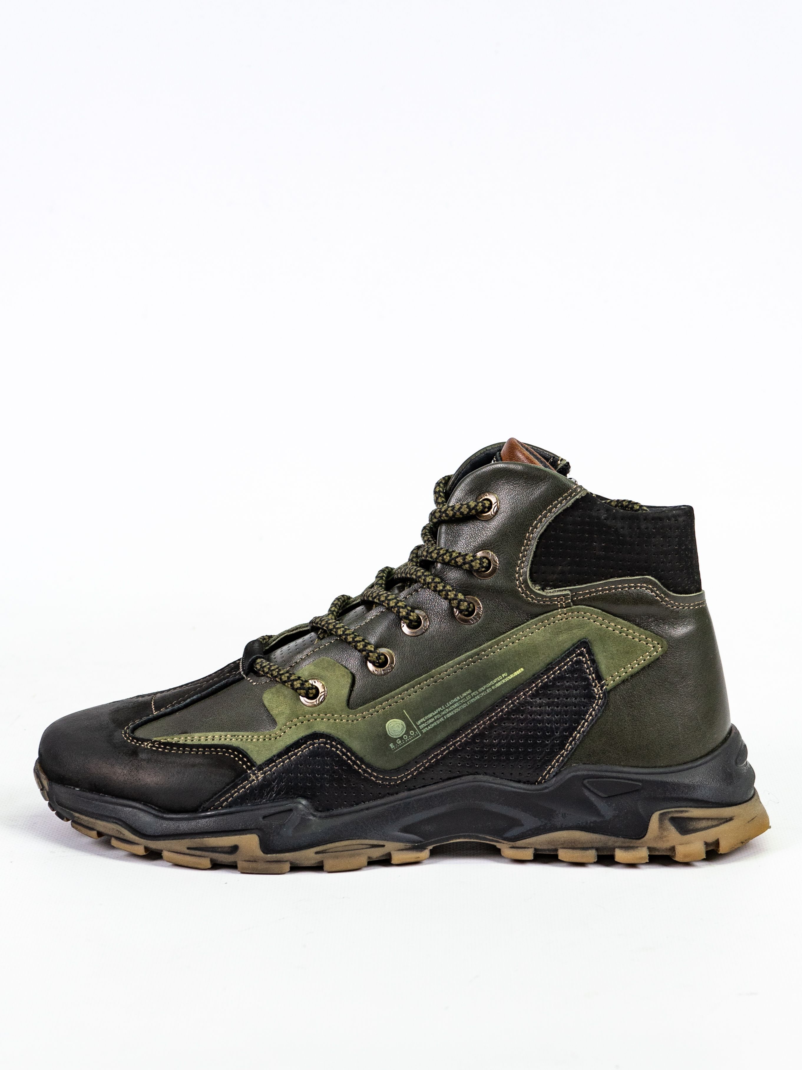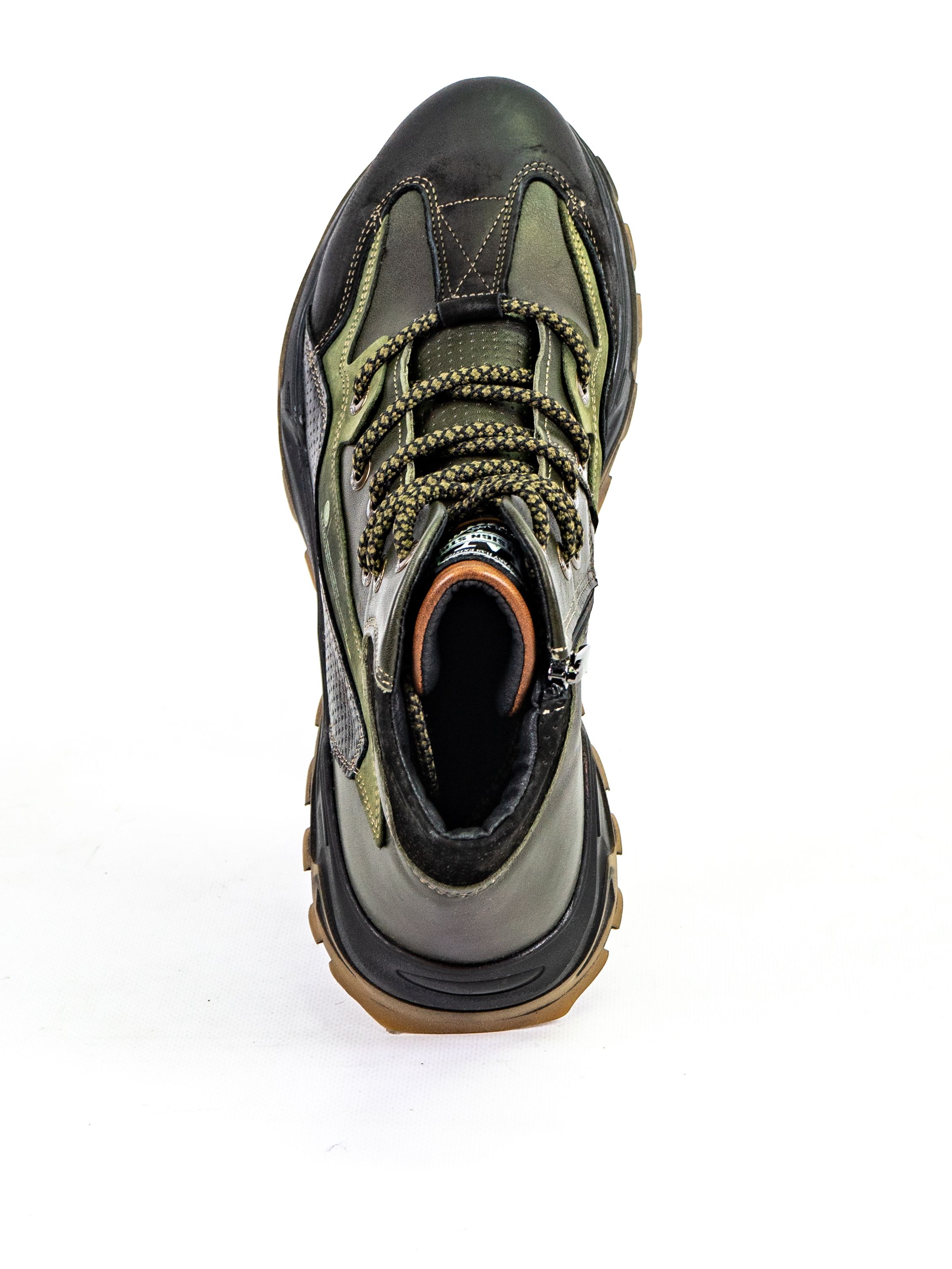 Ботинки оснащены шнуровкой для индивидуальной регулировки посадки и рельефной подошвой для надежного сцепления с поверхностью. Зеленый цвет делает их универсальным выбором для любого гардероба.