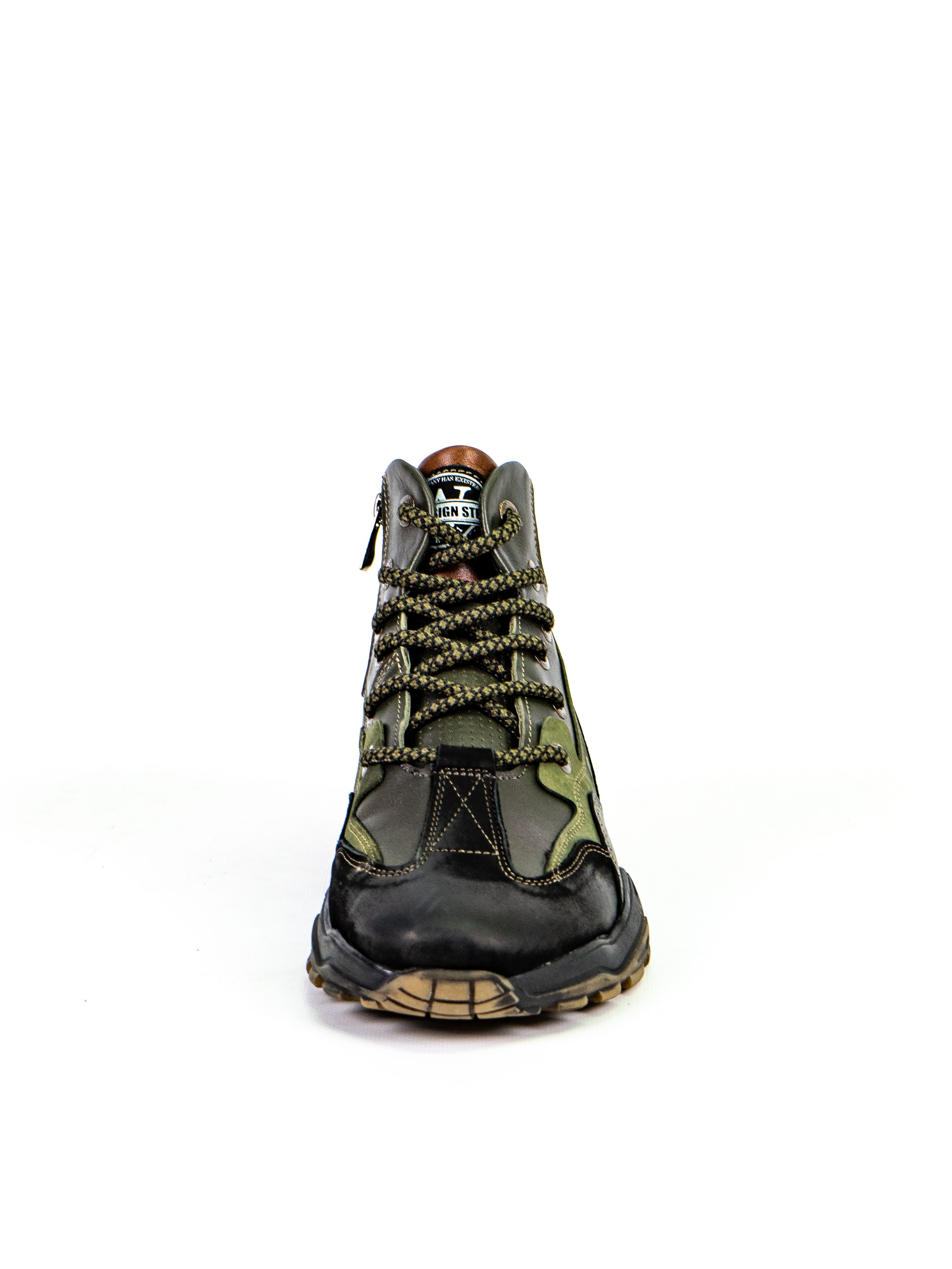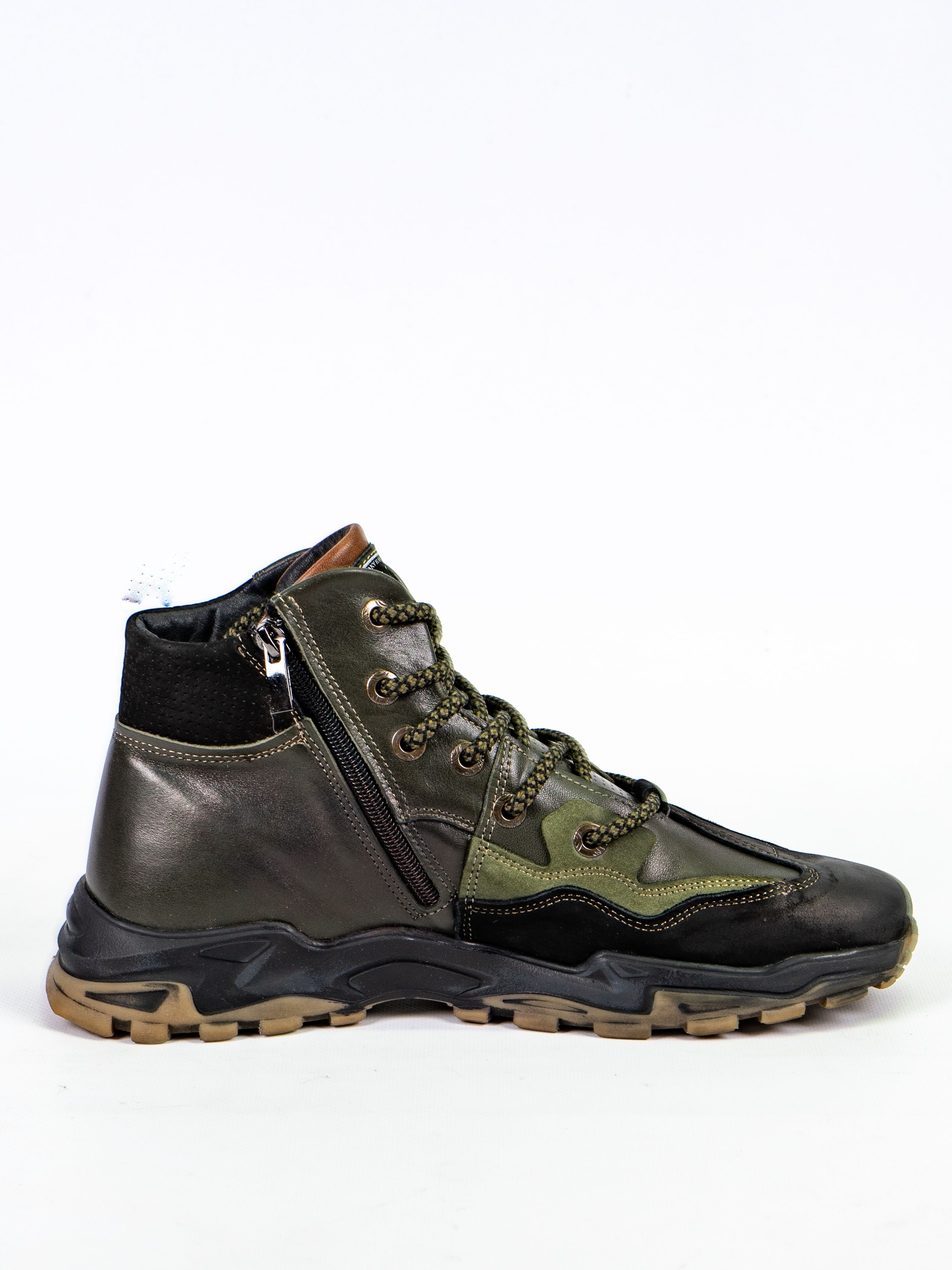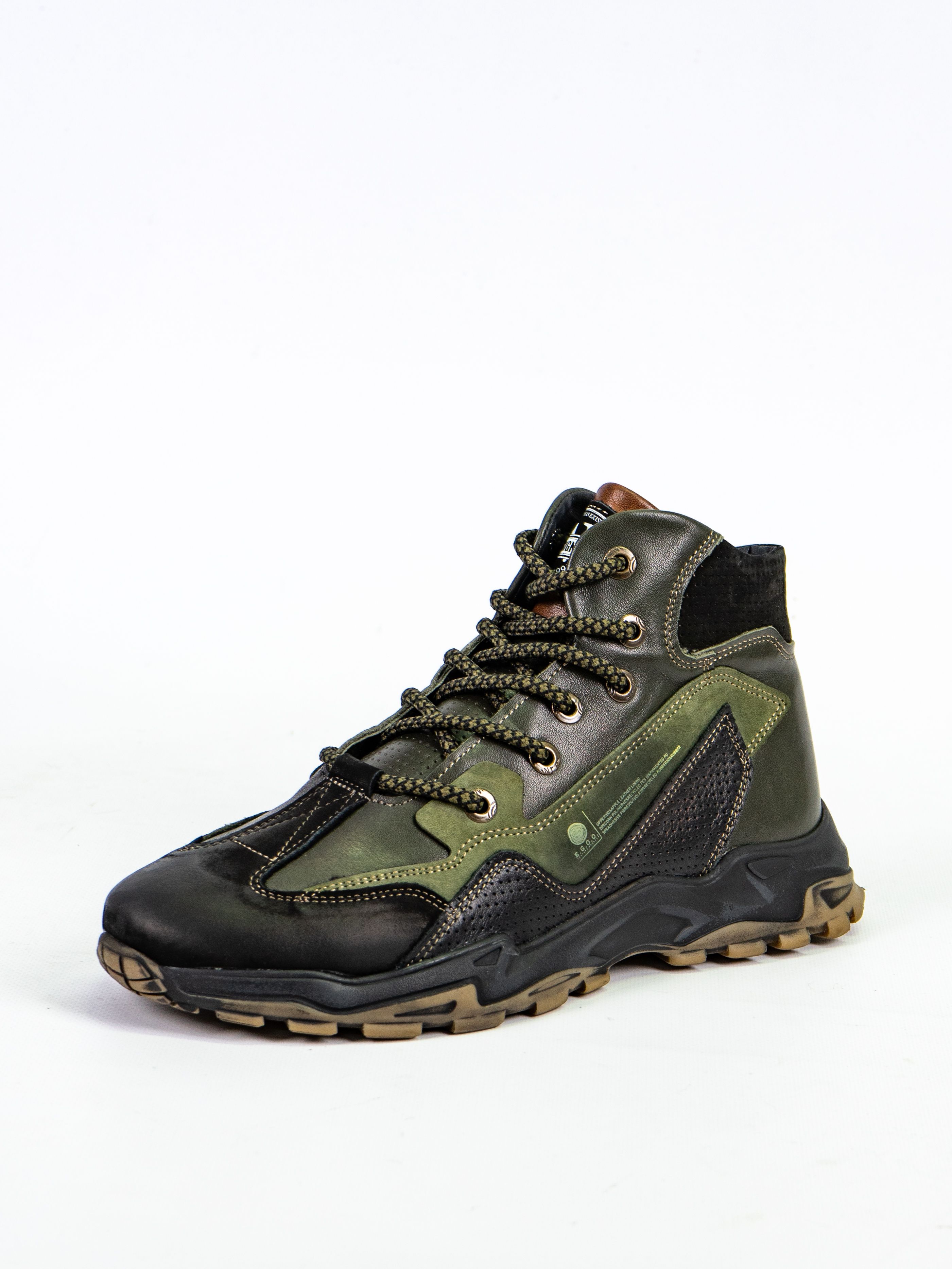 Ботинки оснащены шнуровкой для индивидуальной регулировки посадки и рельефной подошвой для надежного сцепления с поверхностью. Зеленый цвет делает их универсальным выбором для любого гардероба.