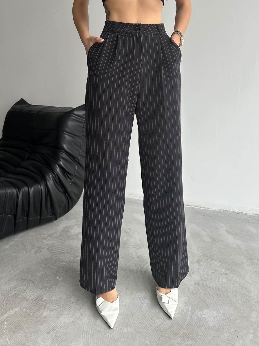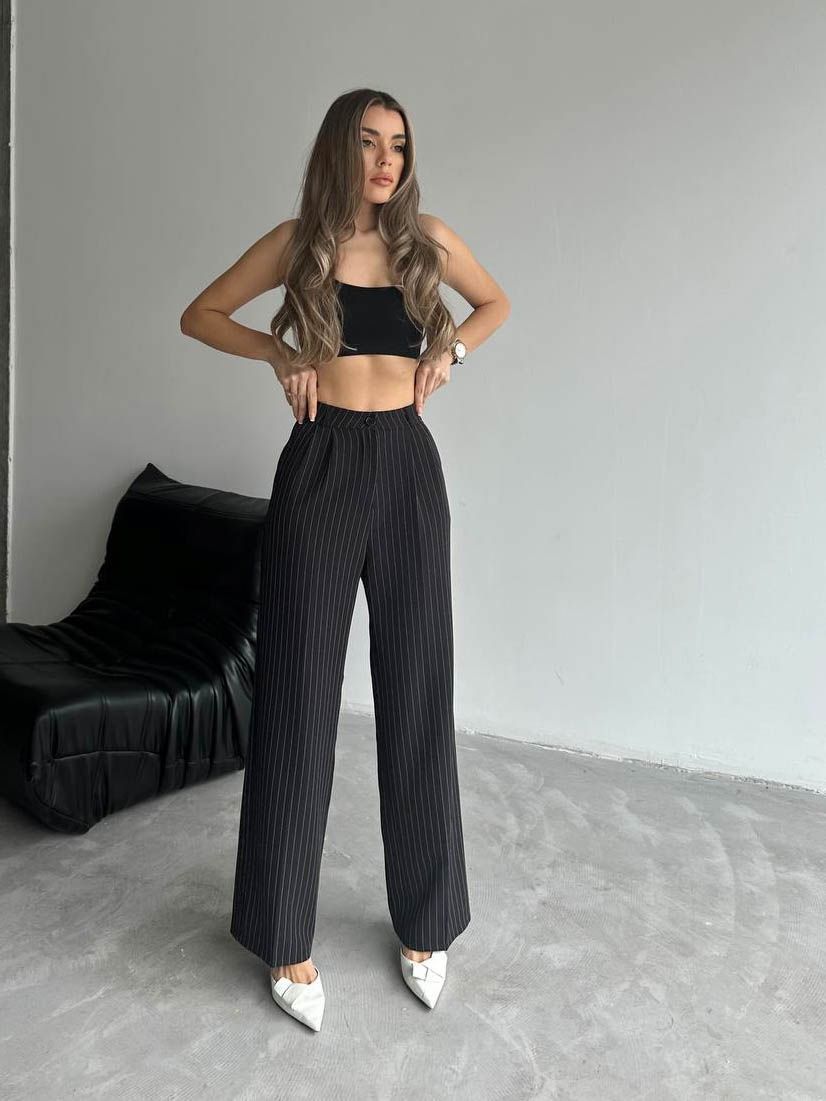 Стильные женские классические брюки в полоску прямые не зауженная модель прекрасная основа для любого гардероба. Можно носить как повседневный базовый офисный вариант, на работу, на учебу, деловую встречу. Прямой крой делает образ более подтянутым и стройным. Комфортная длина не стесняет движения и подходит для любого роста и фигуры. Штаны для женщин с высокой талией, красиво подчеркивают силуэт, прекрасно сочетаются с туфлями на каблуке или плоской подошве, кроссовками, ботинками на шнуровке, сапогами.
