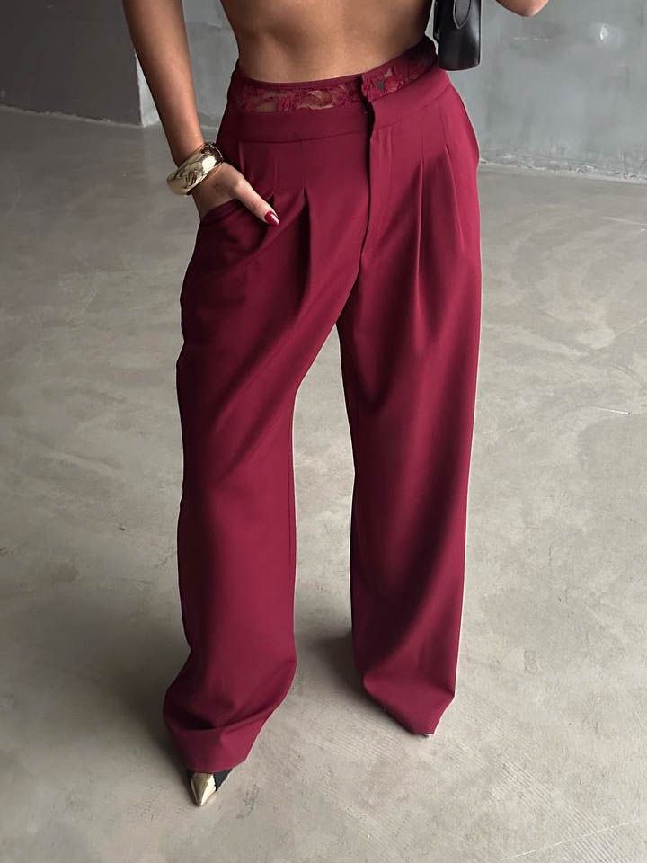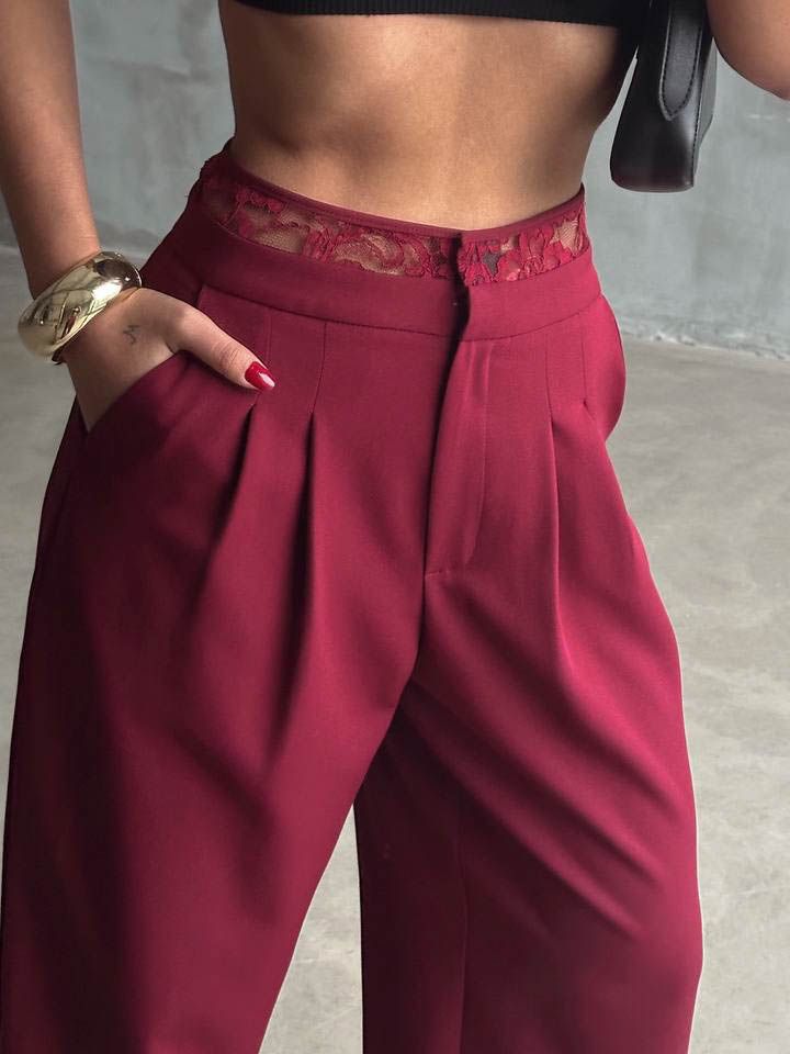 Элегантные женские брюки палаццо с высокой посадкой визуально делают живот более плоским. Особую изюминку этому изделию придает кружевной верх. Подойдут для любого времени года, как осенний или зимний костюм весенний, в них будет комфортно и летним прохладным вечером. Удобно носить под любую верхнюю одежду, сочетать с блузкой, майкой, футболкой, под пиджак. Прямой крой, застегиваются на молнию и пуговицу, удобные боковые карманы прекрасно дополняют образ. Штаны выполнены из качественного материала, производство Турция, аккуратные швы, ткань мягкая, приятная, абсолютно не имеет запаха, держит форму и не требует сложного ухода.
