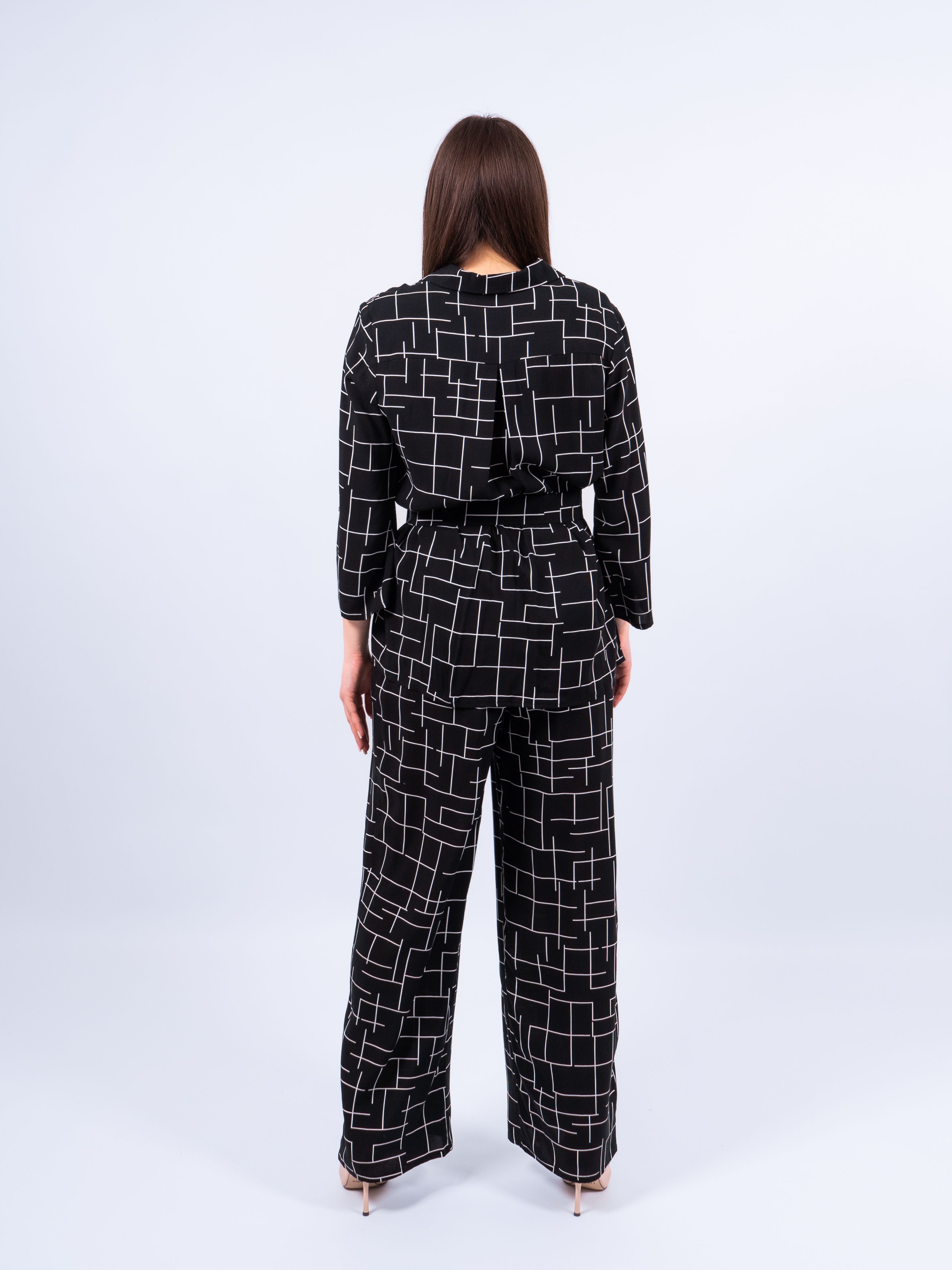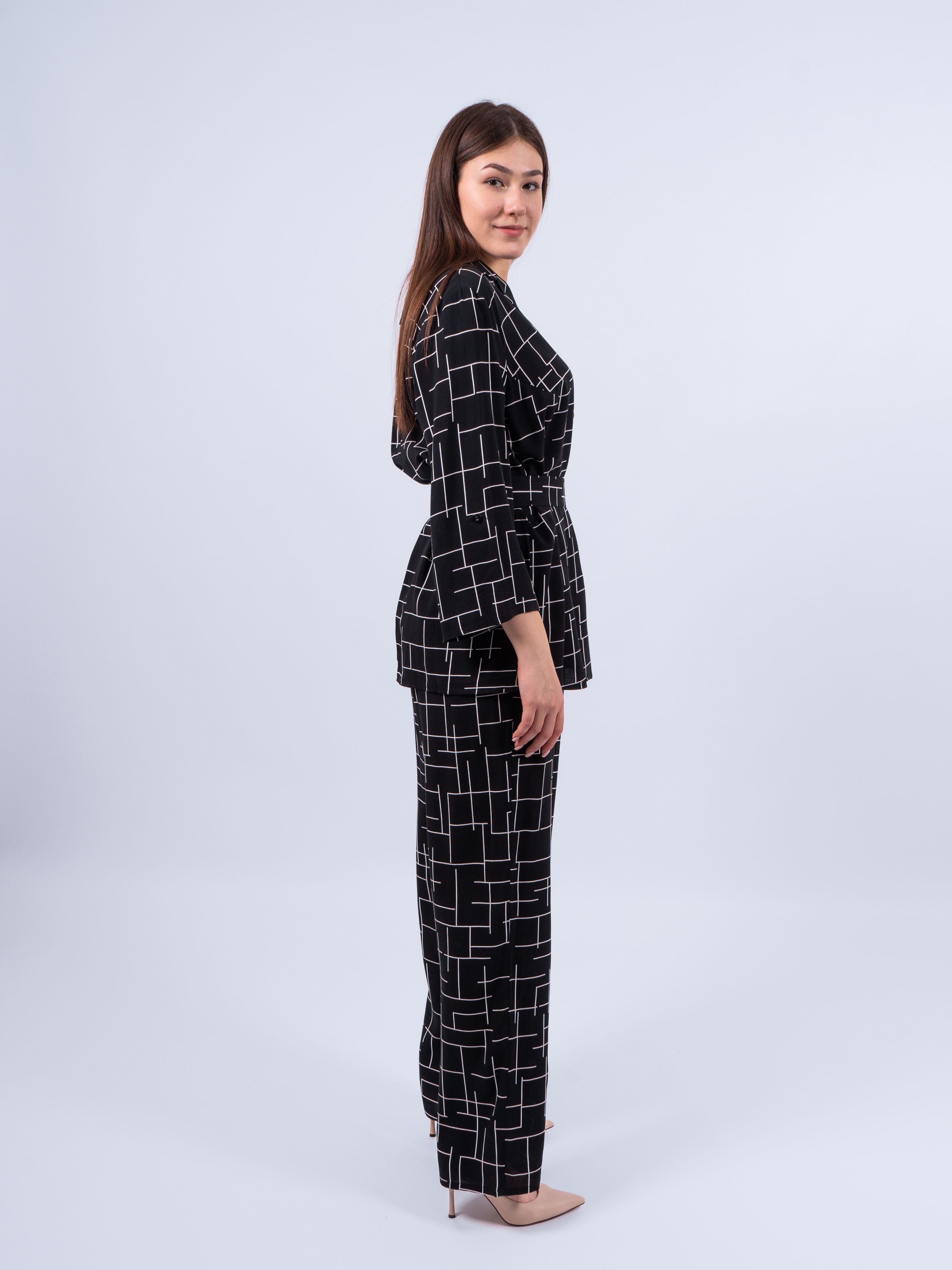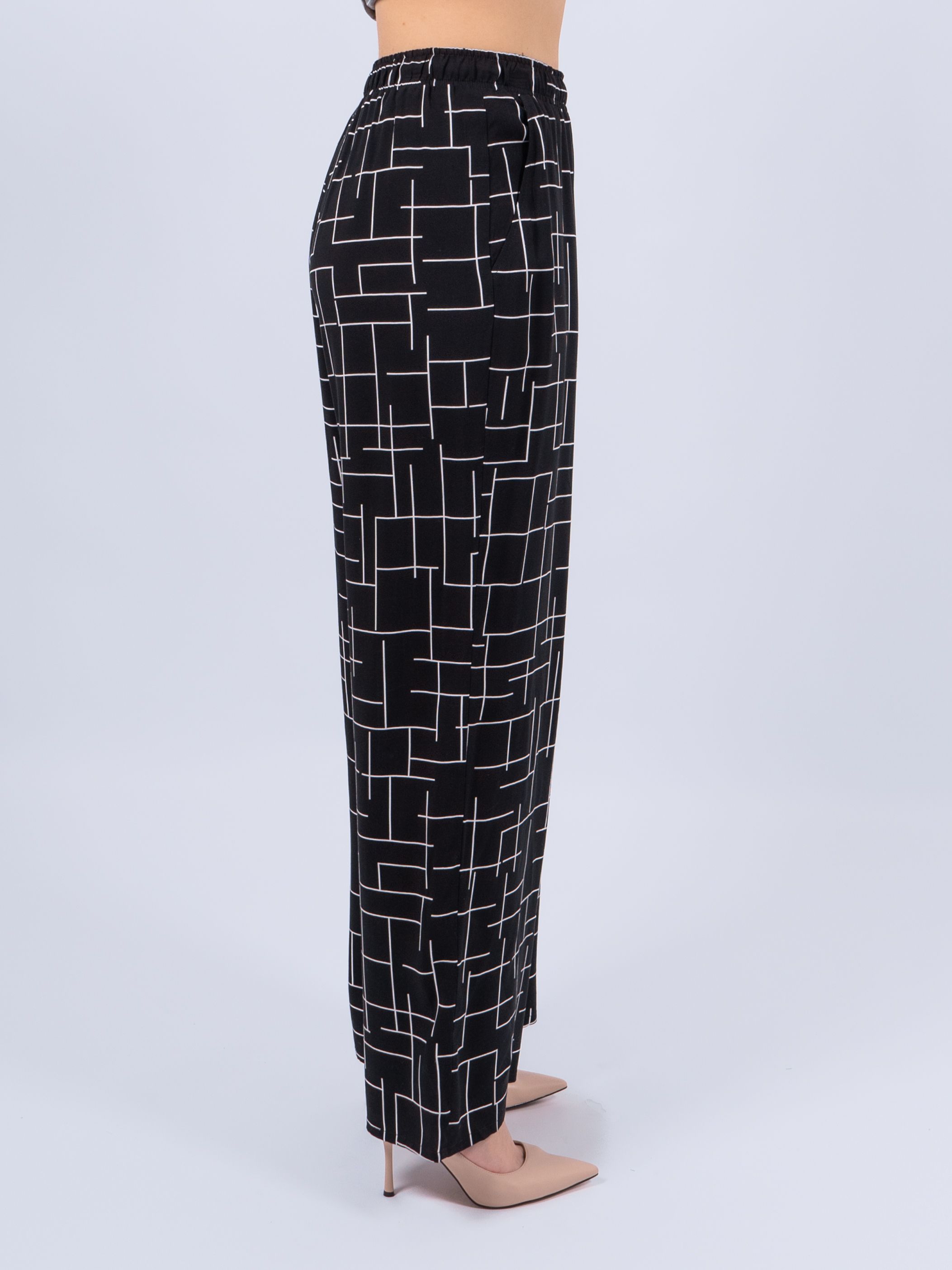 Покупая эти черные брюки с геометрическим рисунком, вы получаете стильный и функциональный элемент гардероба, который с легкостью впишется в любой образ и подчеркнет вашу неповторимость.