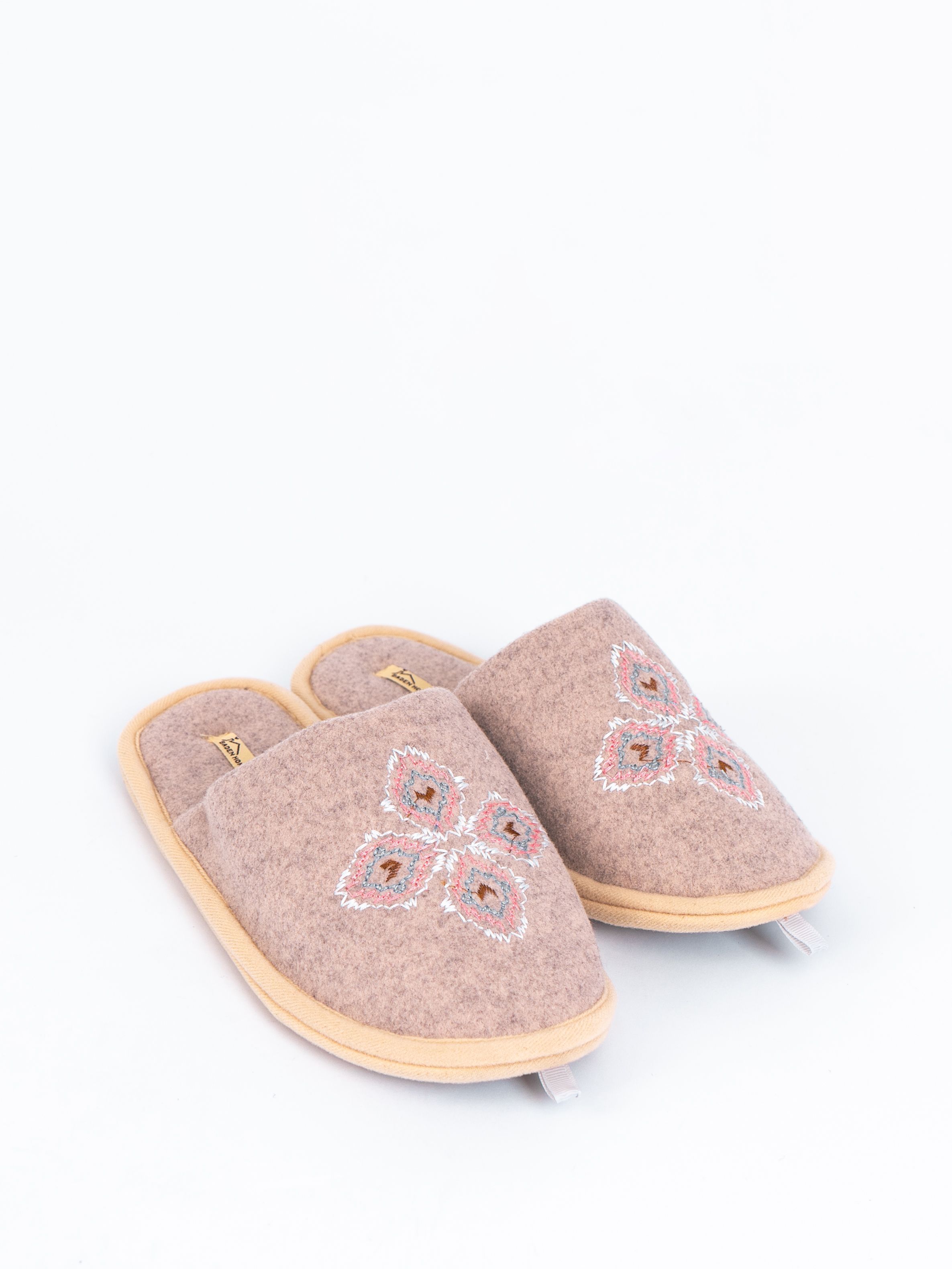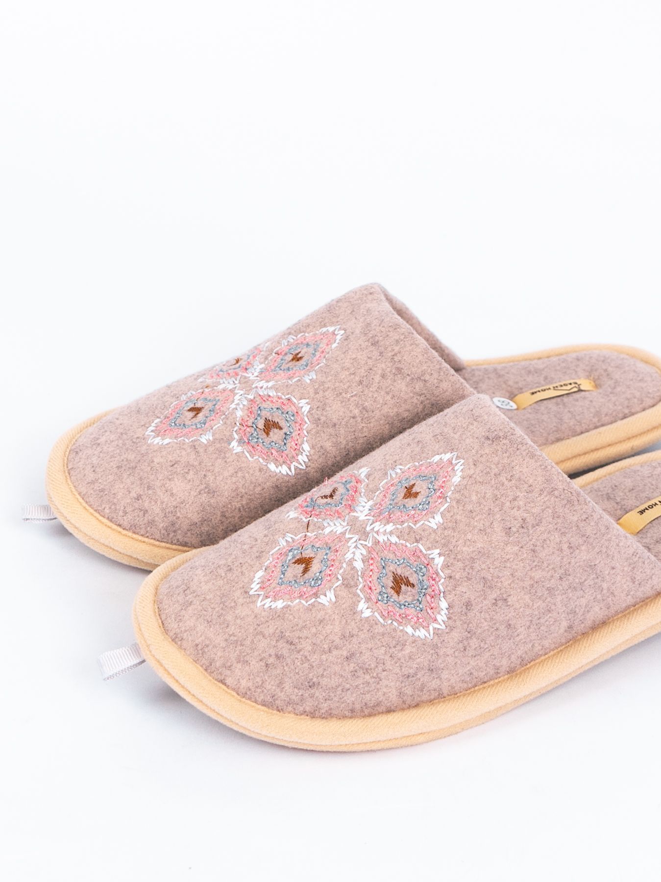 Модель домашних тапочек из текстильных материалов с вышивкой гарантирует комфорт при длительной носке и позволяет стопе «дышать».