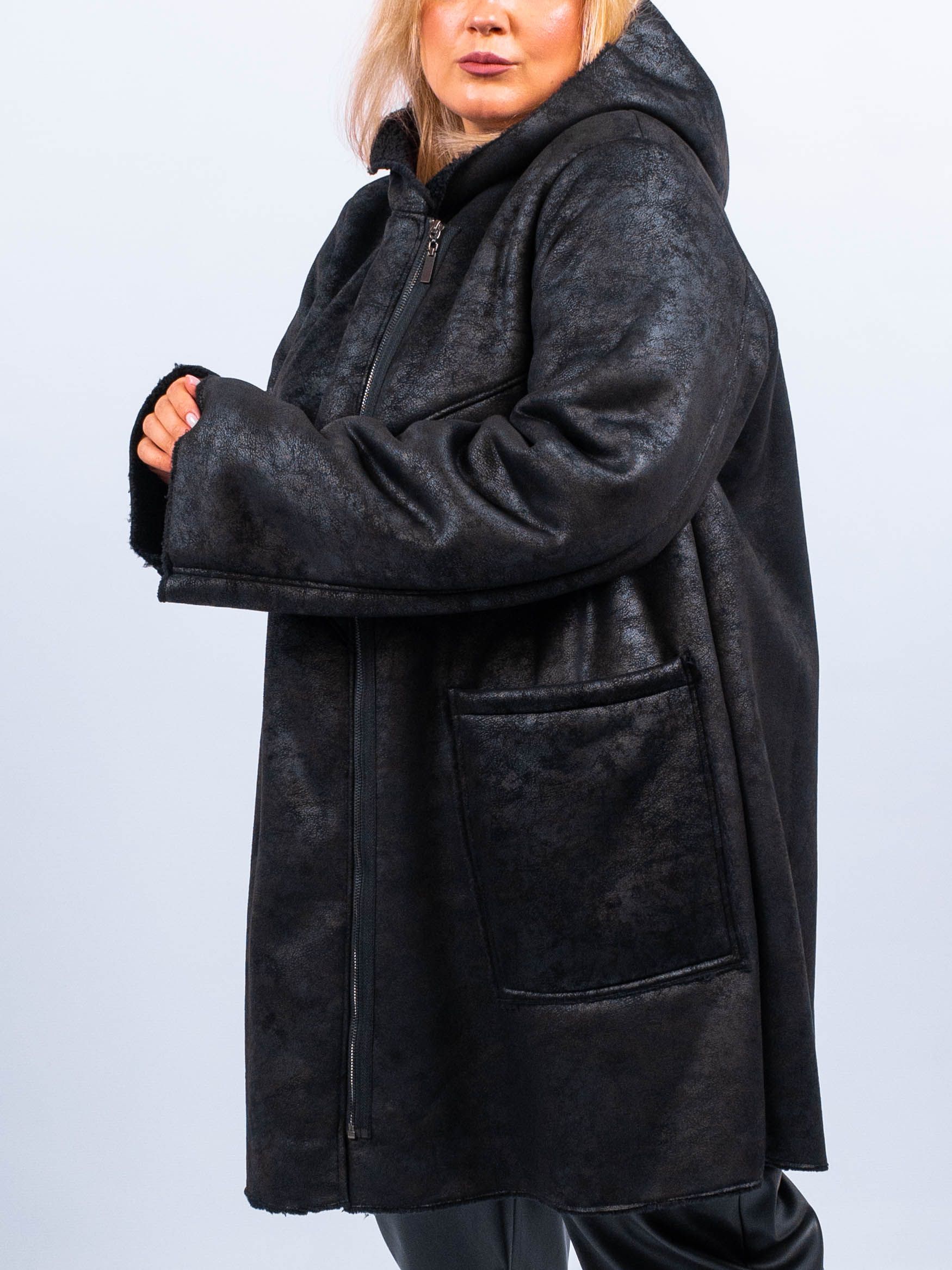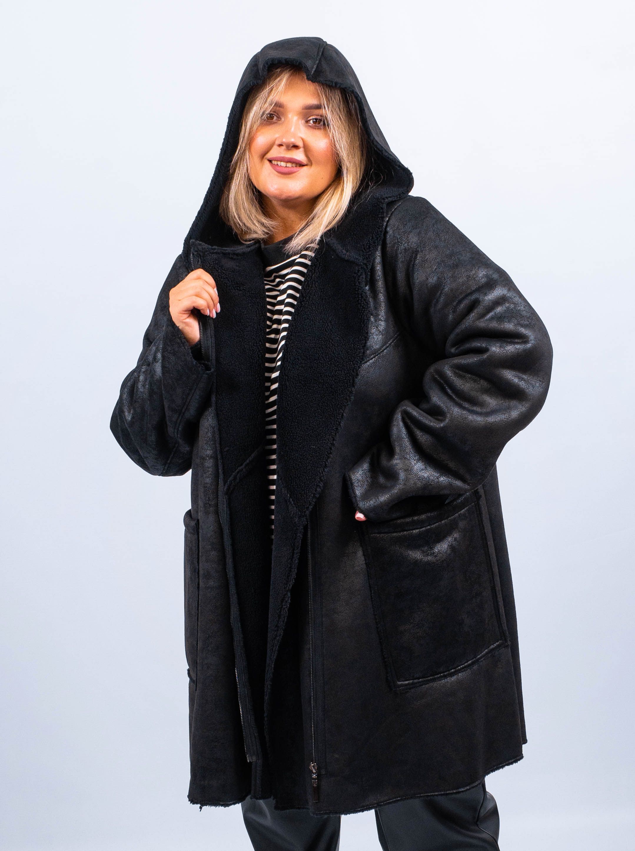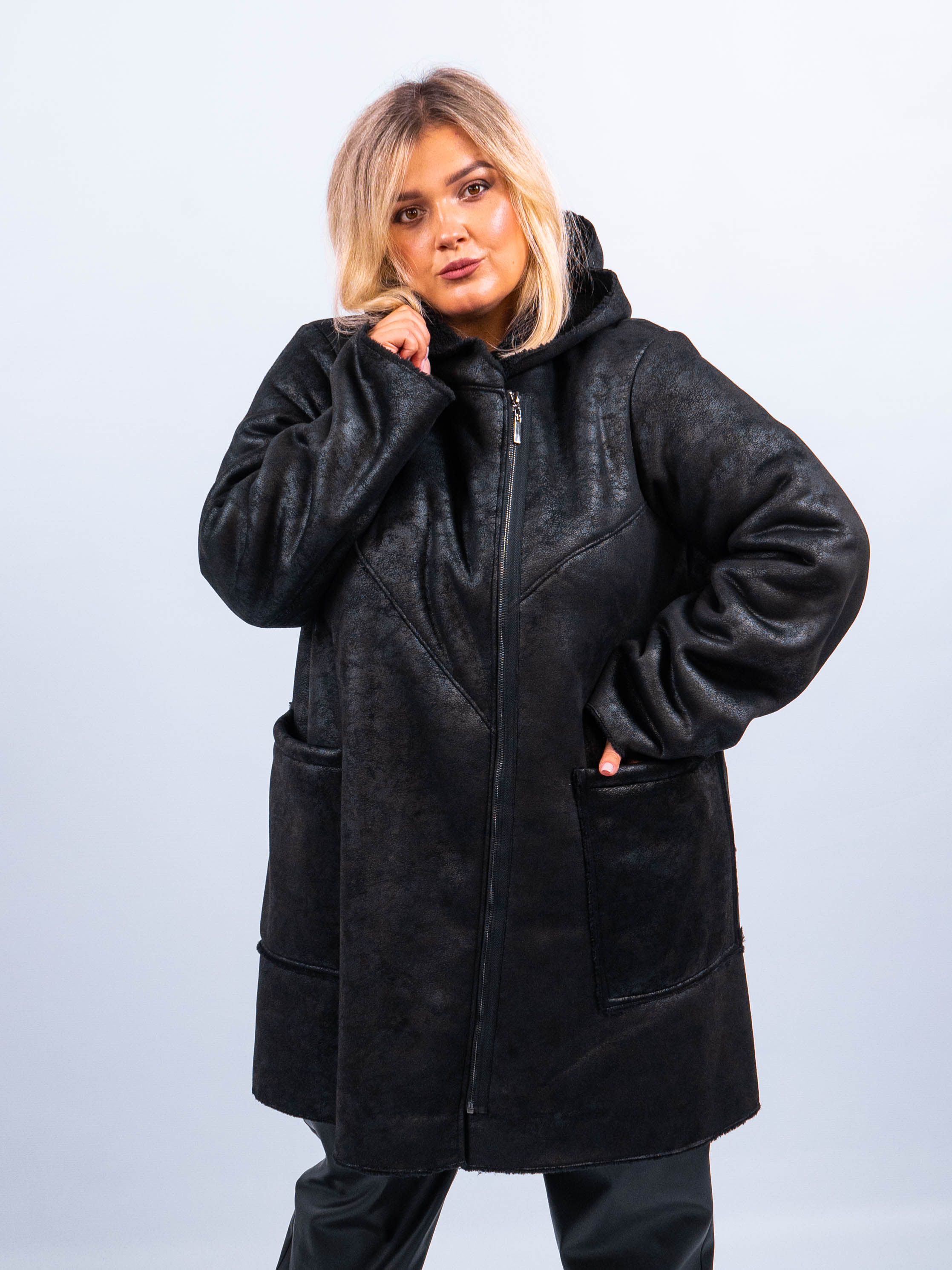 Представляем вам удобную и стильную черную дубленку из полиэстера - идеальный выбор для холодных осенних дней. Эта дубленка имеет среднюю длину, два удобных кармана для хранения мелочей и прочный капюшон, который защитит вас от ветра и снега. Застегивается на молнии, что делает ее легкой в использовании.