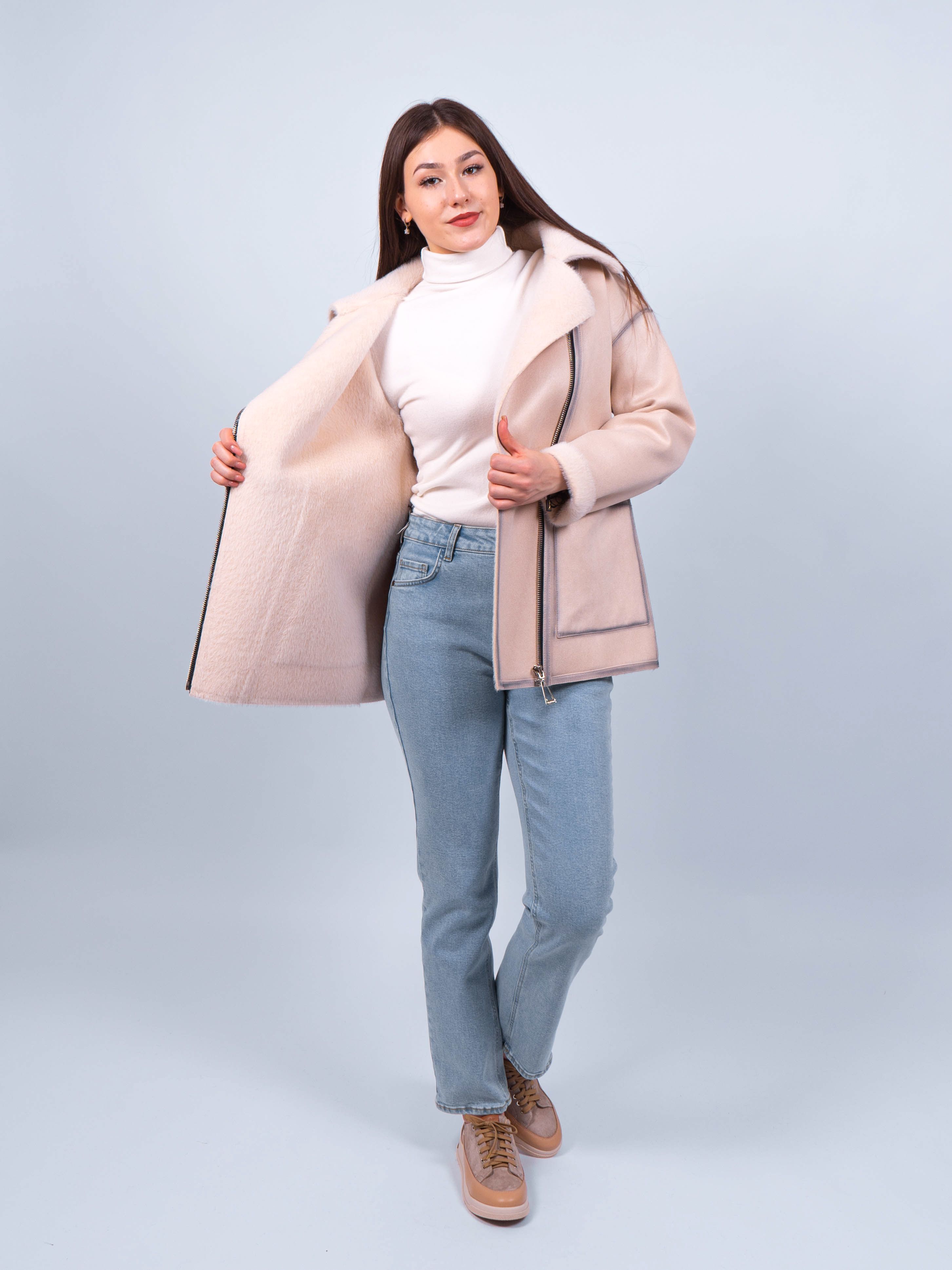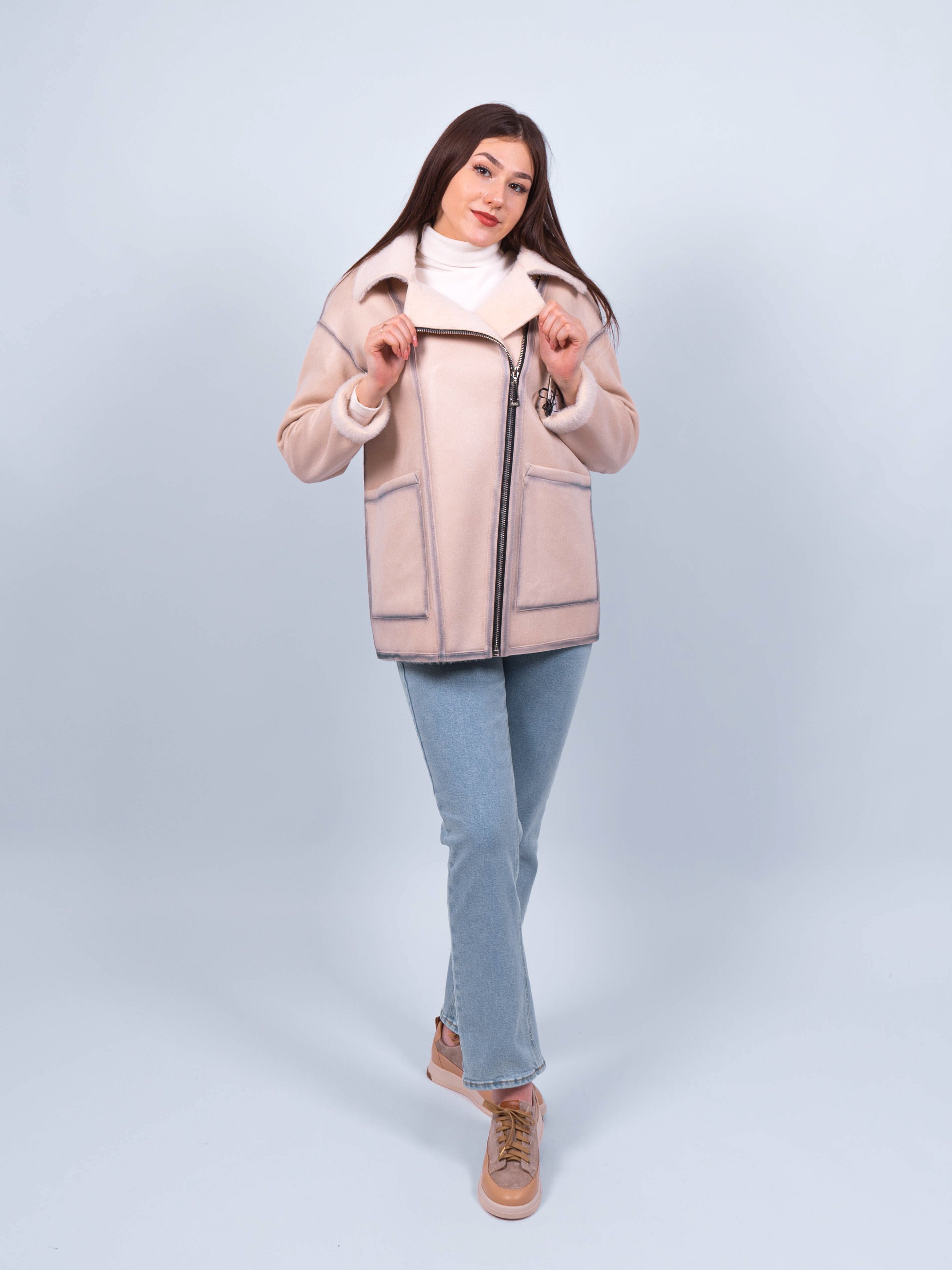 Эта облегченная дубленка сочетает в себе стильный дизайн, комфорт и функциональность, делая ее идеальным выбором для весны или осени. Неотъемлемая часть вашего гардероба, она поможет вам выглядеть стильно и чувствовать себя комфортно в любых погодных условиях.