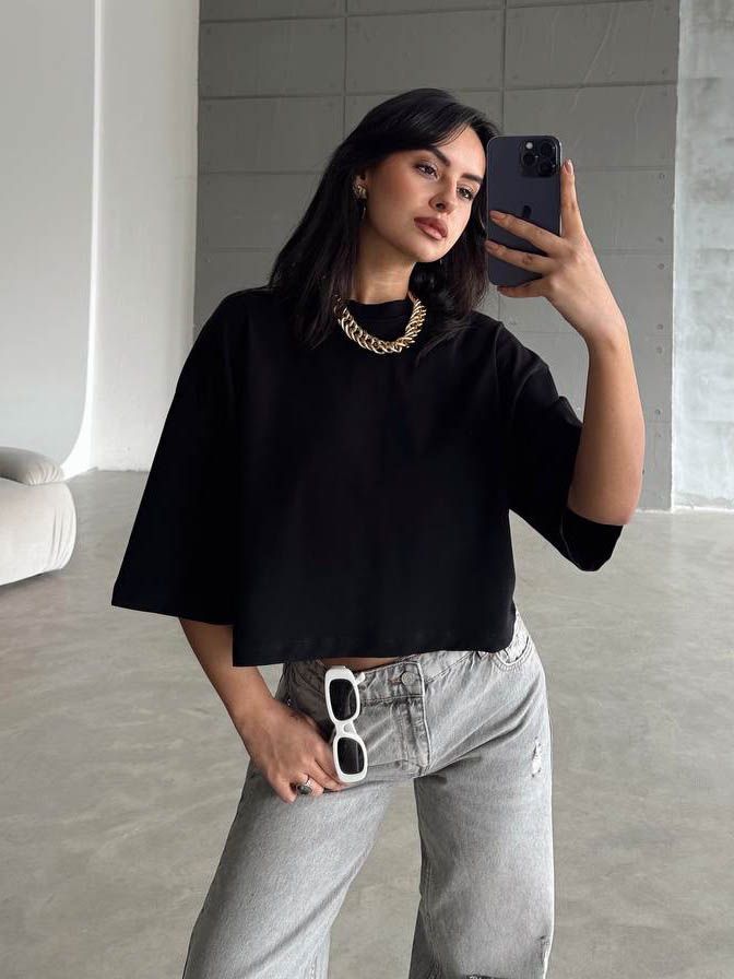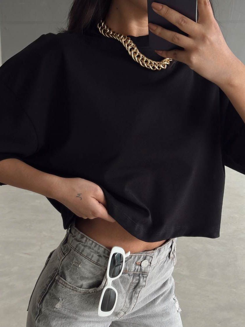 Футболка женская укороченная оверсайз - основа для любого гардероба. Приятный к телу материал 100% хлопок, очень удобный, можно носить как повседневный вариант, в офис, в школу, в колледж, в институт, на учебу, так и составить модный лук на выход, на праздник. Футболка женская с коротким рукавом прямого кроя визуально стройнит комфортная длина не стесняет движения подходит для любого роста и фигуры. Можно носить в заправленном варианте, так и свободном. Хлопковый материал обеспечивает отличный воздухообмен легкость не вызывает раздражения кожи очень мягкая и приятная на ощупь ткань. Свободная майка спортивная для женщин удлиненная, прикрывает бедра, прекрасно сочетается с брюками, юбкой, шортами. Удобно носить под пиджак, кардиган, толстовку, кофту. Модная футболка подходит для любого времени года, будет комфортно летом в жару и прохладным вечером. Либо как весенний, осенний или зимний вариант, если носить, как внутренний слой. Майка женская выполнена из качественного материала, поэтому в ней комфортно, не жарко, тело дышит. Прямой крой оверсайз, короткий рукав со спущенной линией плеча, овальный вырез горловины. Базовая футболка подойдет на все случаи жизни и для совершенно разных стилей - делового с пиджаком, спортивного с шортами, кежуал с брюками или джинсами. Аккуратные швы, абсолютно не имеет запаха, держит форму, не скатывается и не требует сложного ухода. Актуальная футболка базовая на лето, весну, на каждый день. Идеально подходит для занятий спортом, в спортзале или на свежем воздухе, прогулок, на работу. Благодаря универсальному размеру хорошо смотрится на полных и на стройных, подходит для беременных. Модель oversize прекрасна для высоких и невысоких. Станет отличным подарком на день рождения, как новогодний сюрприз, любимой женщине, дочке, сестре, маме. Подойдёт для дня рождения, для дружественной вечеринки. Вы будете выглядеть великолепно и не останетесь незамеченной! В нашем магазине вы также сможете найти качественные топы, пиджаки, брюки домашние женские, брюки классические женские, кардиганы, свитшоты, рубашки, платья праздничные, свитера, джемперы, полуверы и другую одежду, а также обувь отечественных и зарубежных производителей.